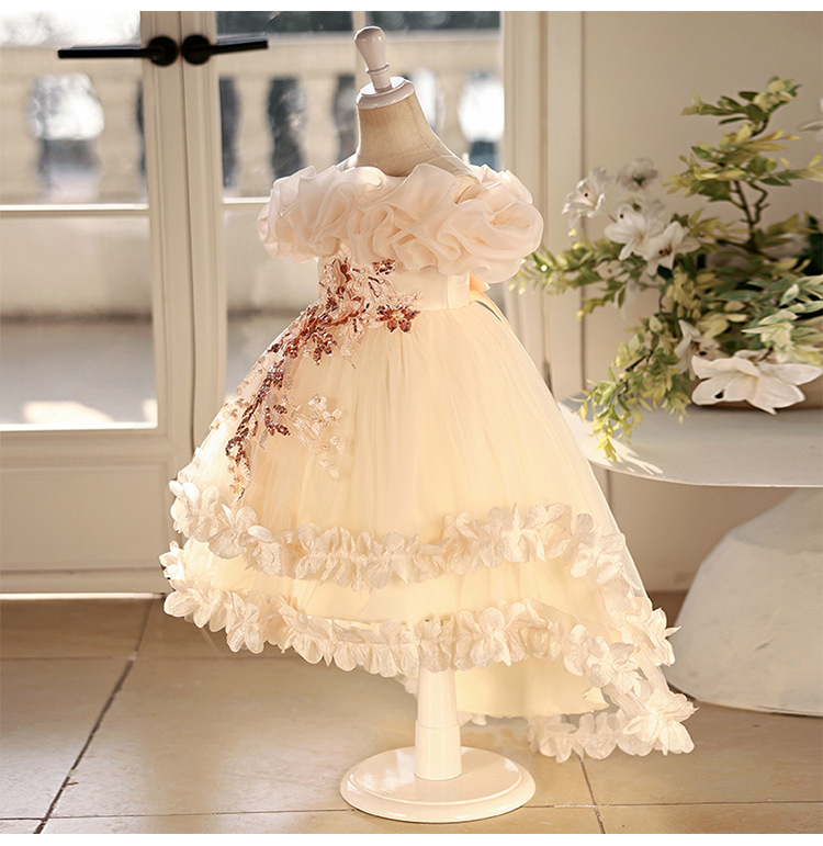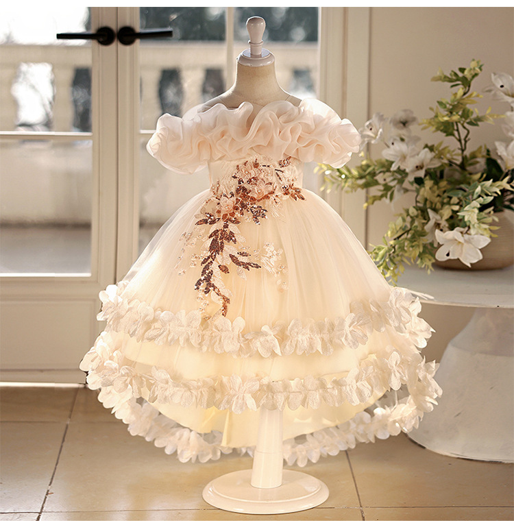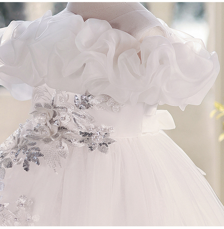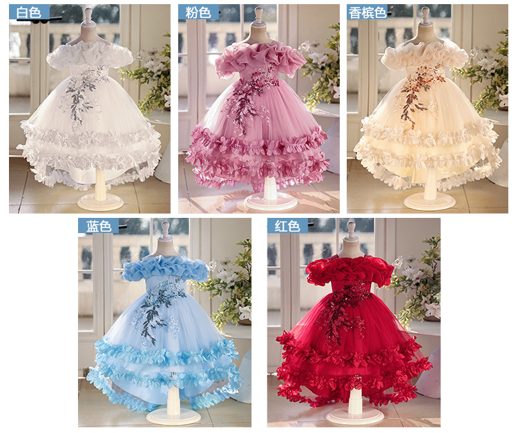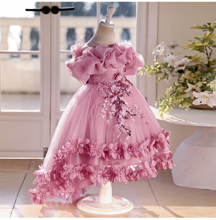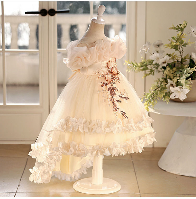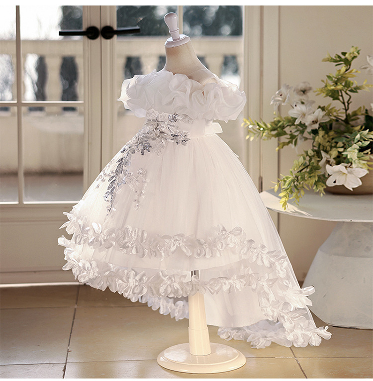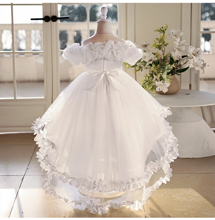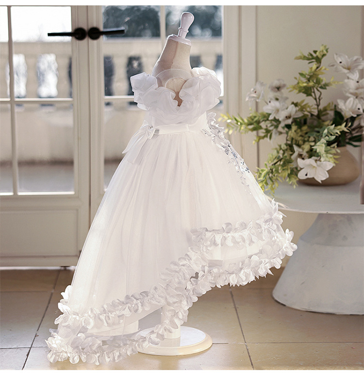 Vestido de niñas vestido de princesa de cola floral vestido de novia niños anfitriones de piano vestido de boda de verano