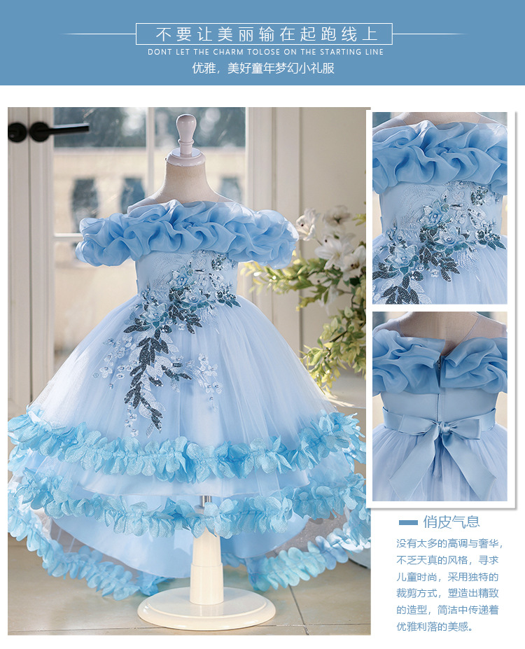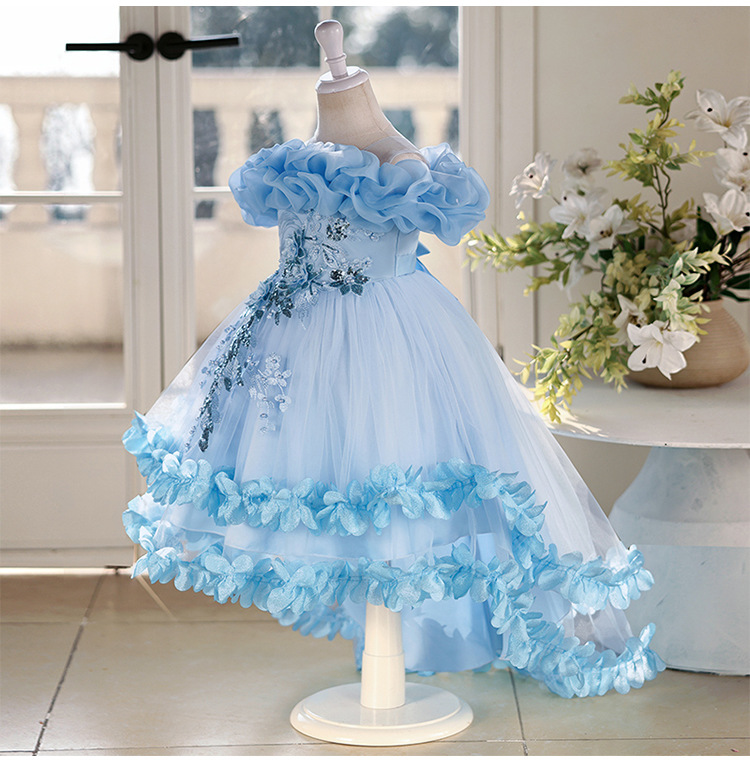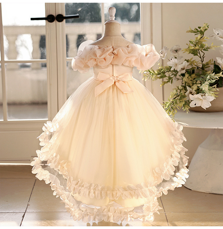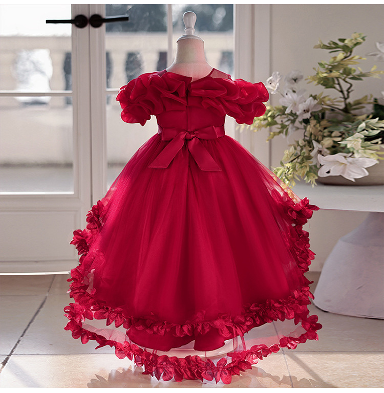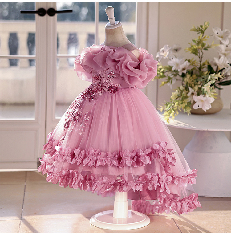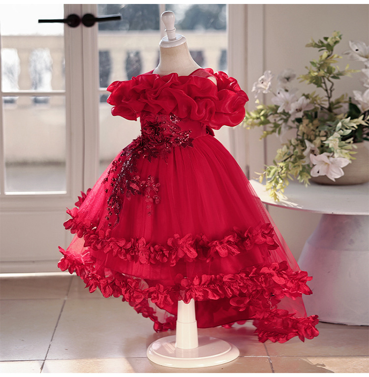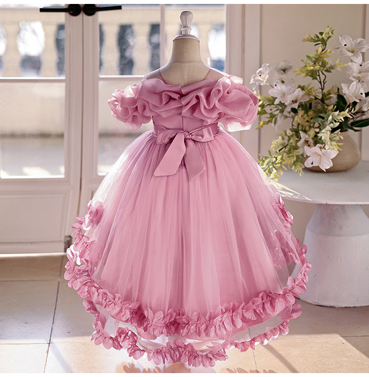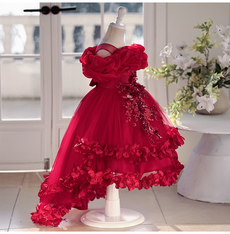 Vestido de niñas vestido de princesa de cola floral vestido de novia niños anfitriones de piano vestido de boda de verano