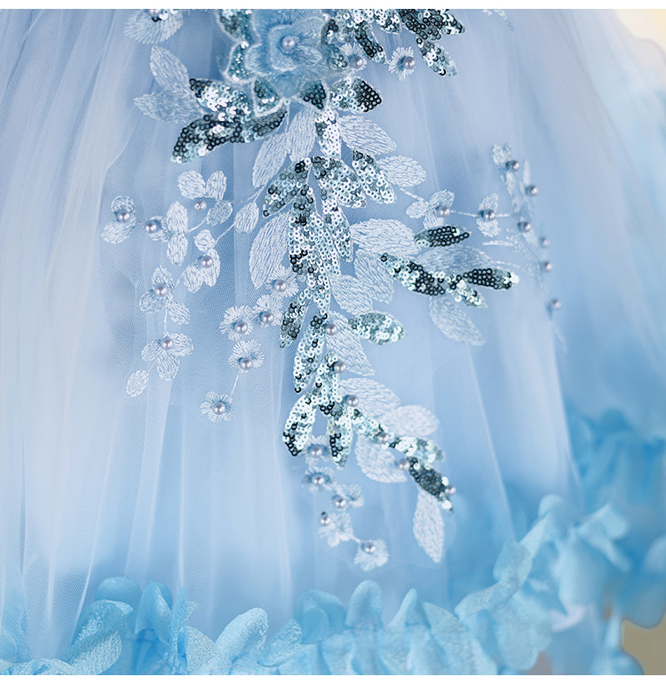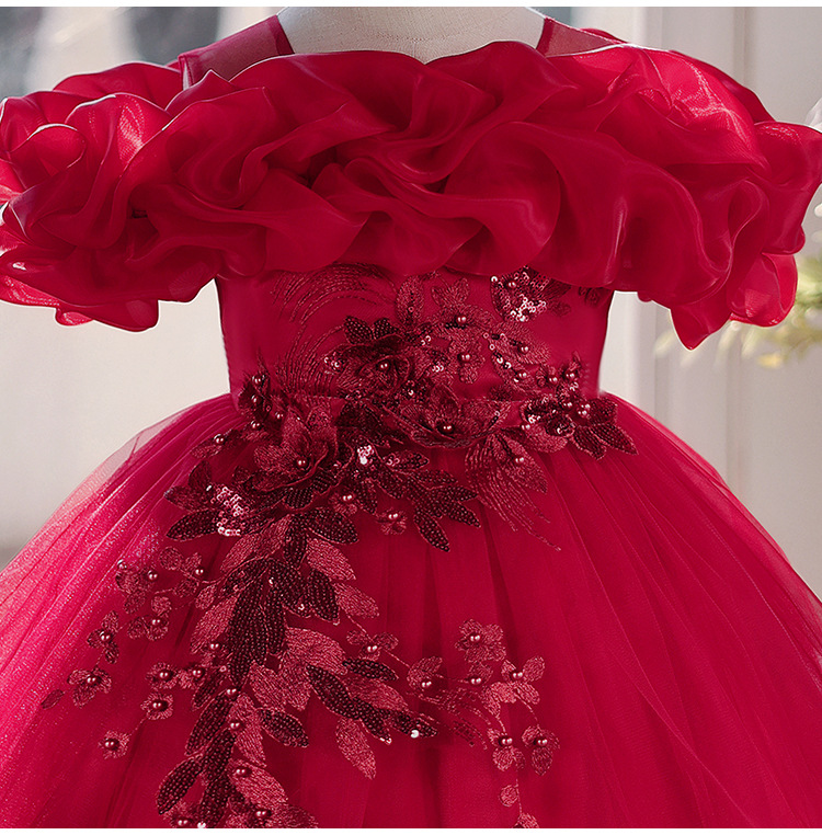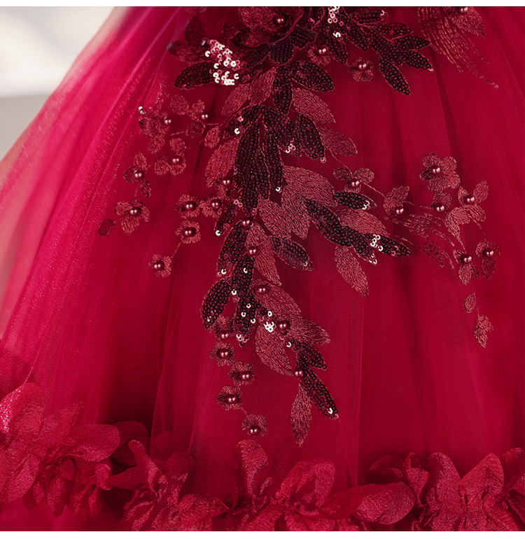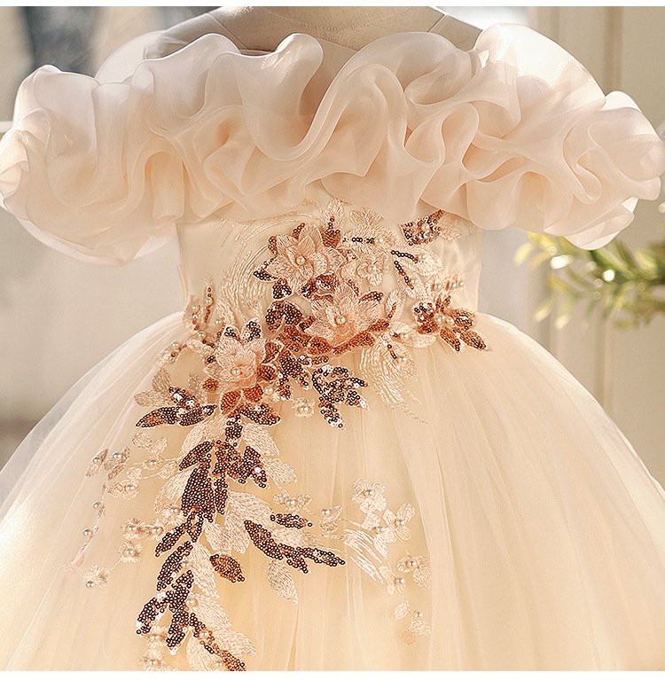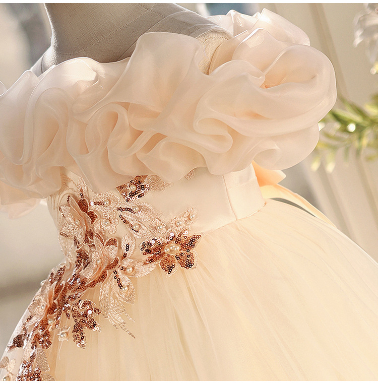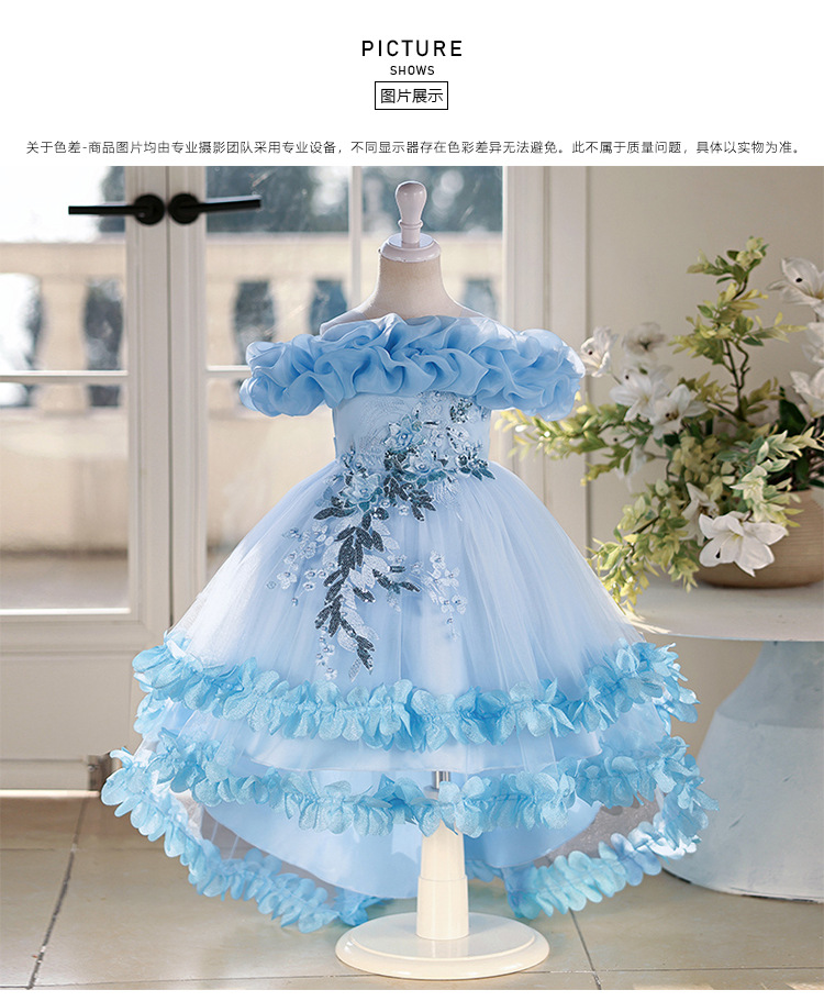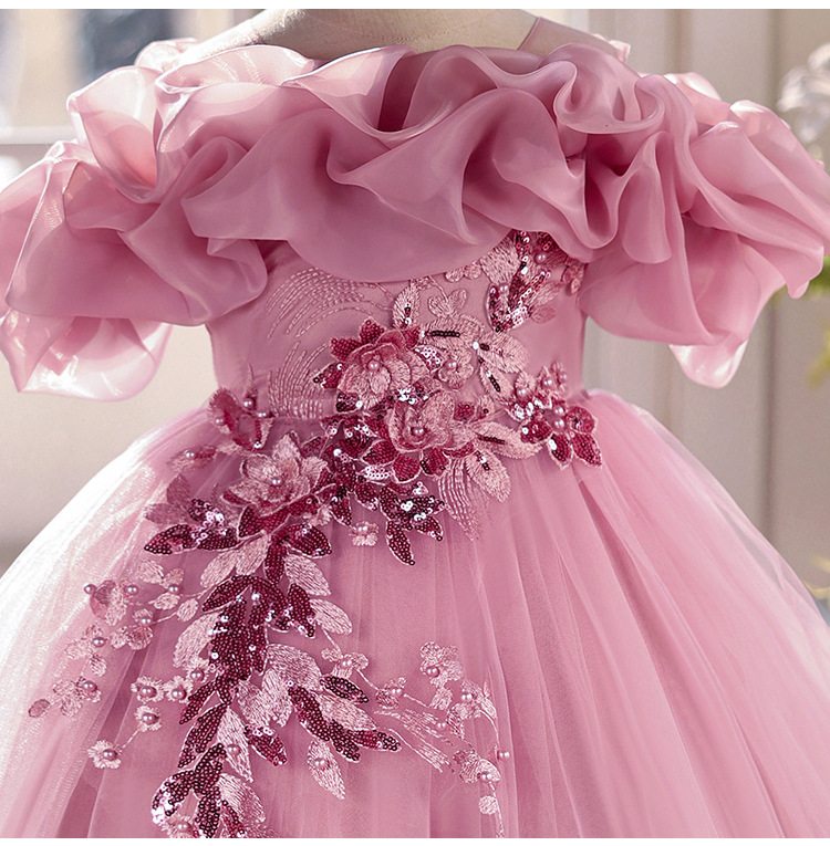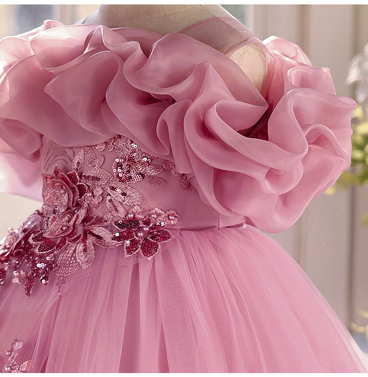 Vestido de niñas vestido de princesa de cola floral vestido de novia niños anfitriones de piano vestido de boda de verano