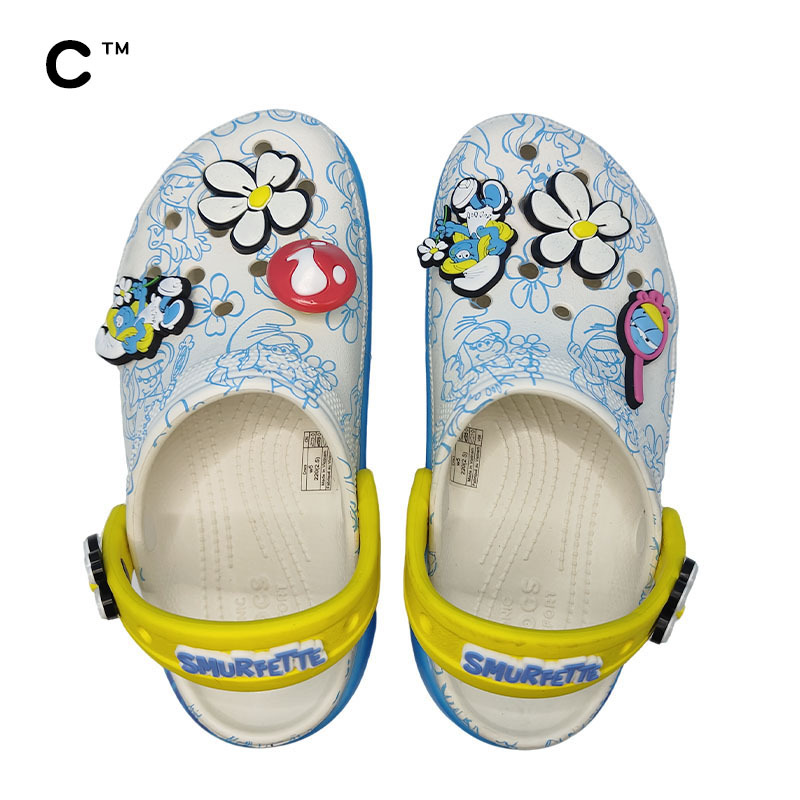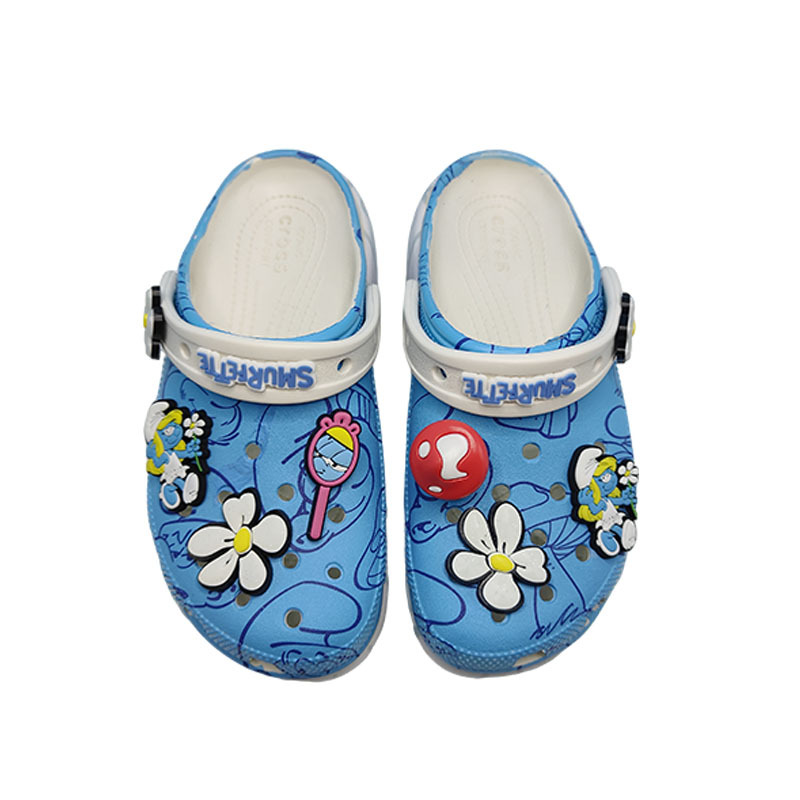Cross Smurf imprimido nubes agujero zapatos y colección de cooperación azul grueso para mujeres sandalias transpirables