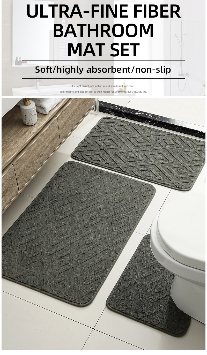 Alta alfombra de lana baja baño inodoro conjunto de tres piezas anti-deslizante hogar absorción de agua Jacquard bordado floc alfombra de baño