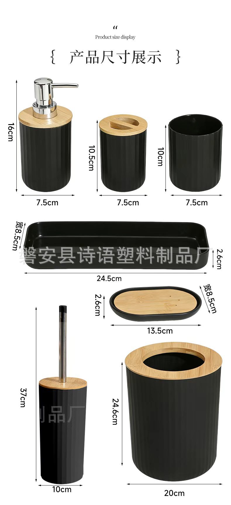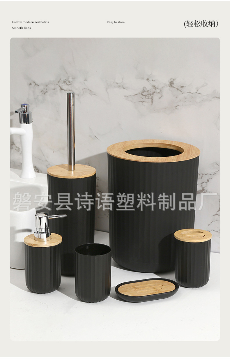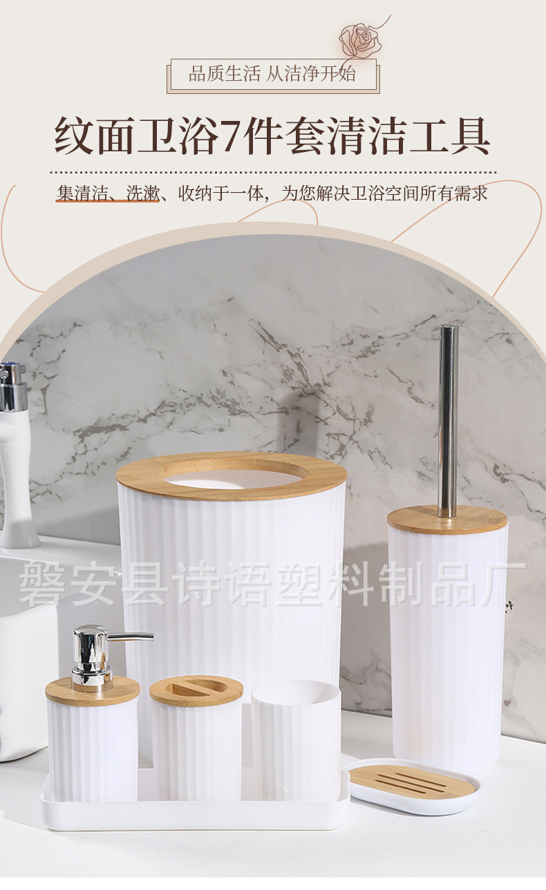 Baño doméstico con estriado 7 piezas para almacenar herramientas de limpieza artículos de higiene basura lavabo cepillo de inodoro taza hidráulica caja de jabón