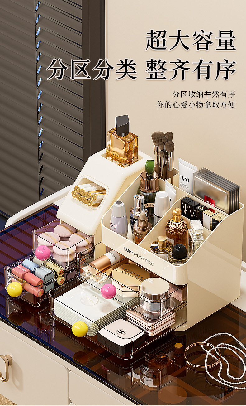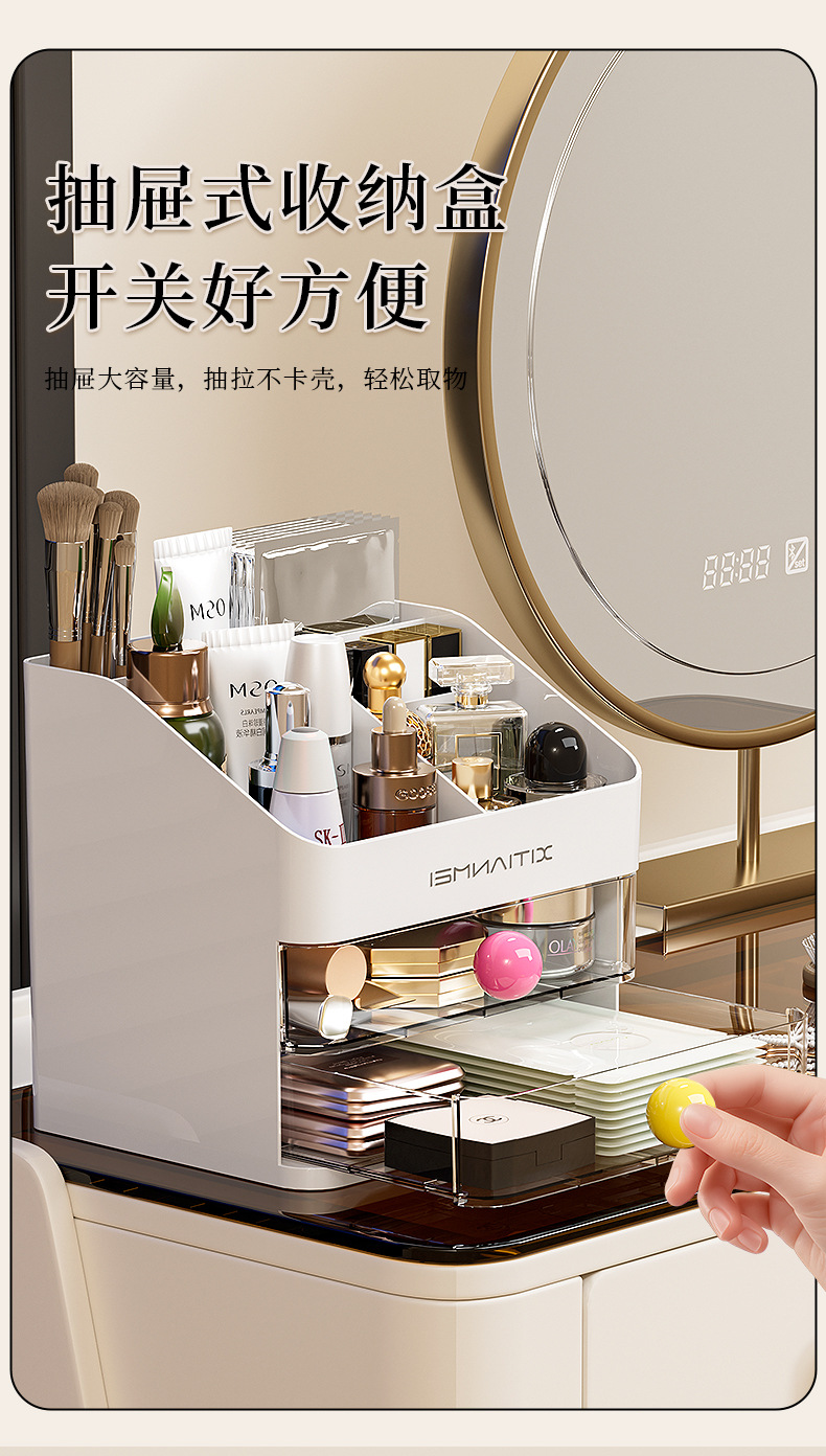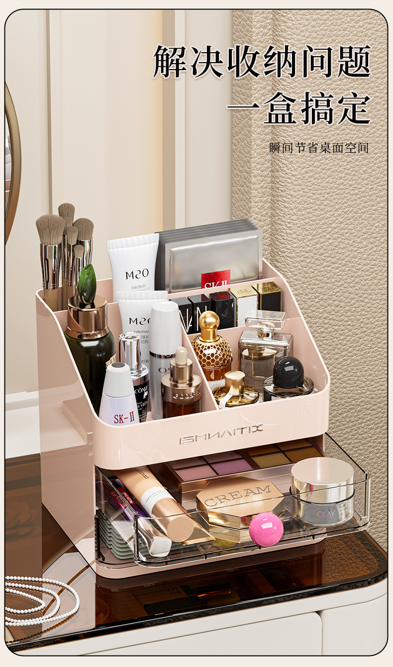 Caja de almacenamiento de cosméticos, escritorio, caja de almacenamiento de alta calidad, tocador de gran capacidad, productos para el cuidado de la piel, máscara de lápiz labial, estante de almacenamiento