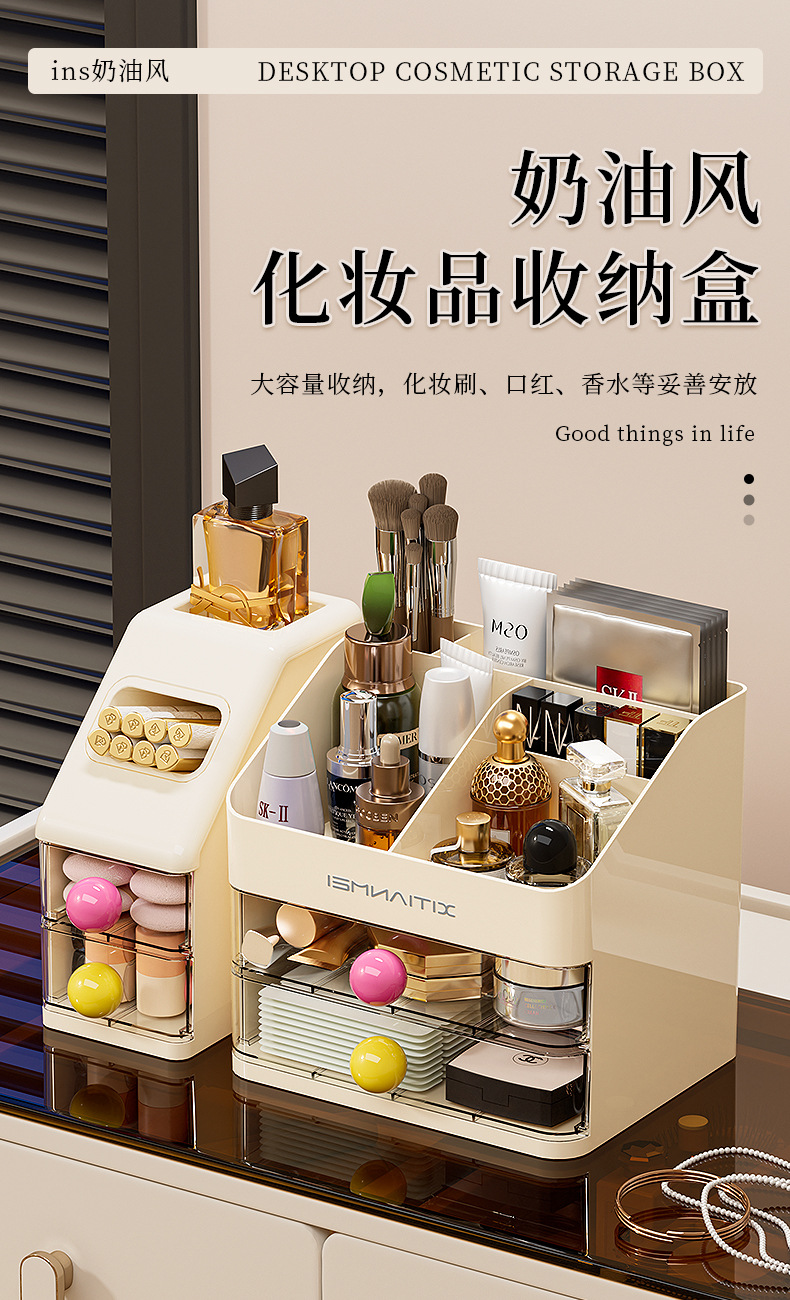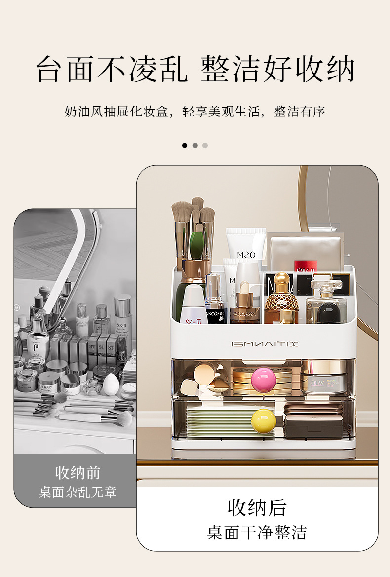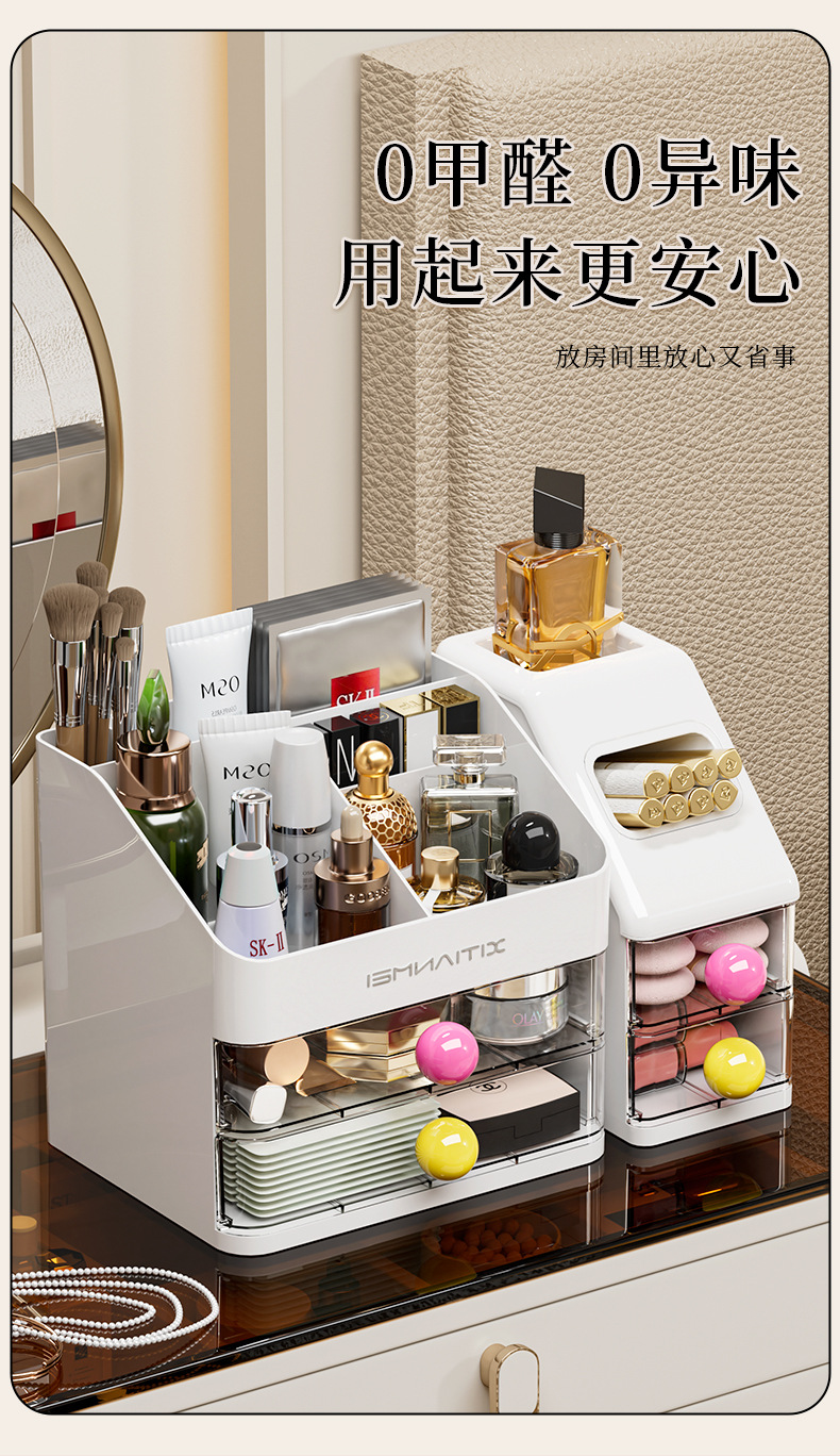 Caja de almacenamiento de cosméticos, escritorio, caja de almacenamiento de alta calidad, tocador de gran capacidad, productos para el cuidado de la piel, máscara de lápiz labial, estante de almacenamiento