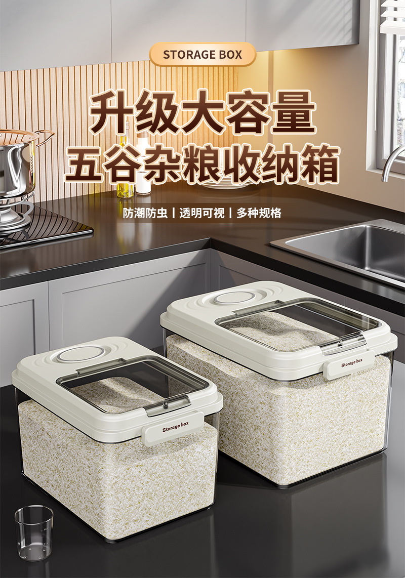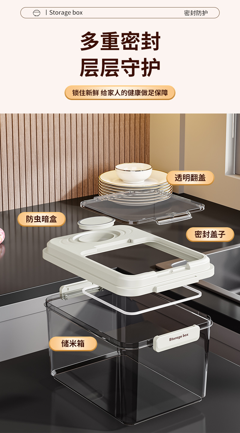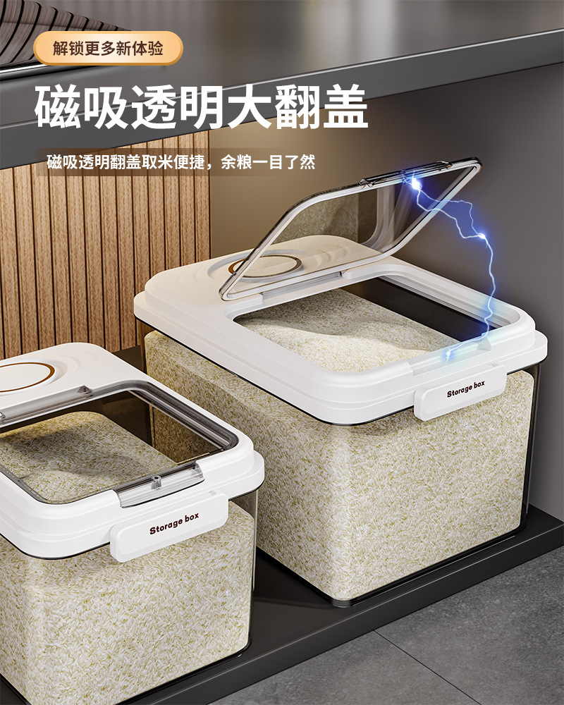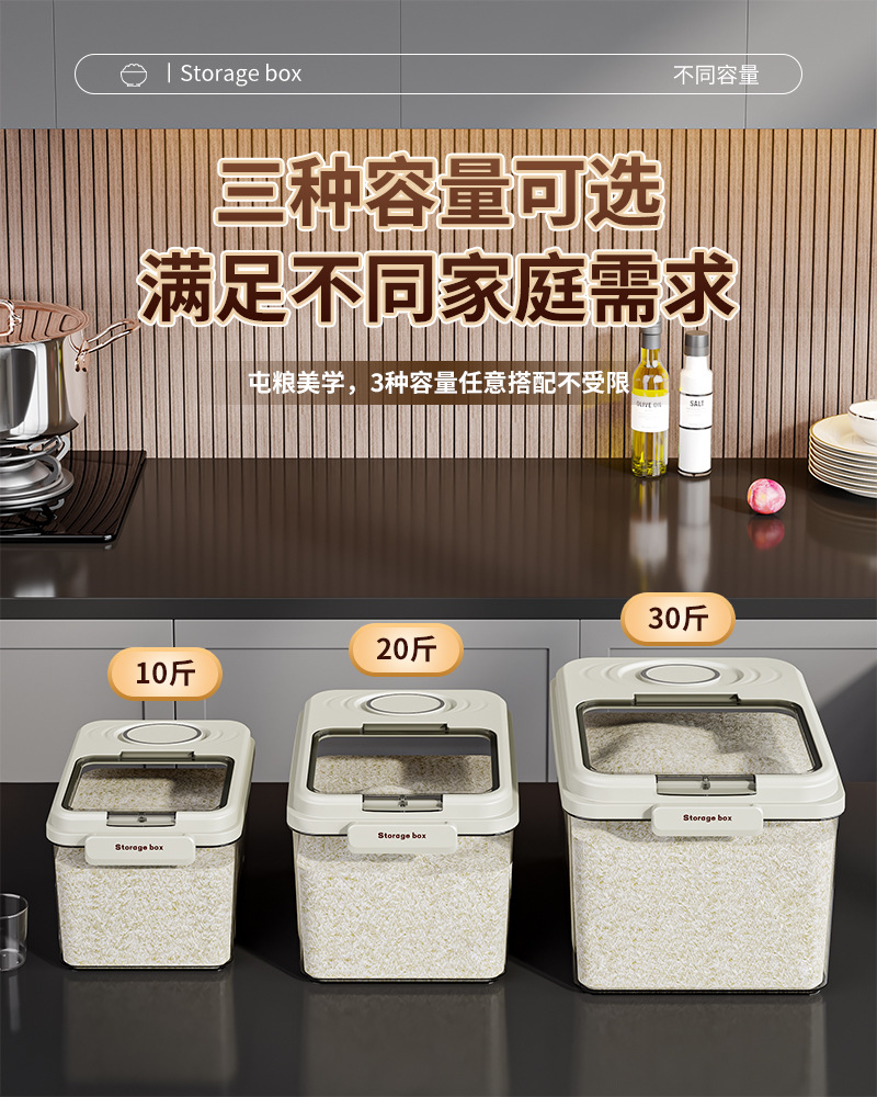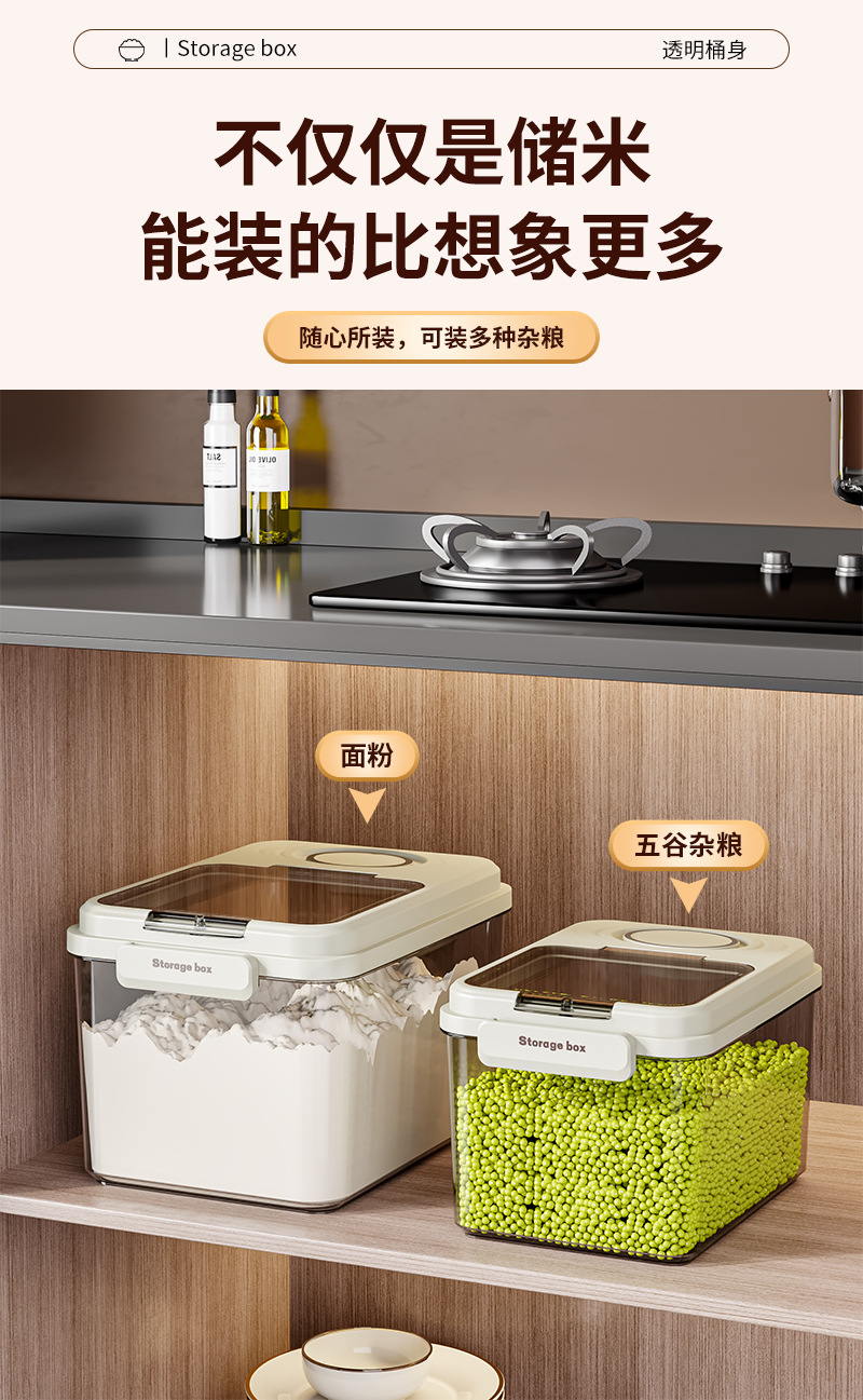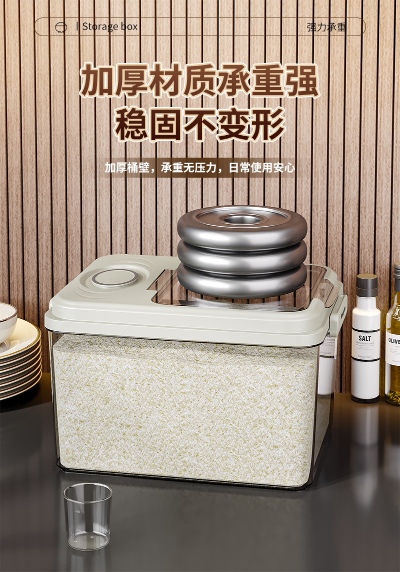 Barril de arroz doméstico a prueba de humedad sellado barril de arroz a prueba de insectos arroz caja de almacenamiento de harina de arroz contenedor de alimento para gatos tipo incrustado cuantitativo