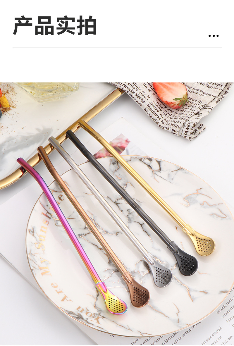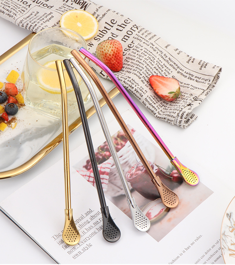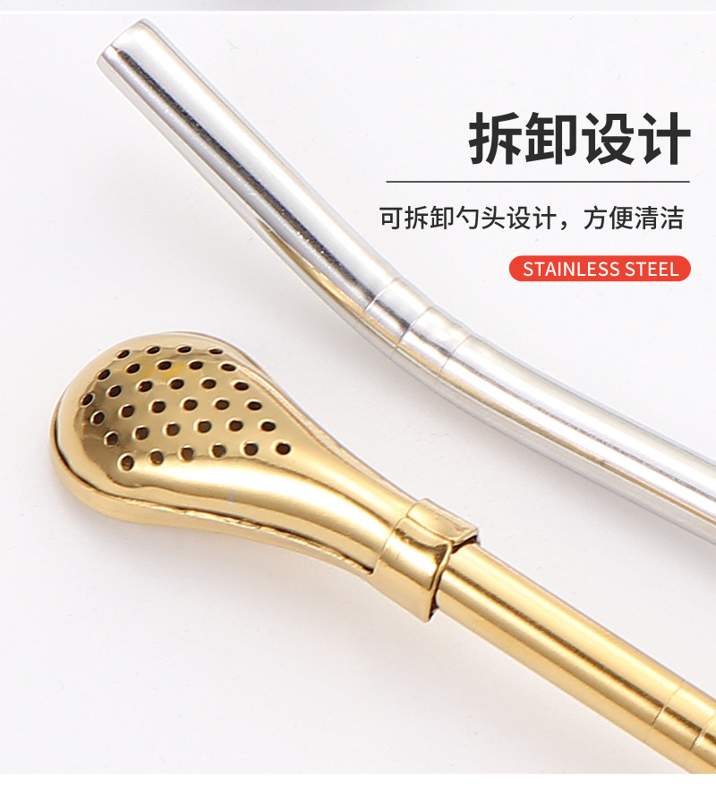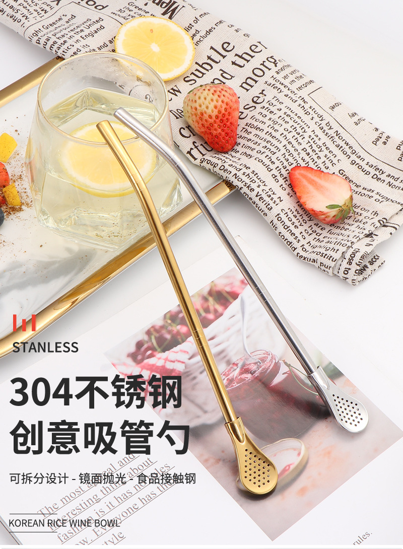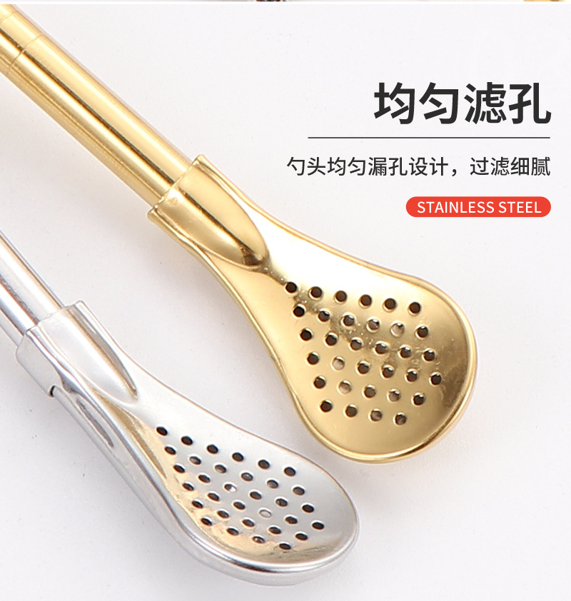 Cuchara de paja de acero inoxidable 304 transfronteriza, cuchara de paja desmontable, cuchara de paja todo en uno de doble uso, cuchara de paja con filtro para bebidas
