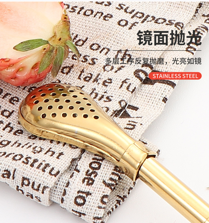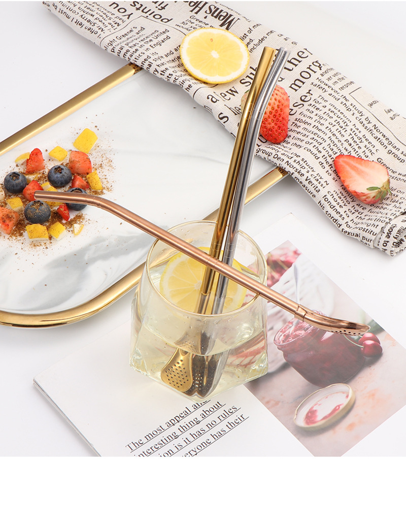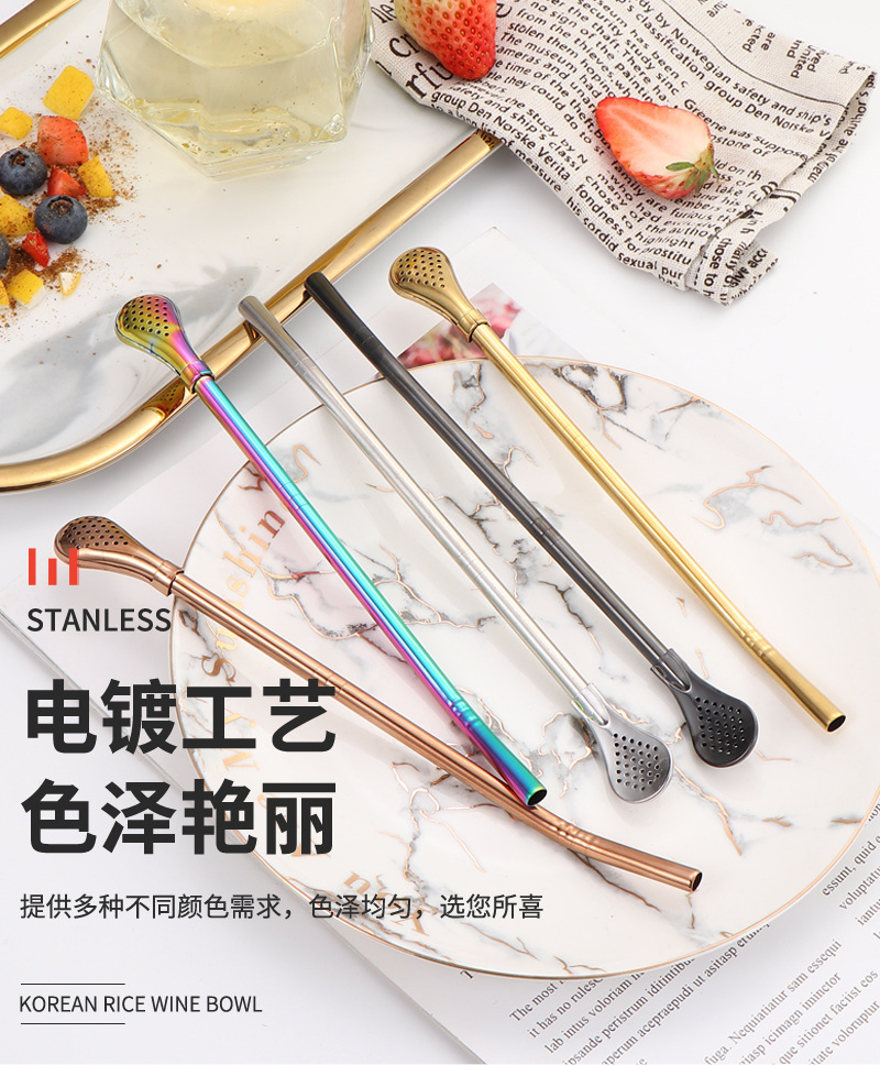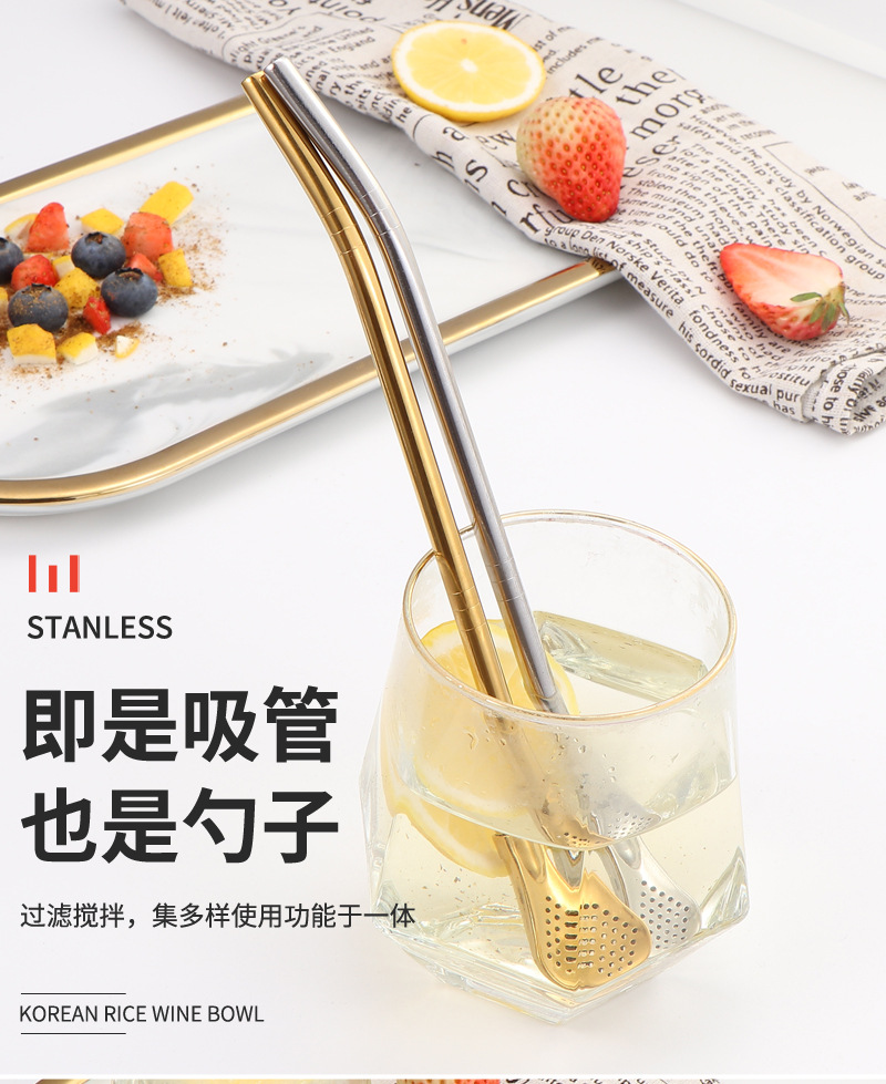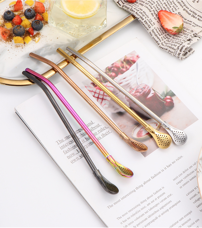 Cuchara de paja de acero inoxidable 304 transfronteriza, cuchara de paja desmontable, cuchara de paja todo en uno de doble uso, cuchara de paja con filtro para bebidas