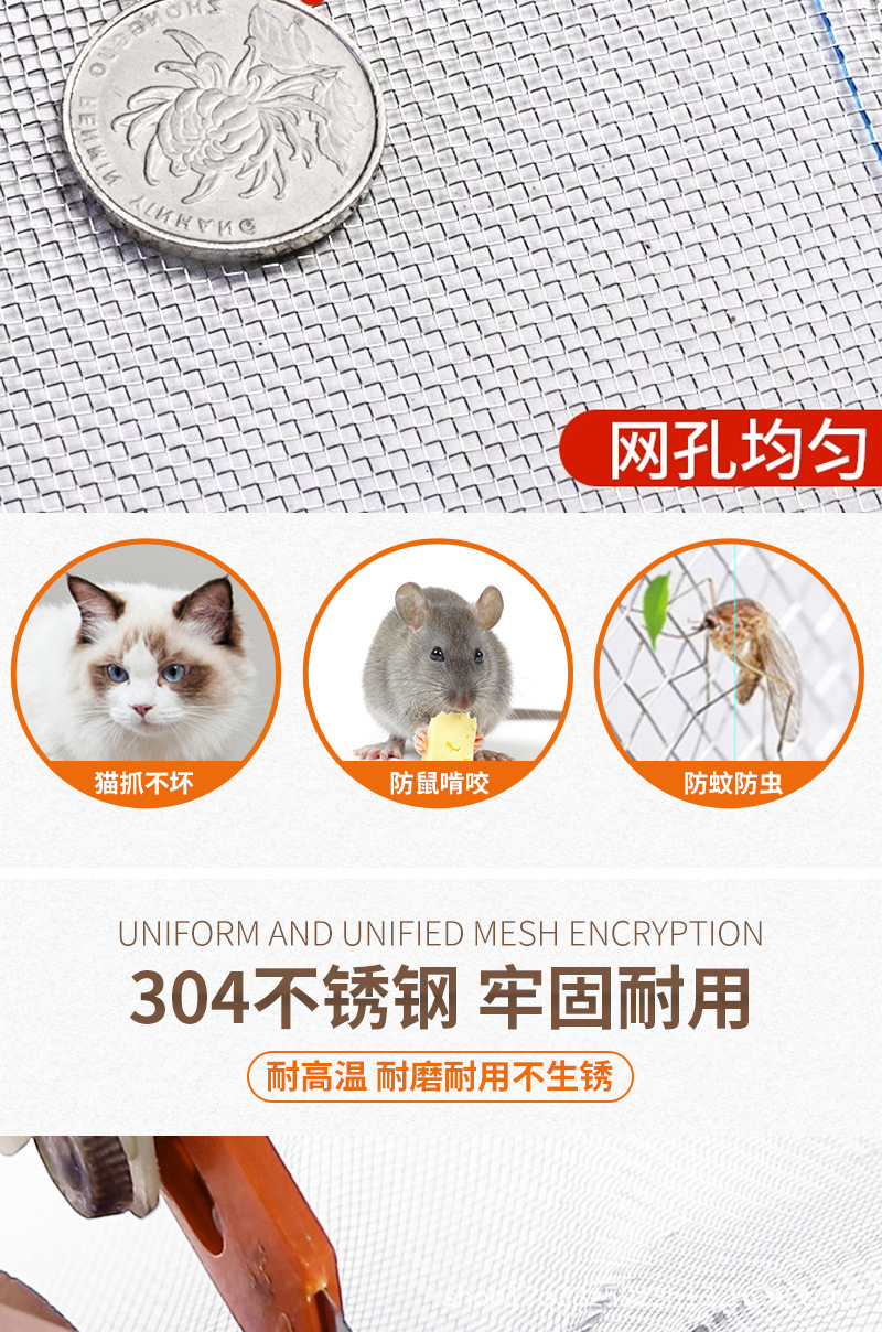 Malla de ventana de acero inoxidable Malla de ventana doméstica autoinstalada Malla de ventana de ventana corredera de mosquito de arena Malla de alambre invisible a prueba de ratón Malla de ventana de arena