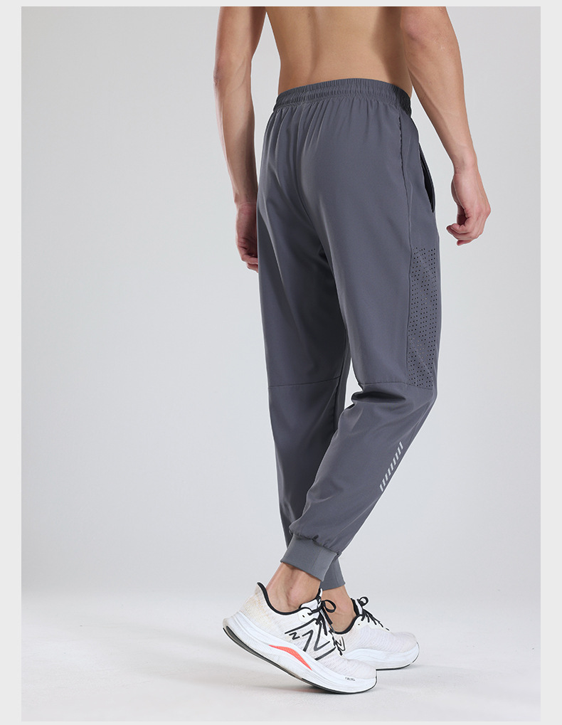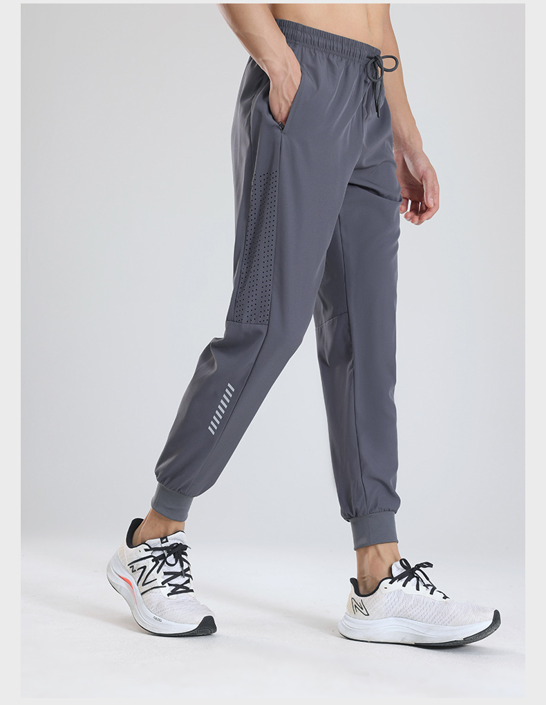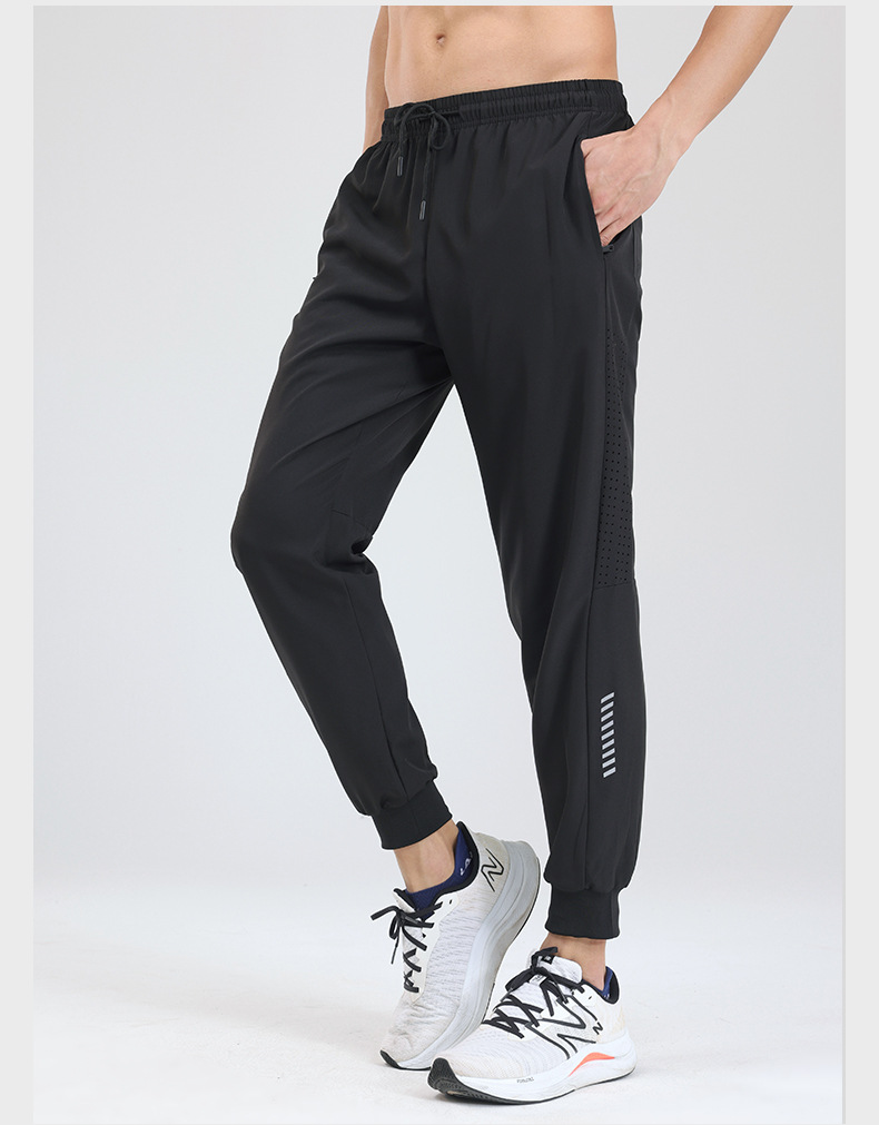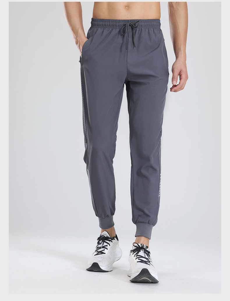 Pantalones deportivos de secado rápido Entrenamiento de fitness para hombres Seda de hielo verano Delgado transpirable tobillo-atado corriendo pantalones tejidos Casuales