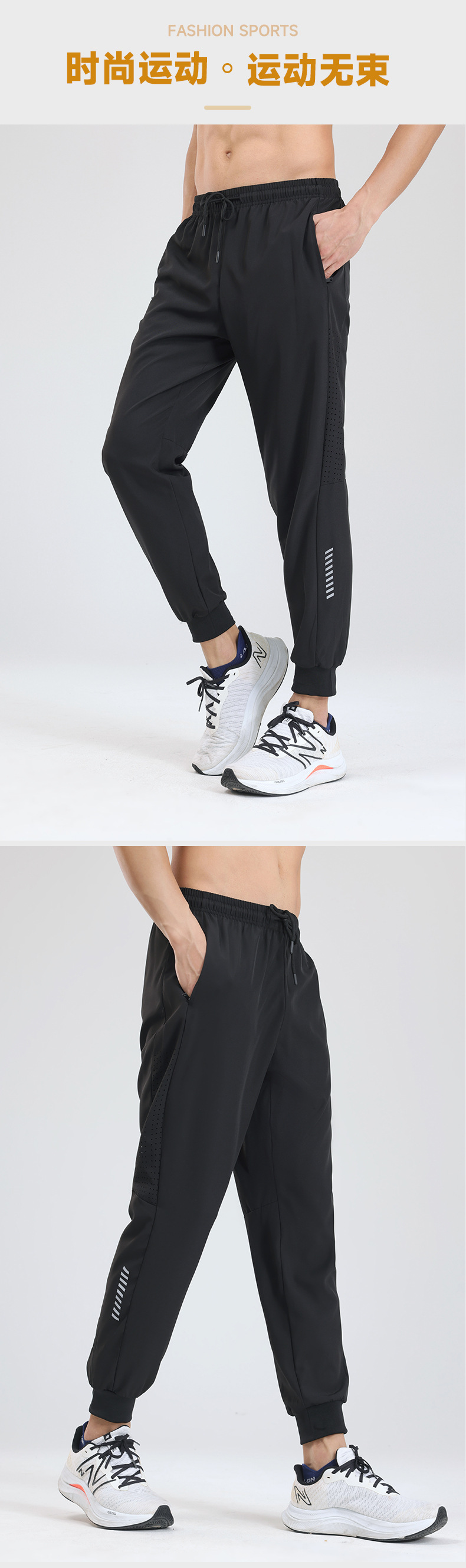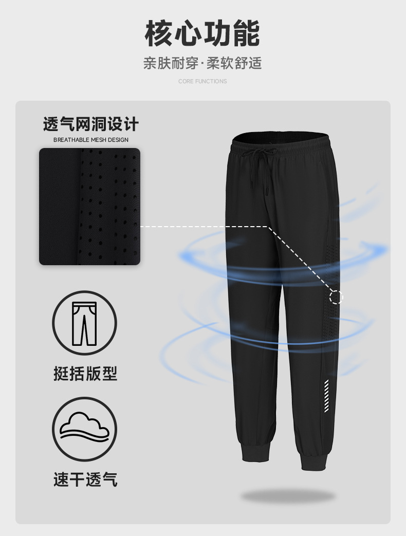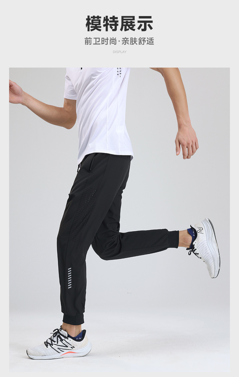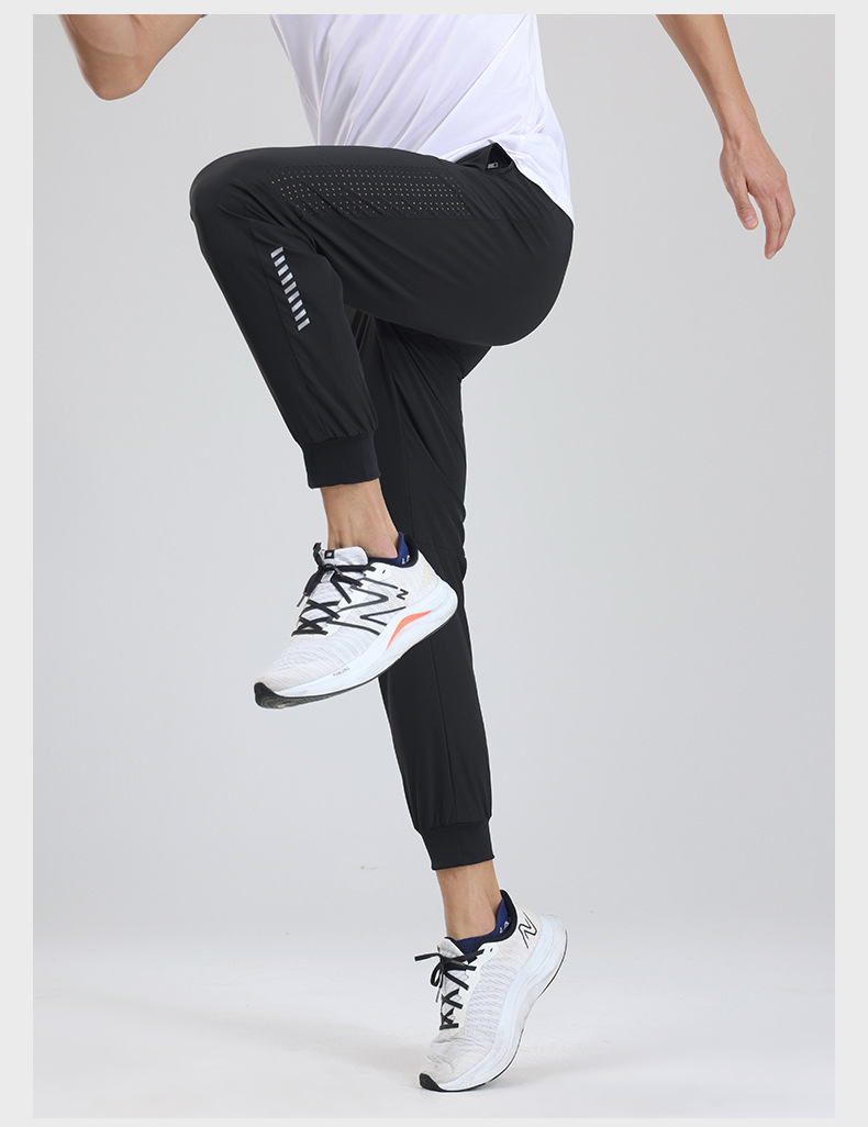 Pantalones deportivos de secado rápido Entrenamiento de fitness para hombres Seda de hielo verano Delgado transpirable tobillo-atado corriendo pantalones tejidos Casuales