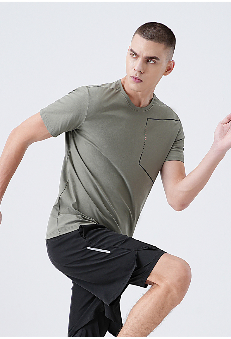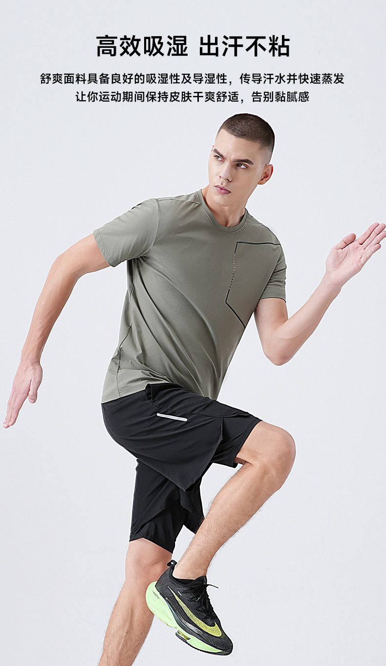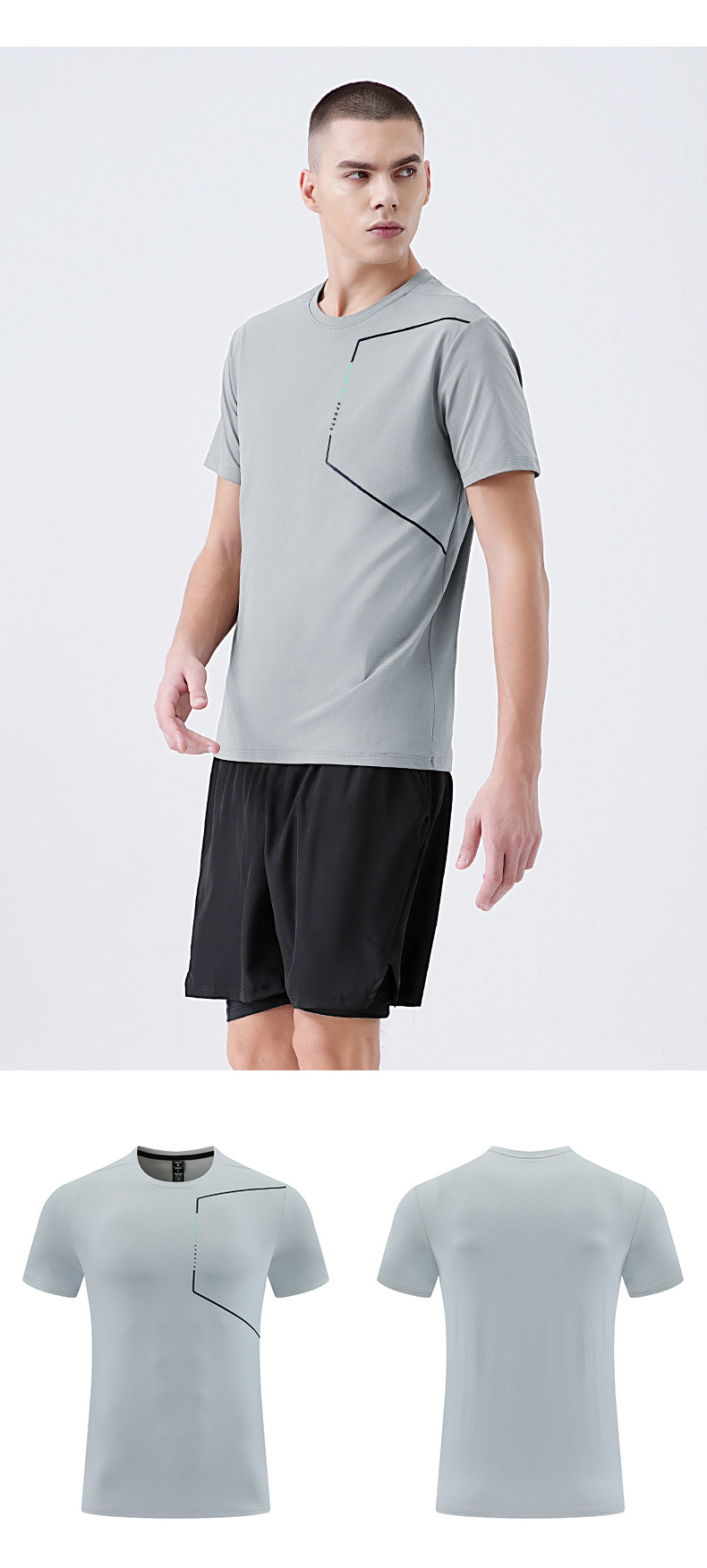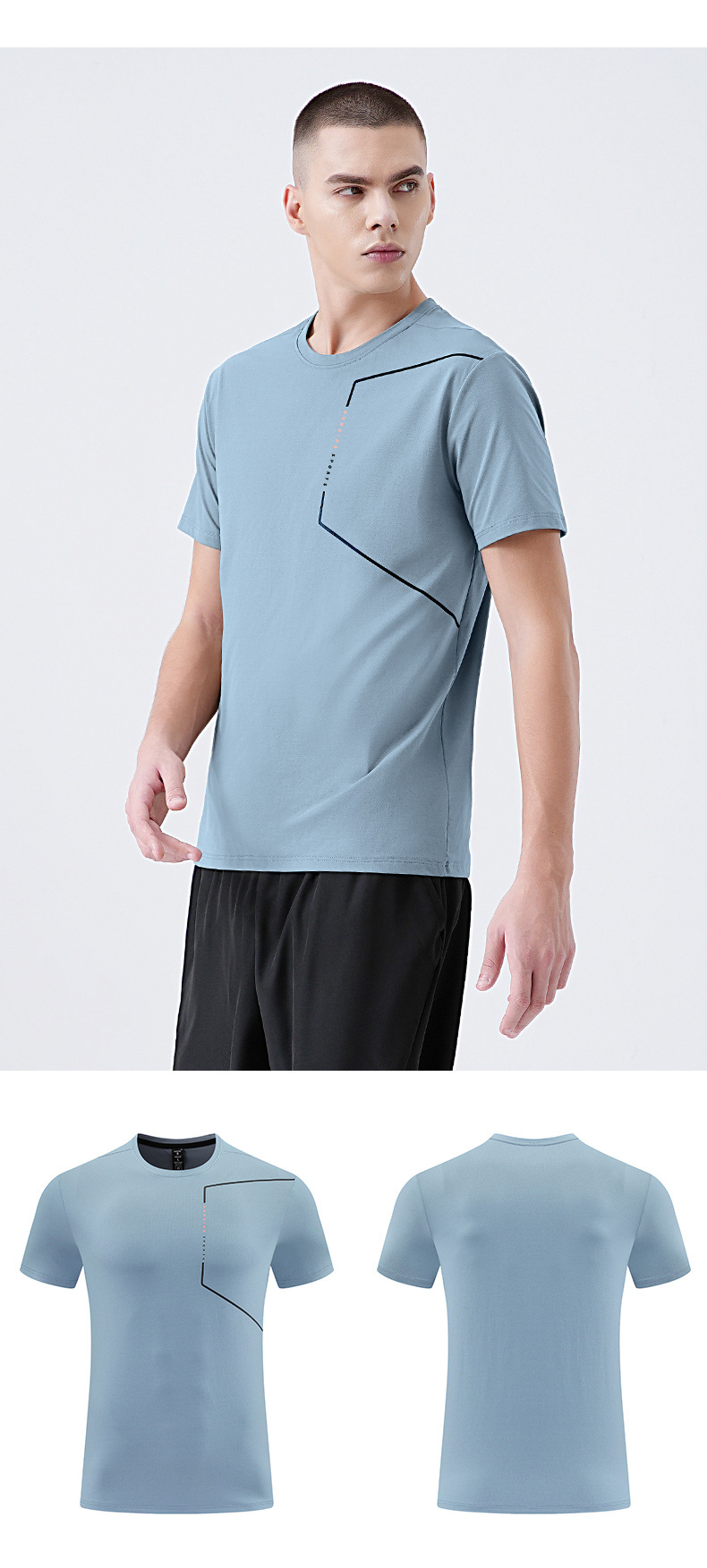 Camiseta deportiva informal de manga corta para hombre, estilo nuevo de verano, transpirable, de secado rápido, para correr y hacer ejercicio, estilo europeo y americano, para comercio exterior transfronterizo.