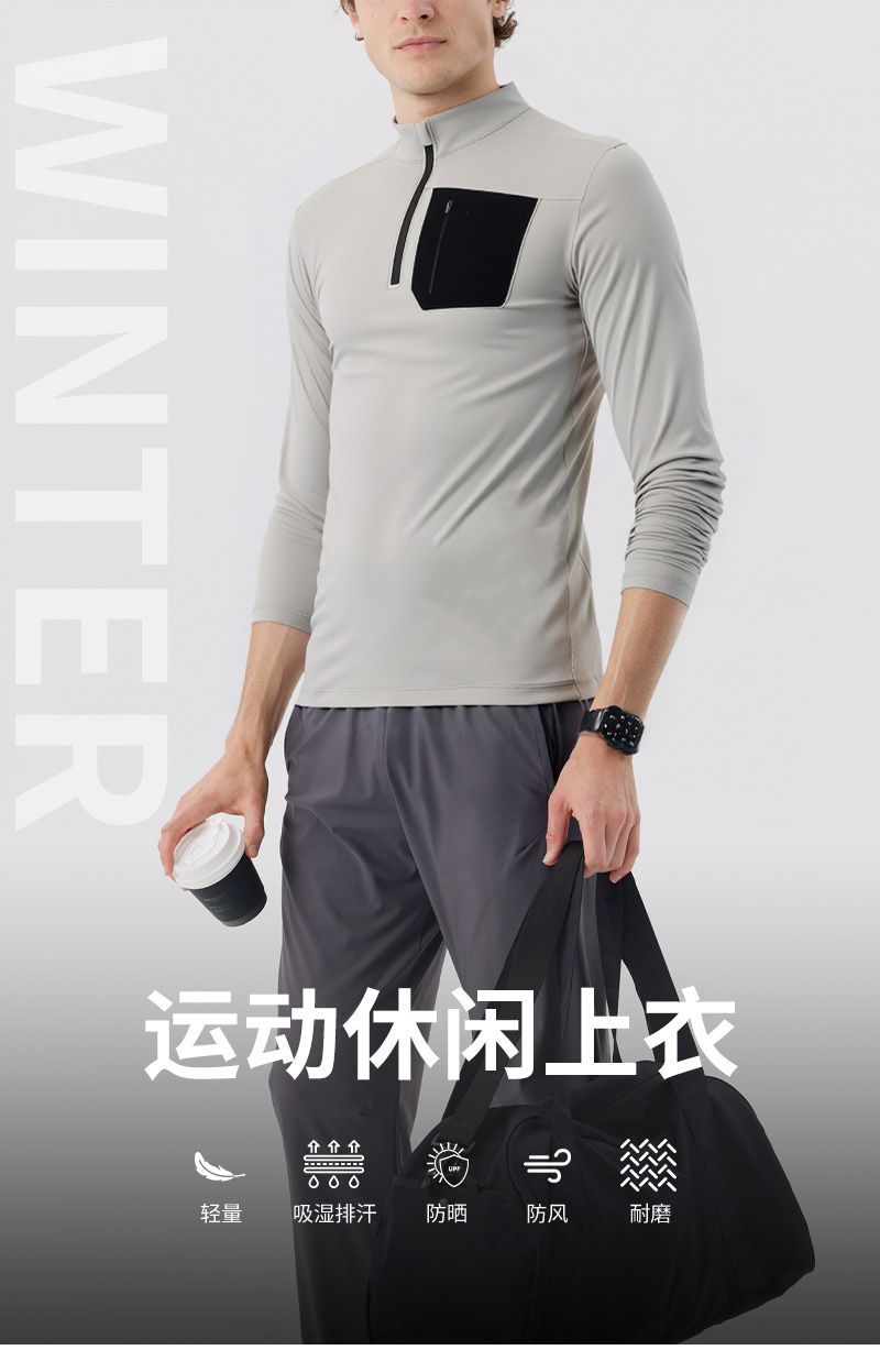 Dijia otoño y invierno nuevo hombre ocio de manga larga media cremallera de cuello superior de nylon ropa deportiva de entrenamiento para correr ropa seca rápida