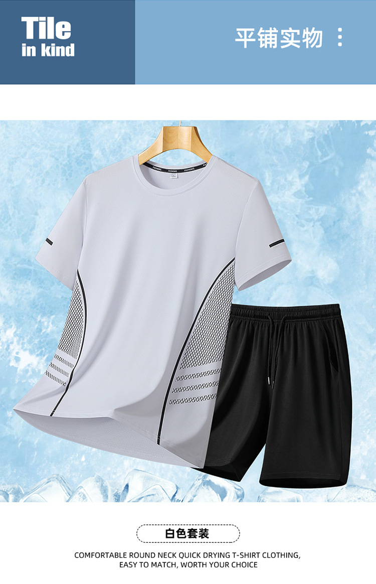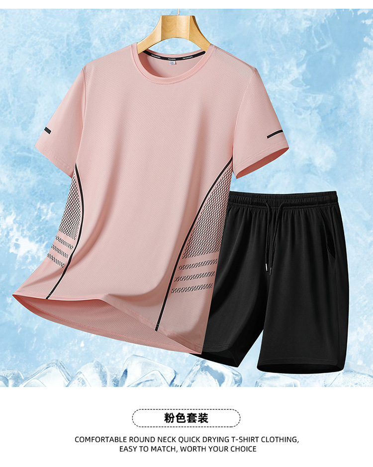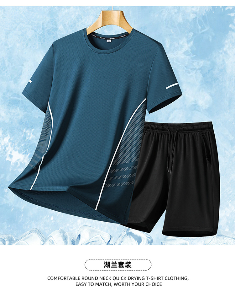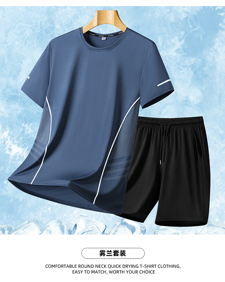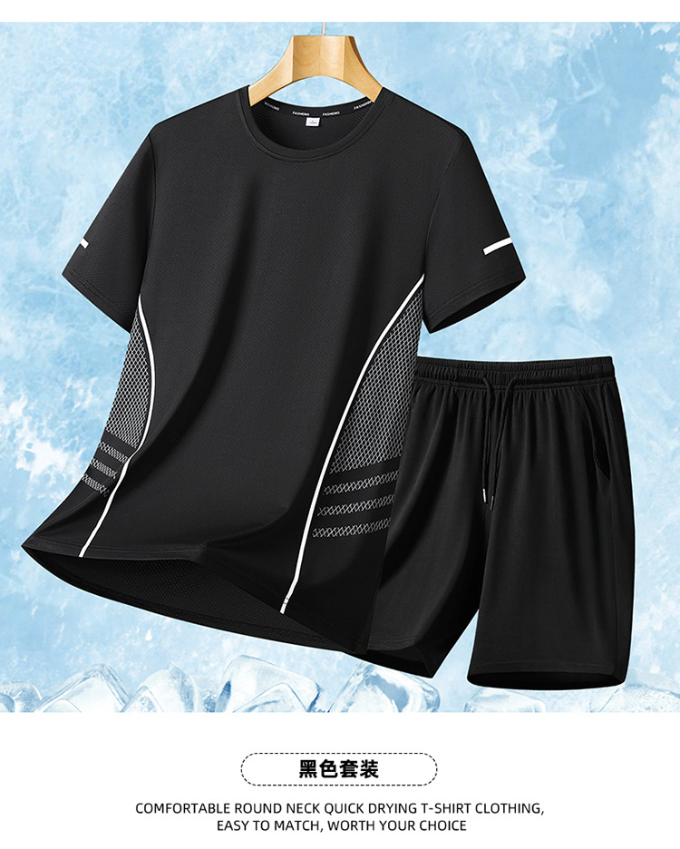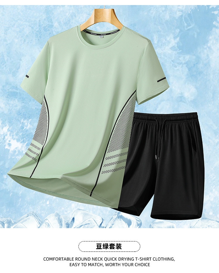 Traje deportivo casual para hombre de verano, estampado para hombre, suelto de dos piezas, elástico, transpirable, camiseta de secado rápido, pantalones cortos para hombre