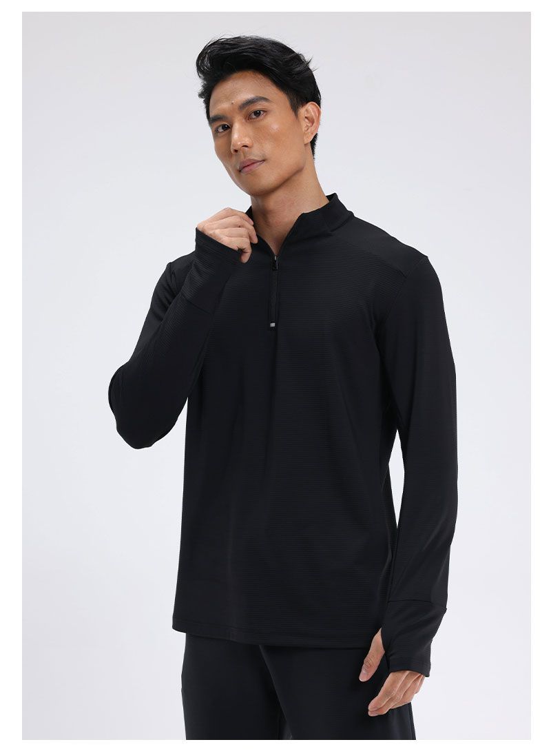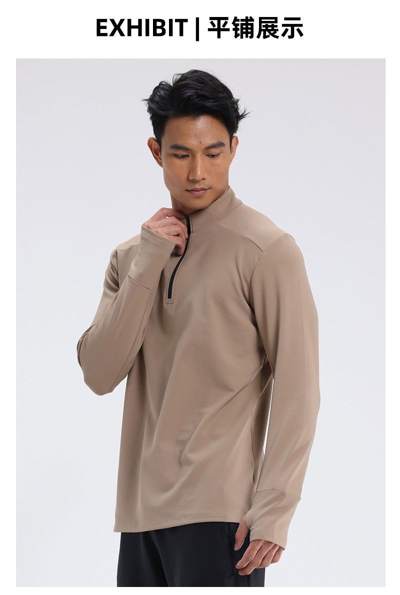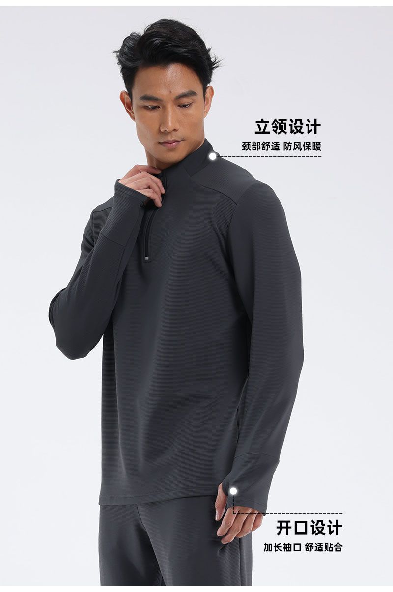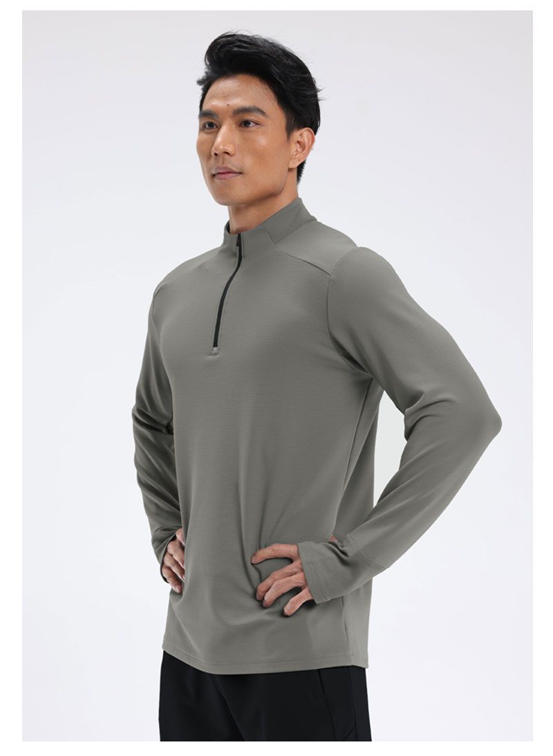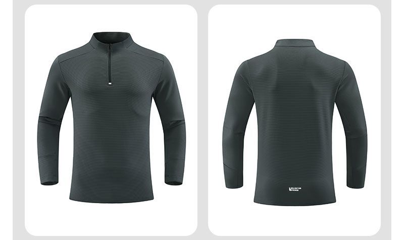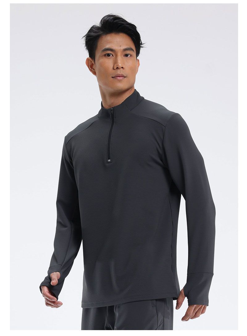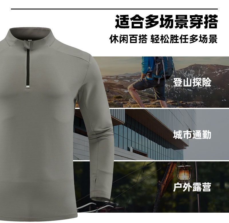 Textura de la mitad del collar deportivo de manga larga, cuello de pie, cuerpo delgado, entrenamiento de alta elasticidad, entrenamiento de base, ropa de secado rápido, camiseta para hombres