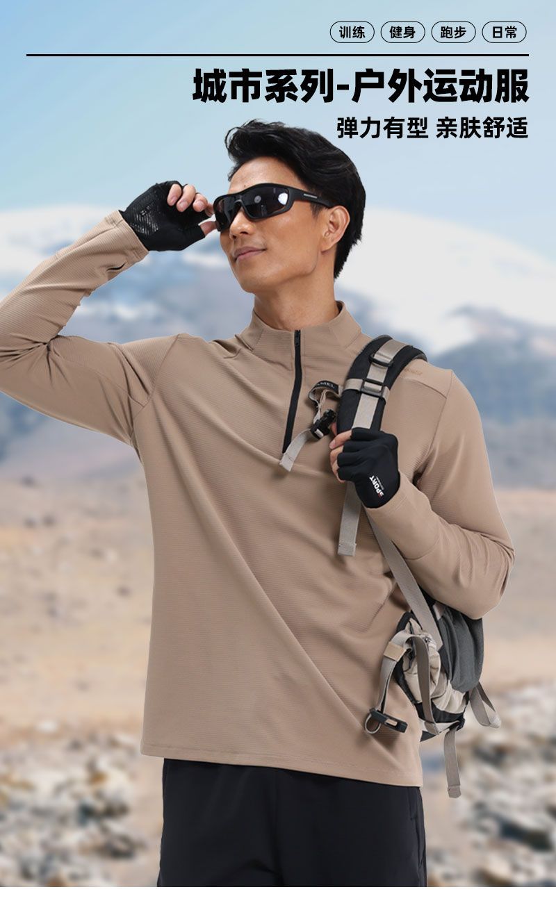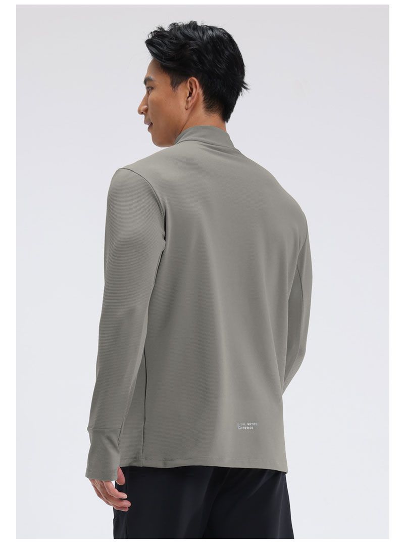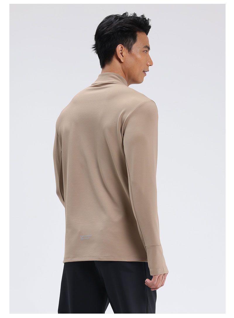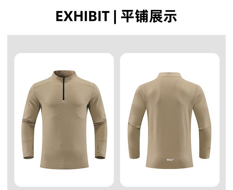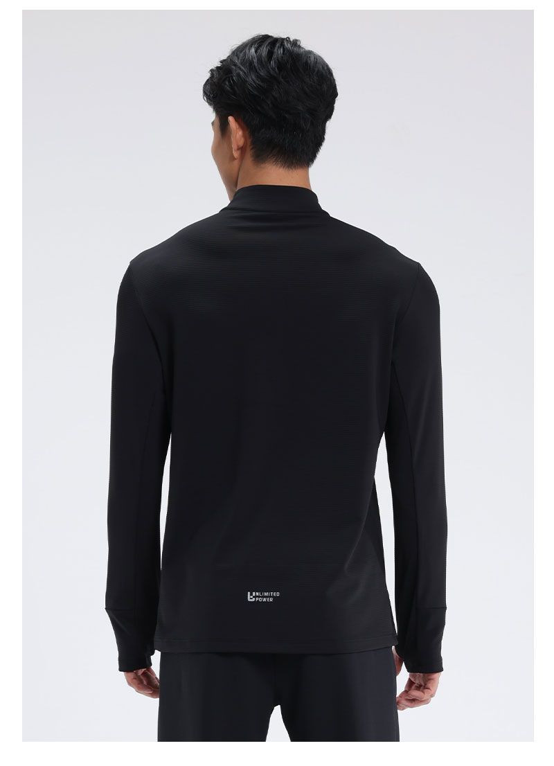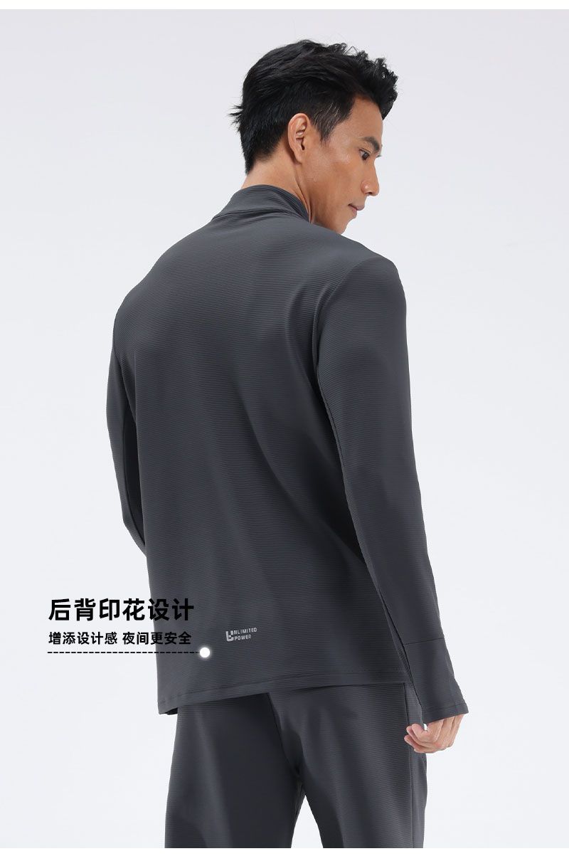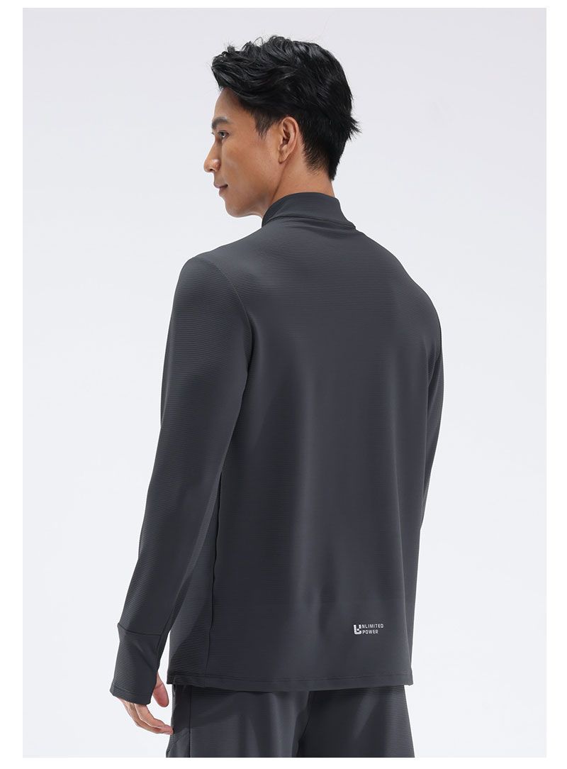 Textura de la mitad del collar deportivo de manga larga, cuello de pie, cuerpo delgado, entrenamiento de alta elasticidad, entrenamiento de base, ropa de secado rápido, camiseta para hombres