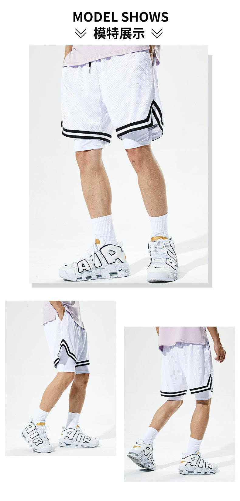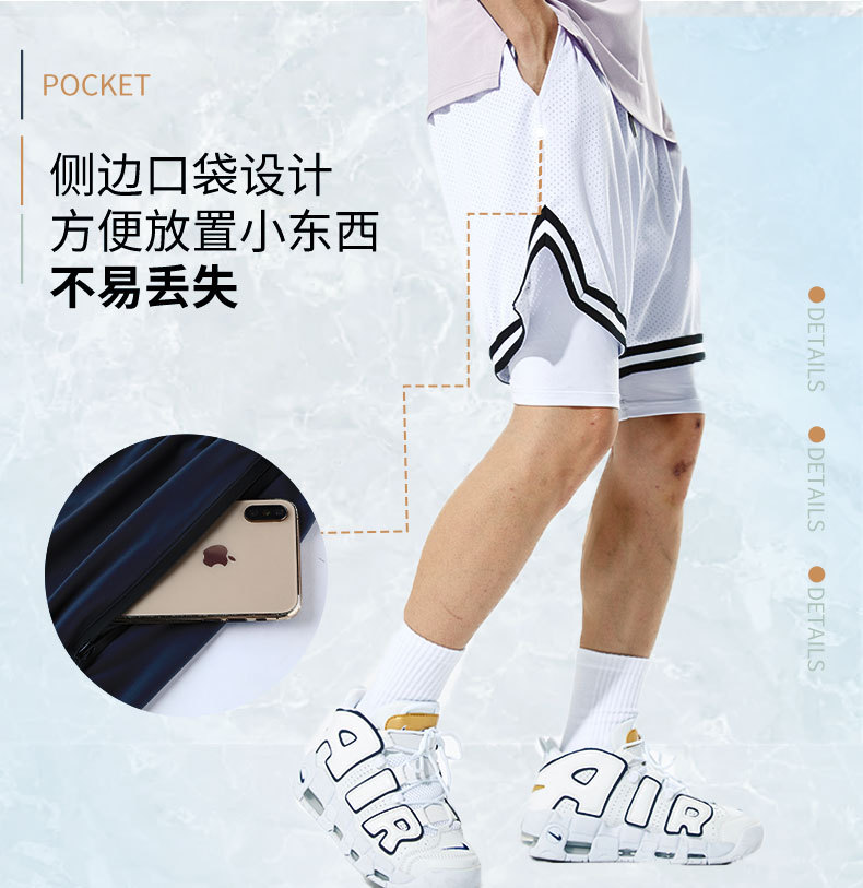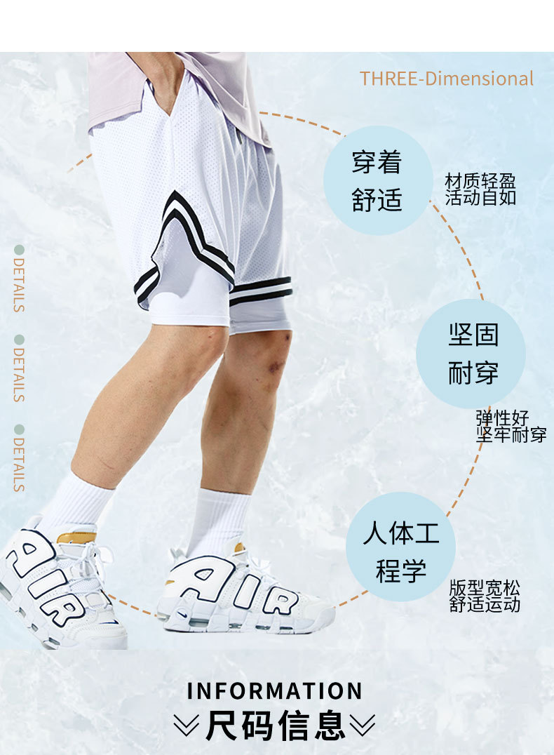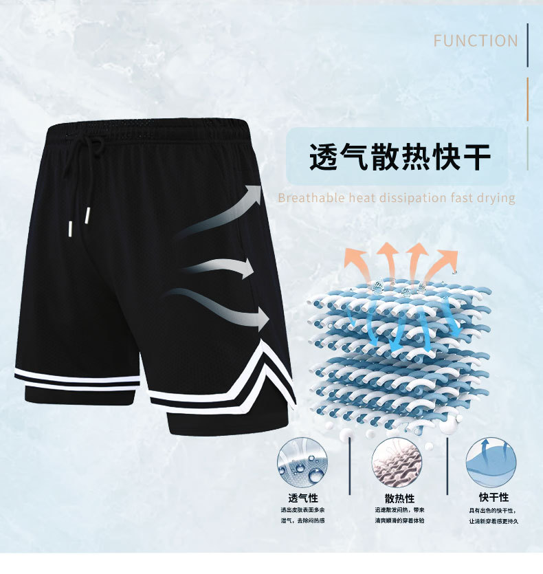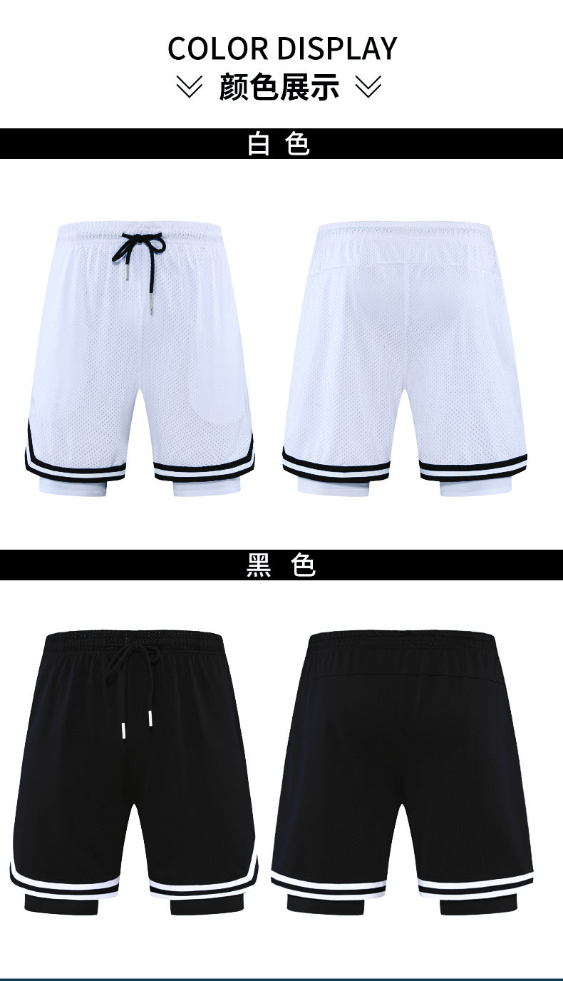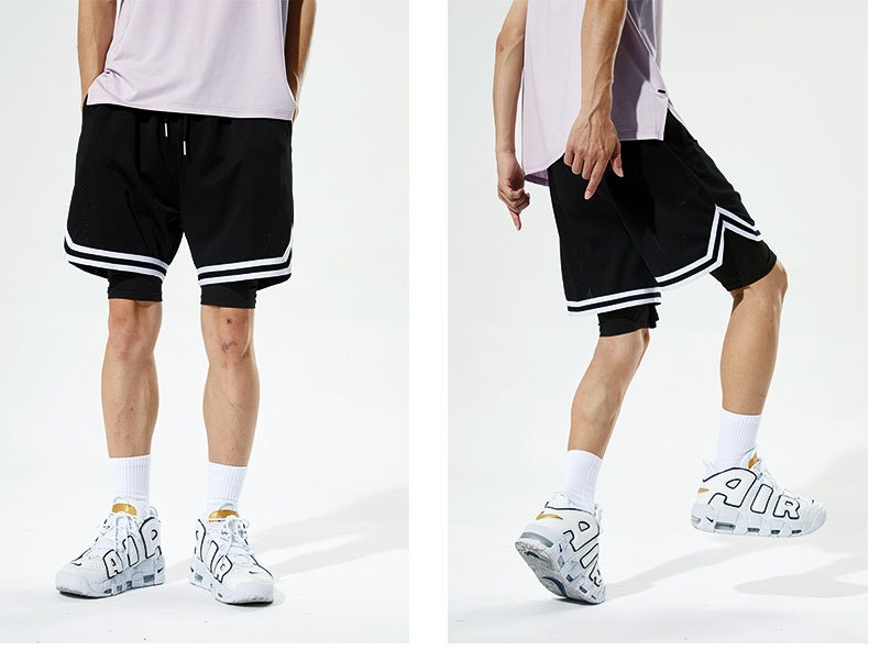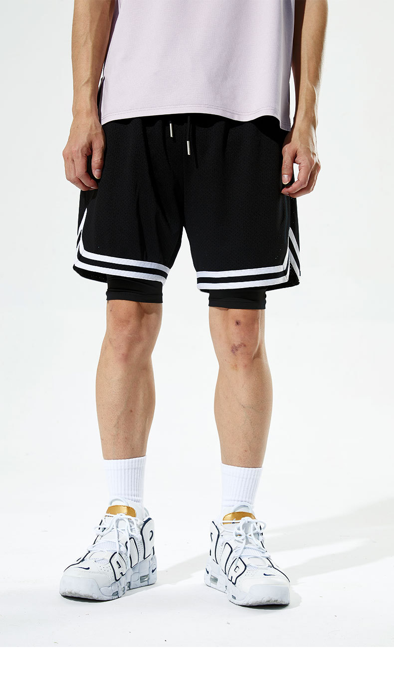 Pantalones cortos deportivos de secado rápido para hombres Pantalones de baloncesto de rodilla de tres puntos falsos de estilo americano para hombres Ropa de entrenamiento con forro