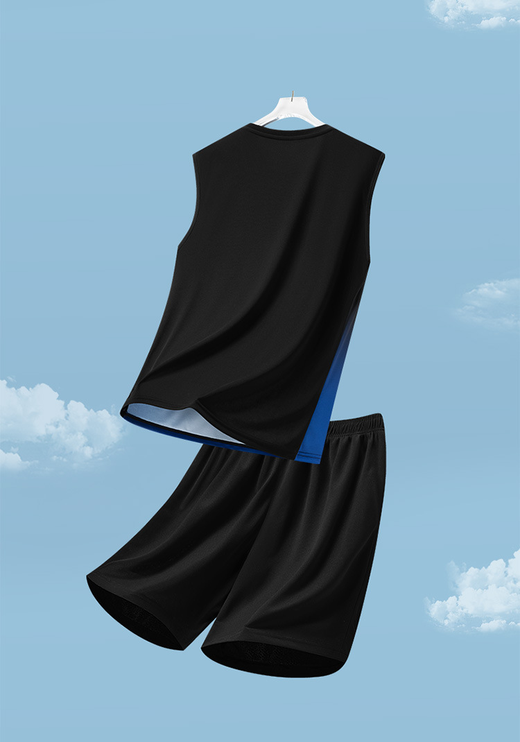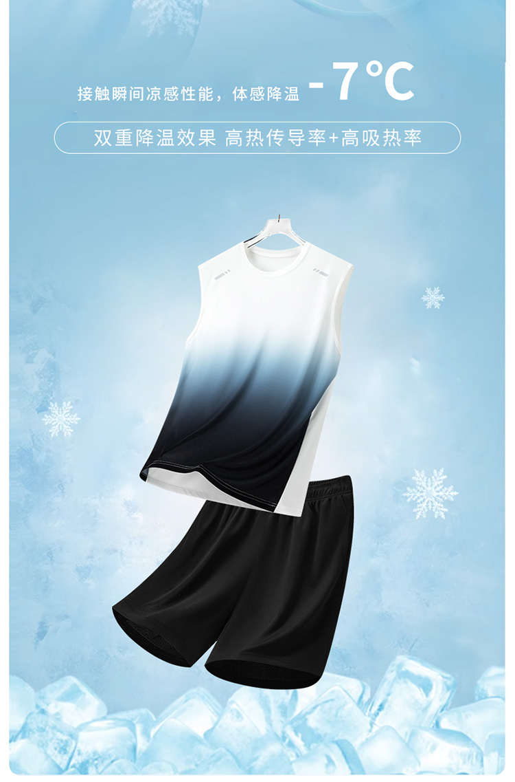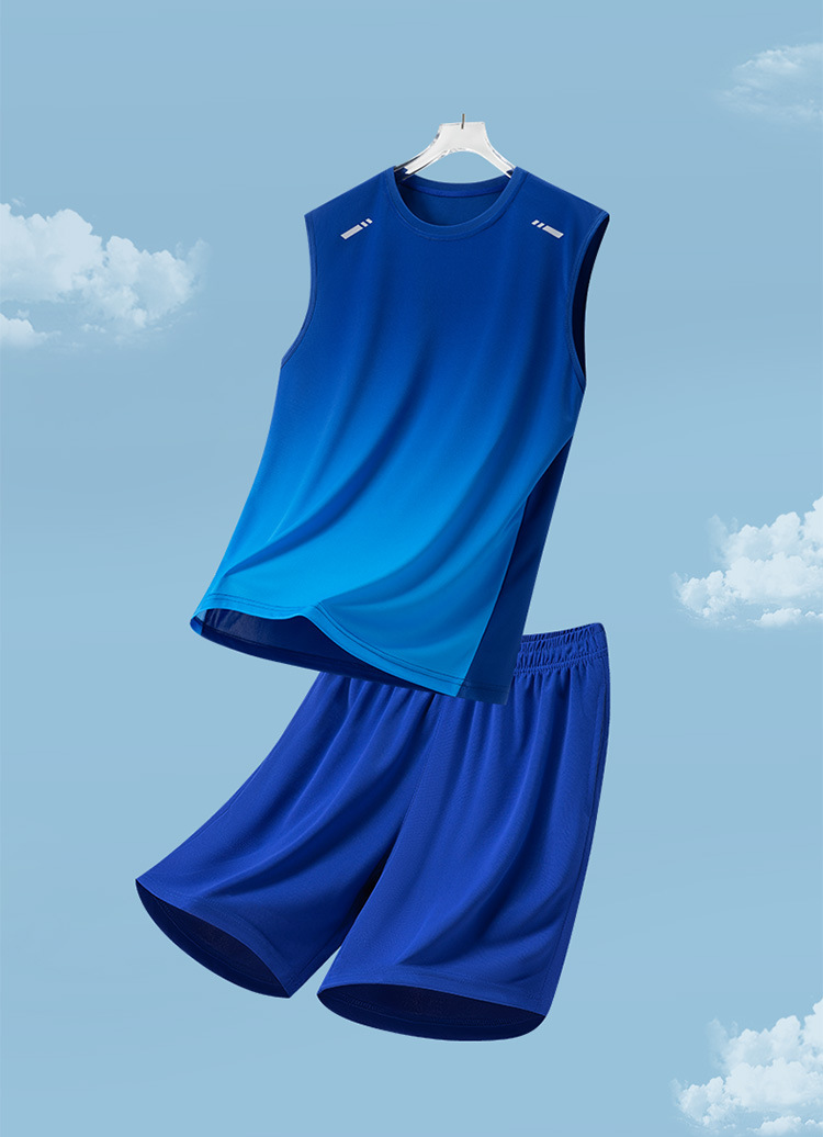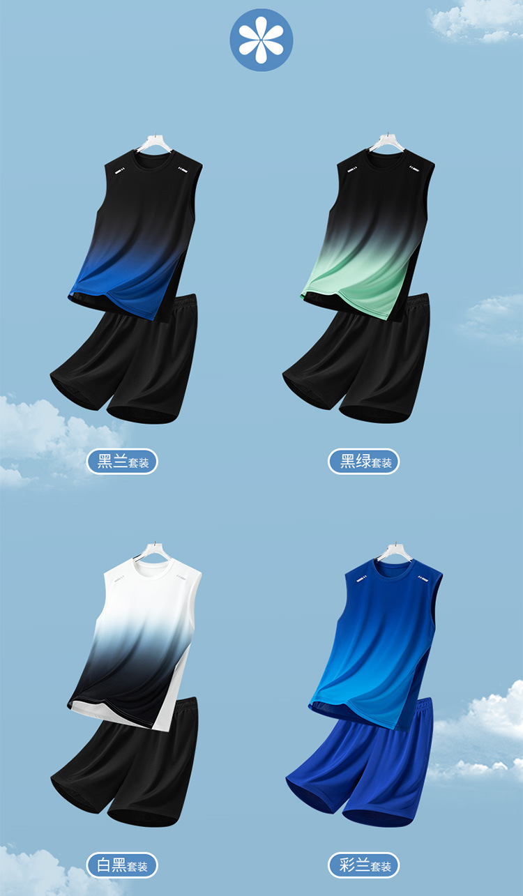 Traje deportivo para hombres, traje casual para hombres de verano, pantalones cortos de chaleco de secado rápido transpirables de dos piezas sueltos con gradiente impreso para hombres