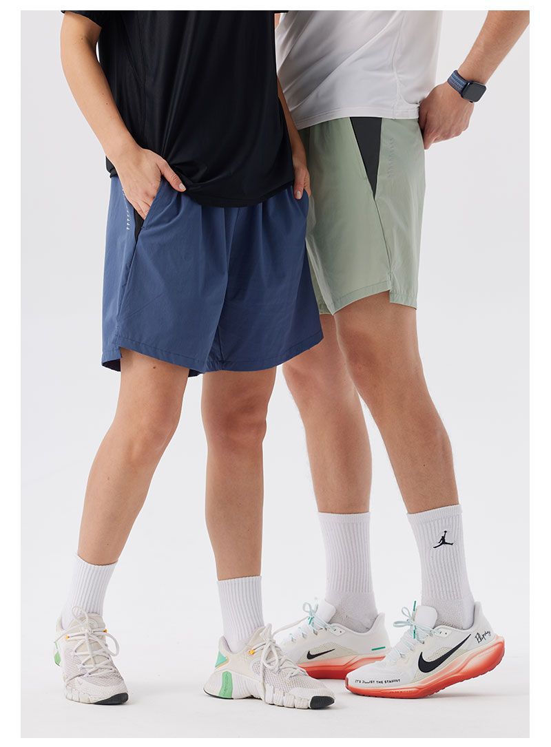 Pantalones cortos deportivos de color contrastante de empalme para hombres de verano frescos secos rápidos para correr Pantalones cortos de entrenamiento de tiro para hombres