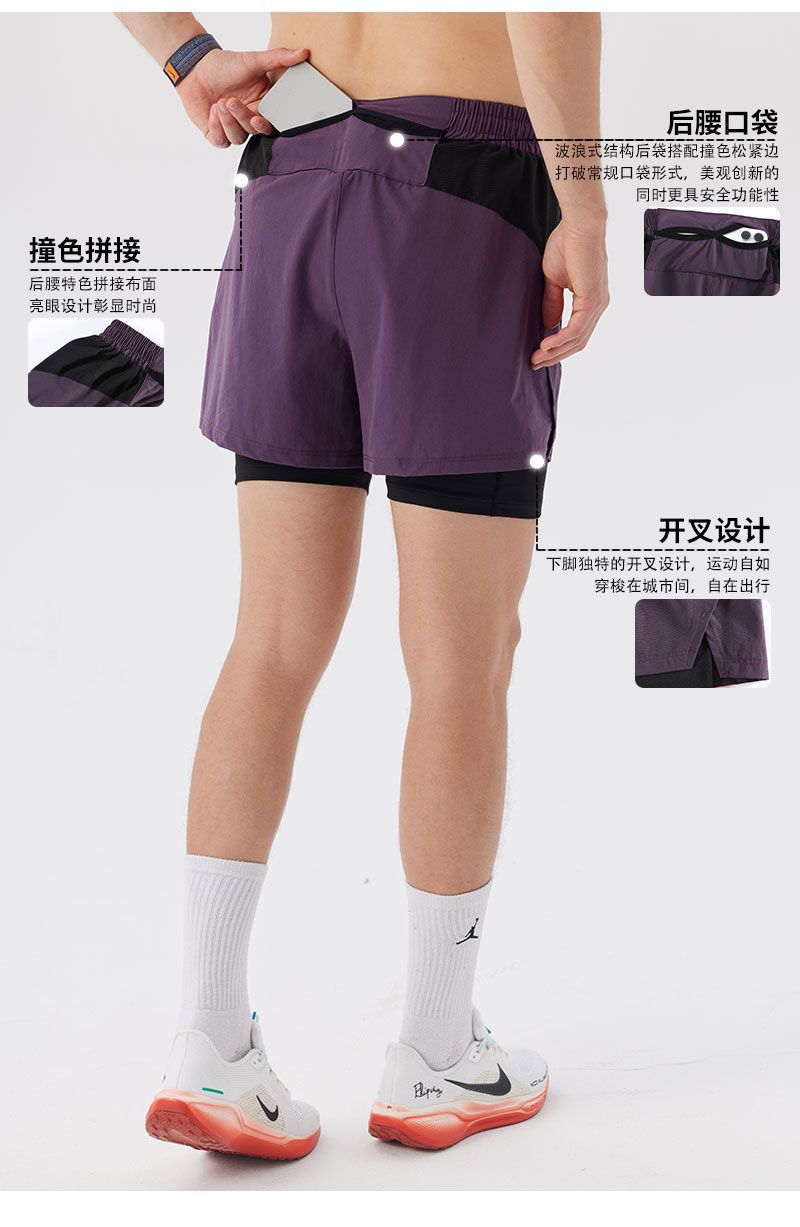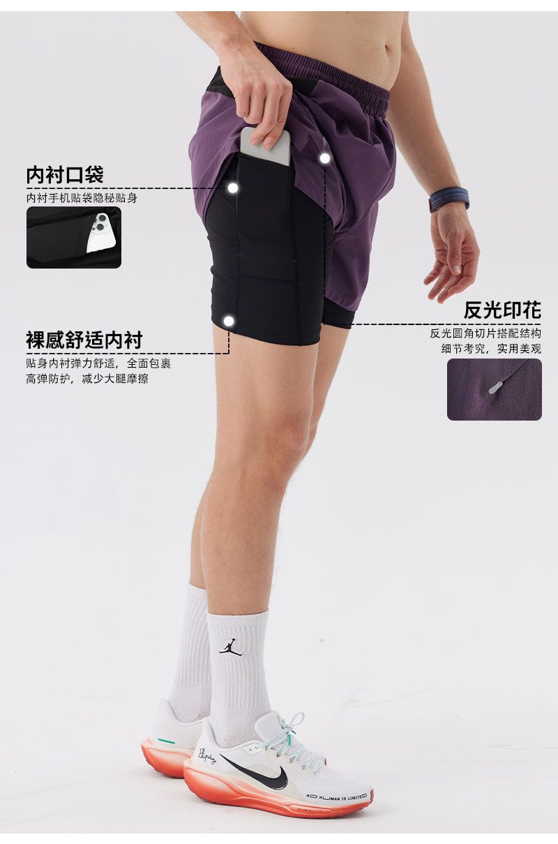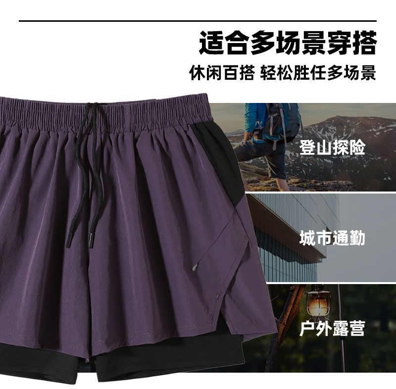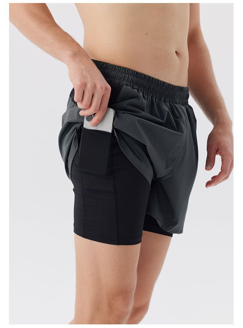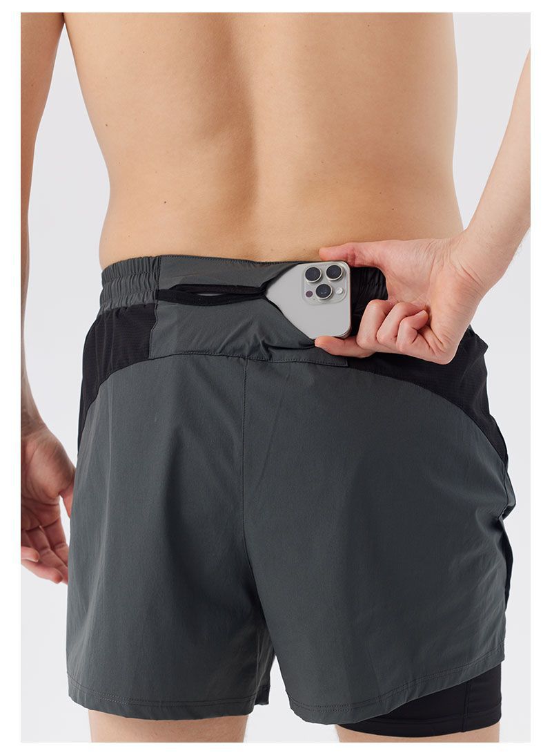 Pantalones cortos de correr para hombres de maratón rápido y seco pista y campo de tres puntos para revestimiento de pantalones de doble capa deportivo fitness puede poner el teléfono móvil