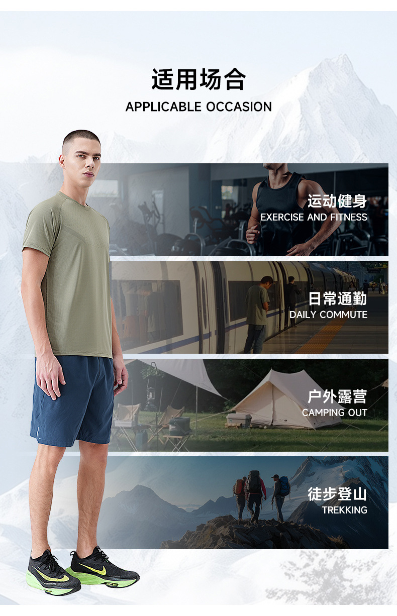 2025 camiseta de manga corta con cuello redondo para hombres, deportes de montañismo al aire libre de verano, correr, absorber la humedad, secar la ropa superior