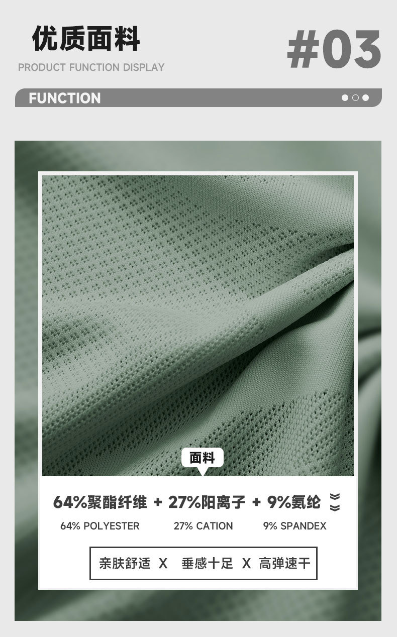 | Contenido de composición de la tela | 64% poliéster + 27% catión + 9% elastano |