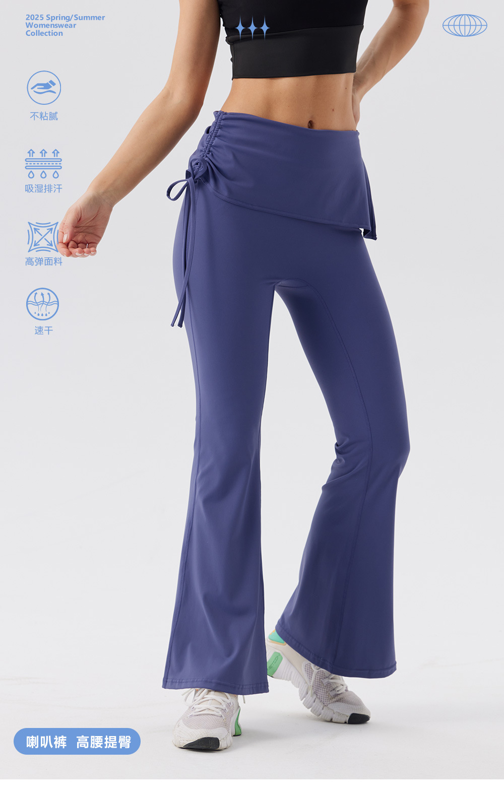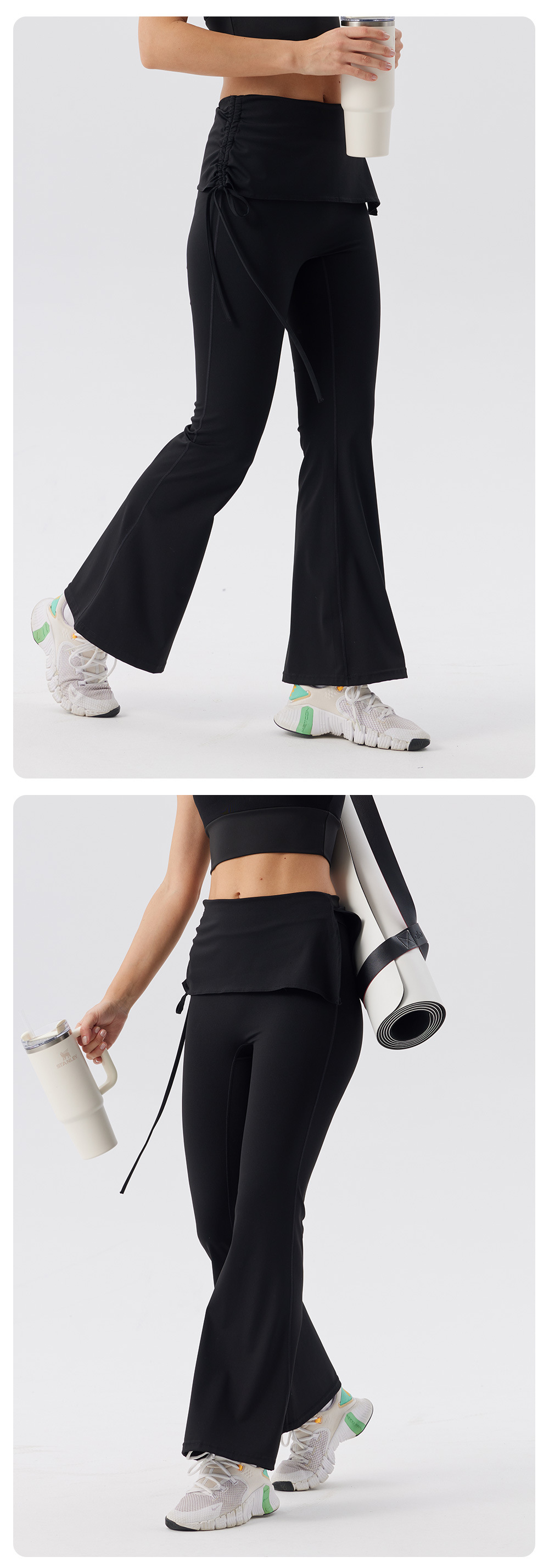 Pantalones de ropa de yoga nude estilo de primavera y verano para mujer con falda, cintura alta ajustada, cadera, estiramiento, ropa deportiva de secado rápido, pantalones