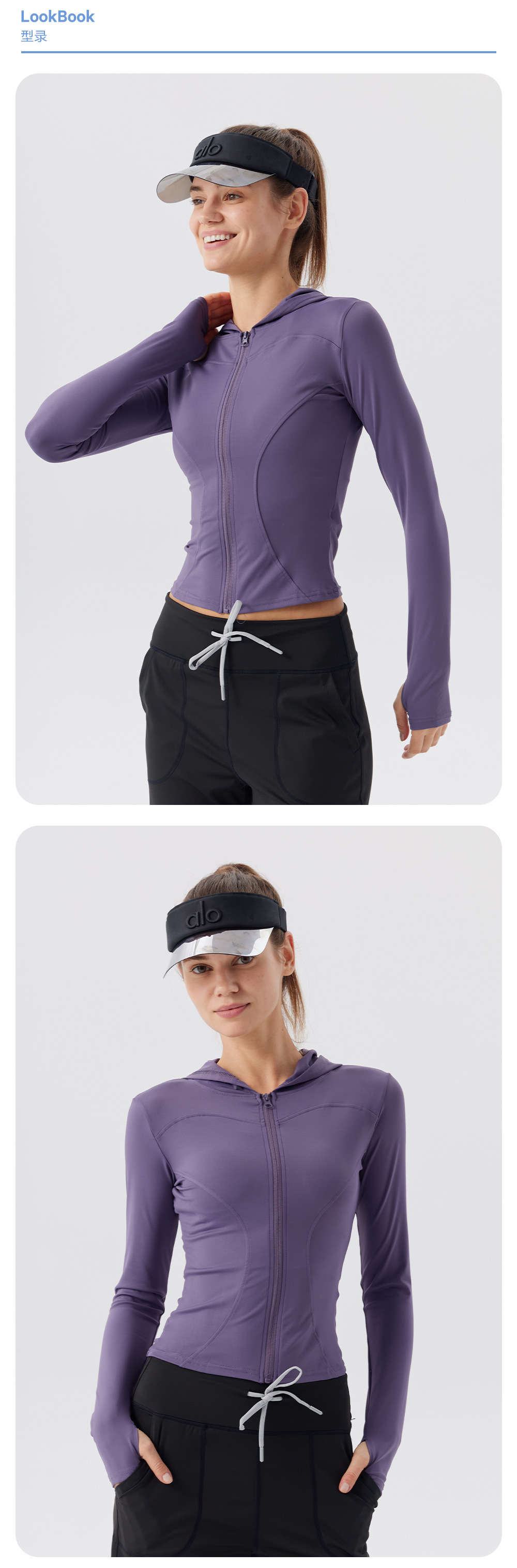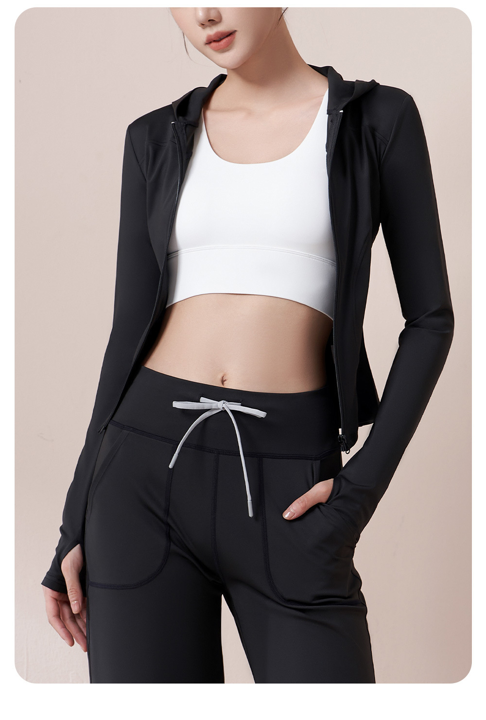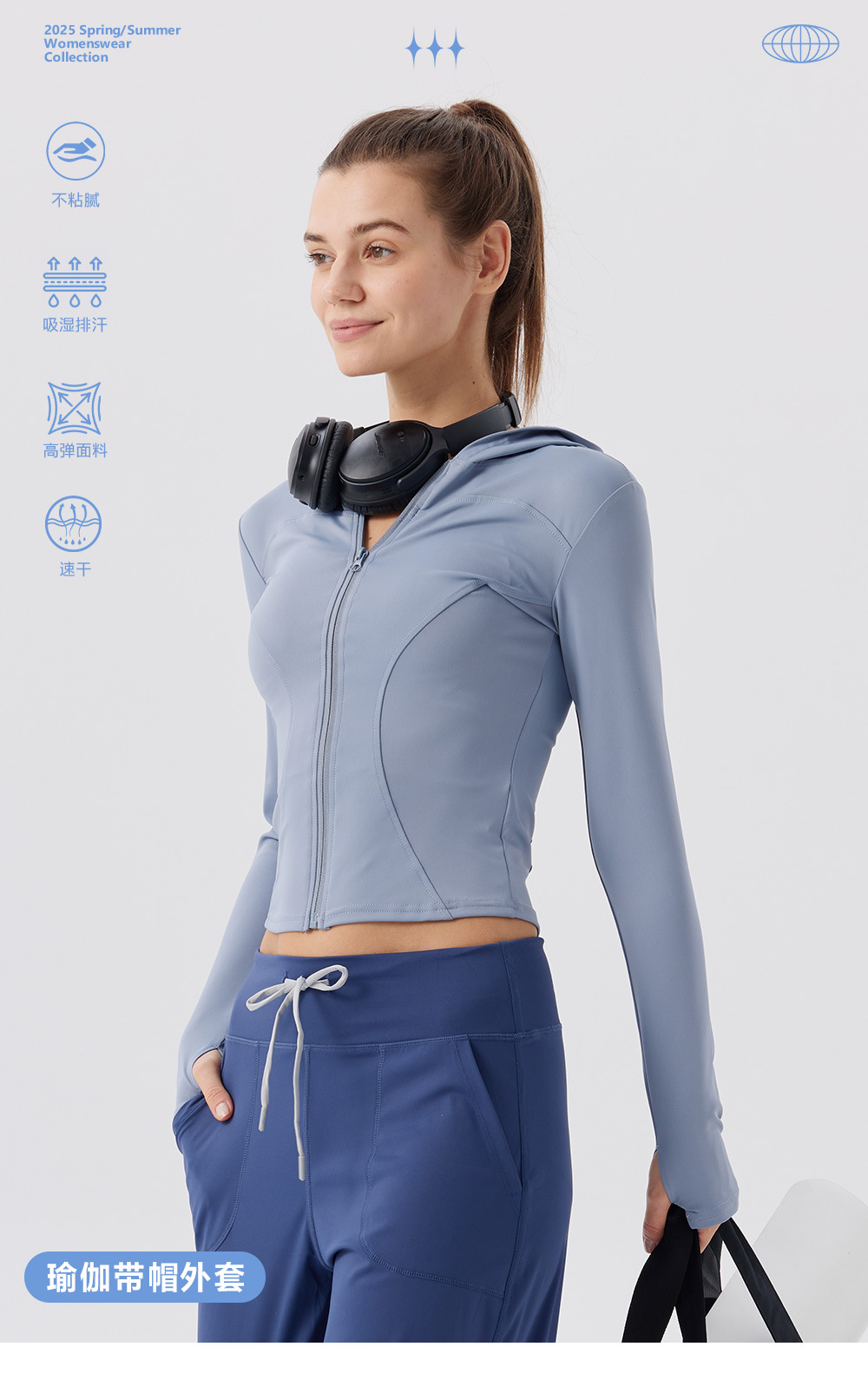Ropa de yoga con capucha para mujer, ajuste ajustado, cintura delgada, camisa deportiva, entrenamiento para correr, chaqueta de fitness Pilates, ropa de ciclismo