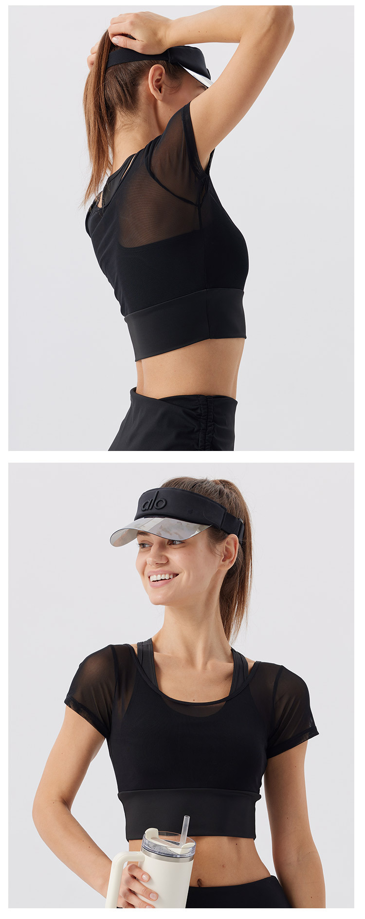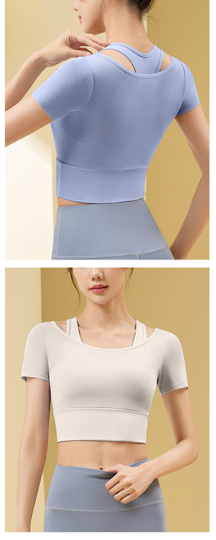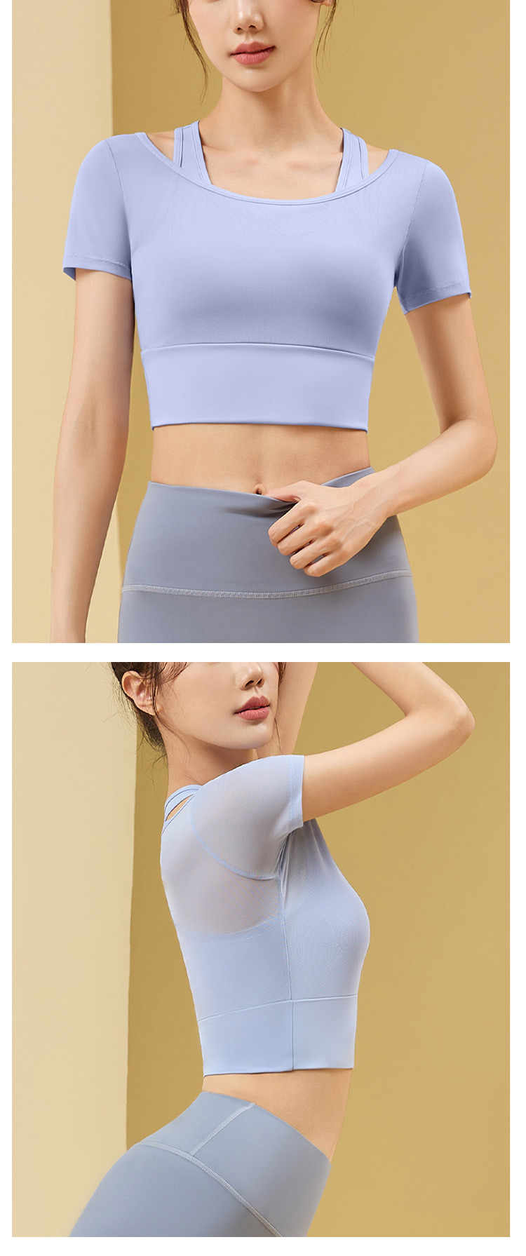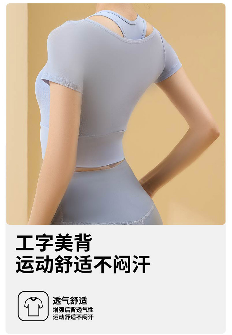 Ropa de yoga de temperamento de hilo de red, ropa de gimnasia deportiva nueva para mujer, entrenamiento de Pilates, manga corta falsa de dos piezas