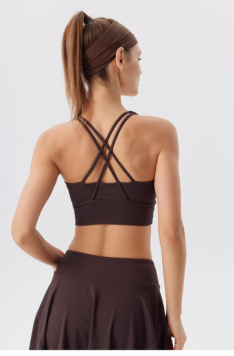 Chaleco deportivo de intensidad media, ropa de yoga a prueba de golpes, espalda a rayas, cruz, tirantes delgados, ropa interior deportiva, sujetador de Pilates