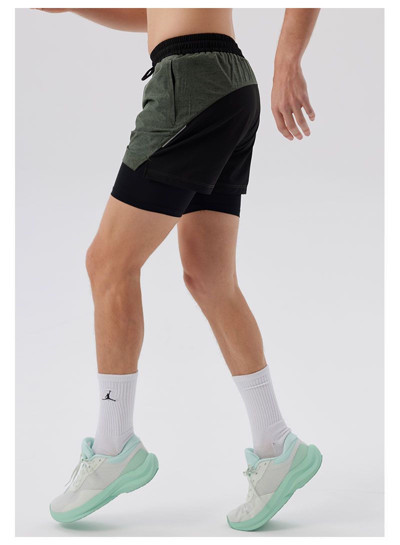 Pantalones cortos deportivos de doble capa de cuatro puntos para hombres, pantalones cortos de entrenamiento de baloncesto, pantalones cortos de entrenamiento de baloncesto