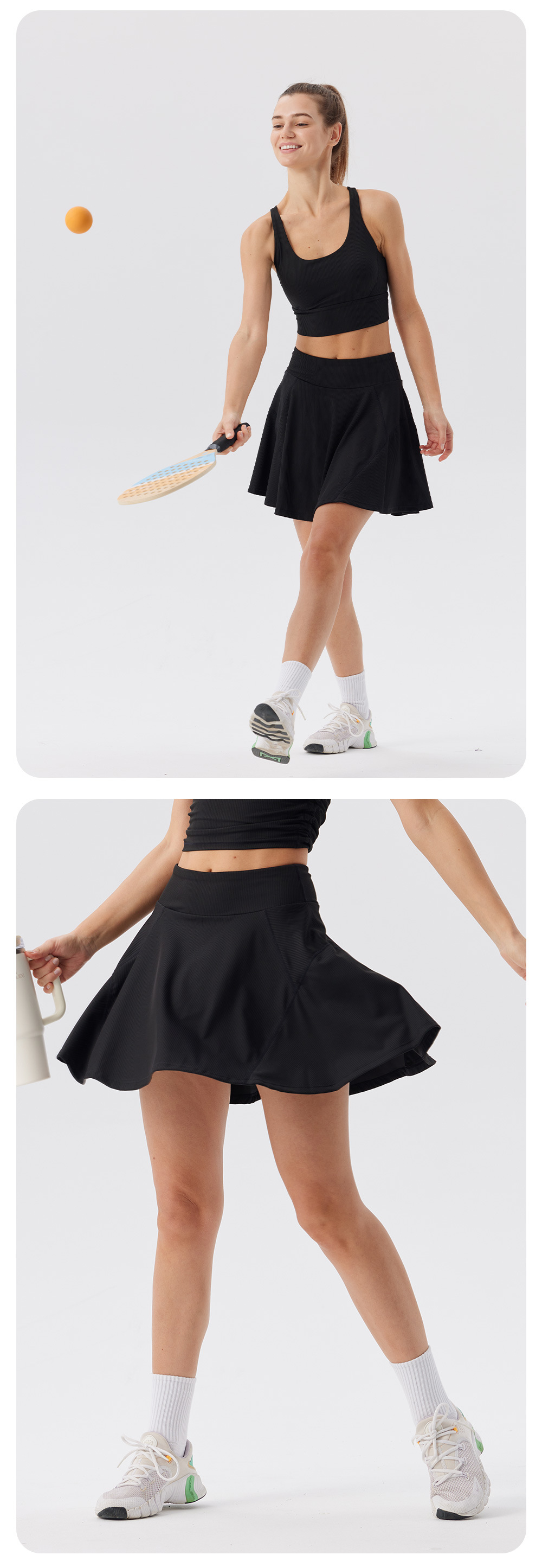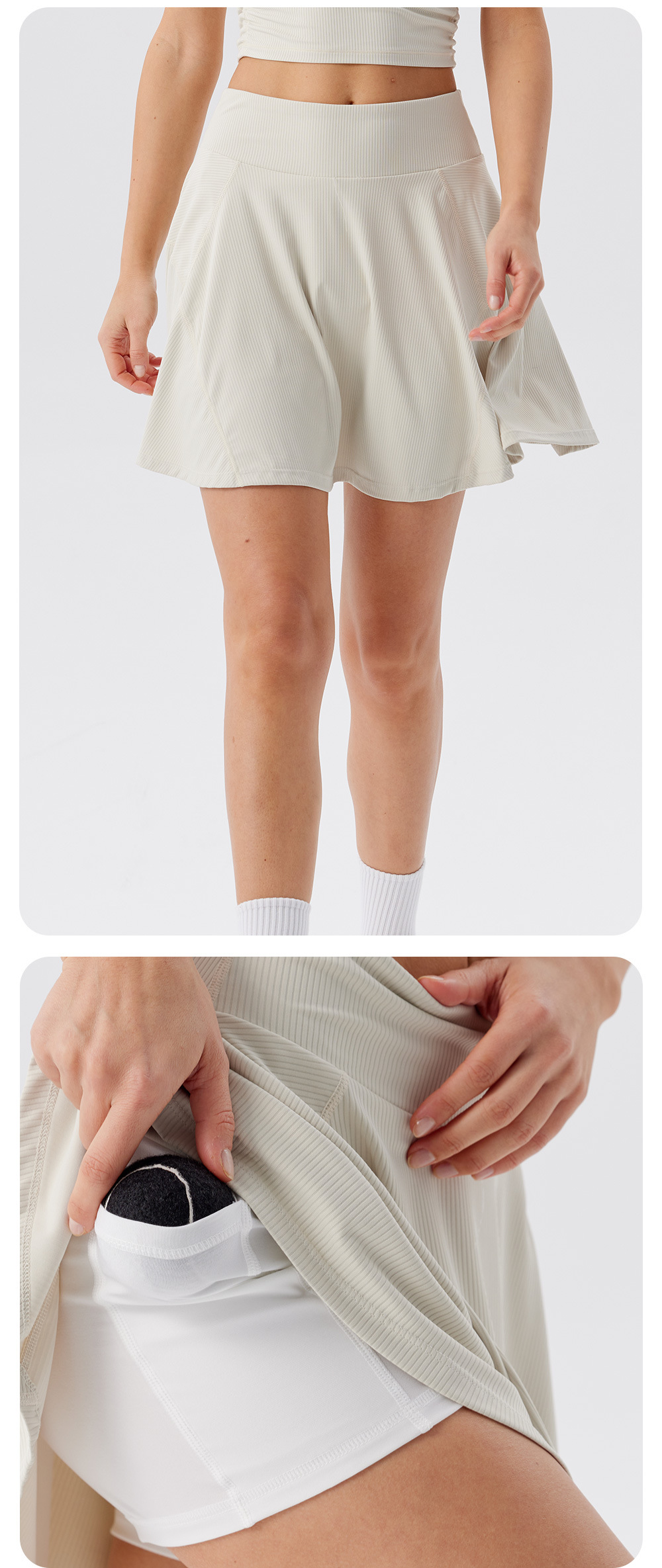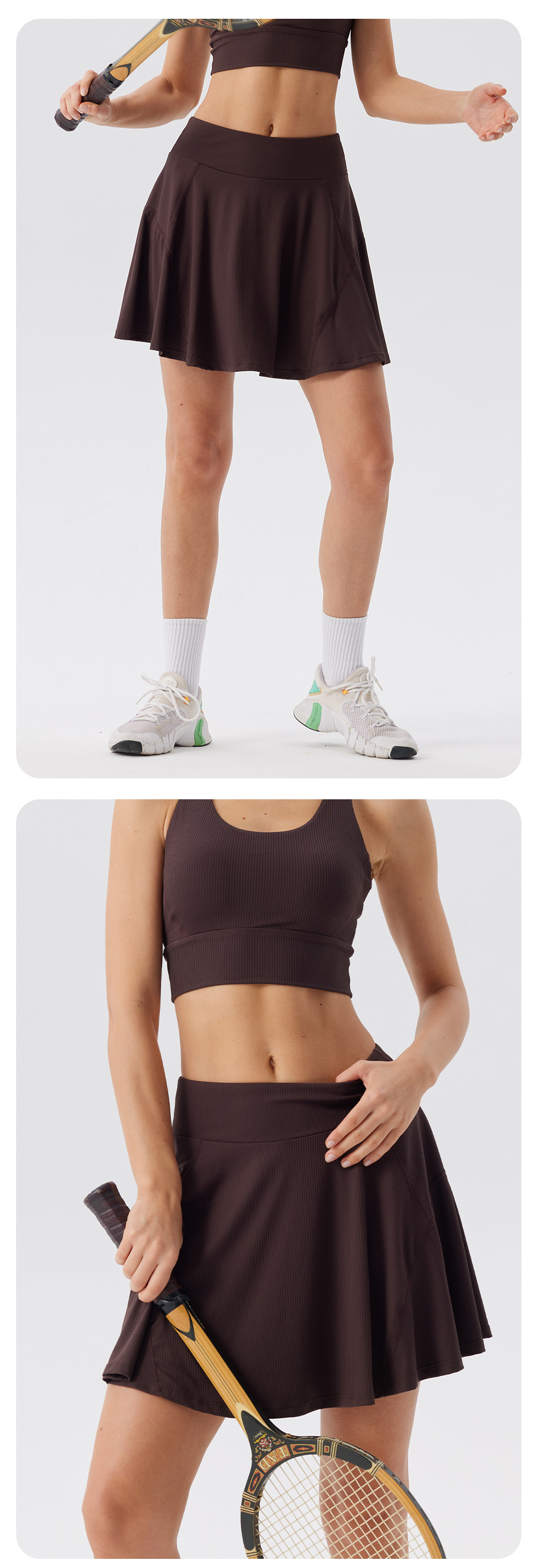 Deportes al aire libre correr falda deportiva corta una mujer falda de dos piezas falda de mitad de cuerpo anti-fuerte forrado falda de tenis de cintura alta