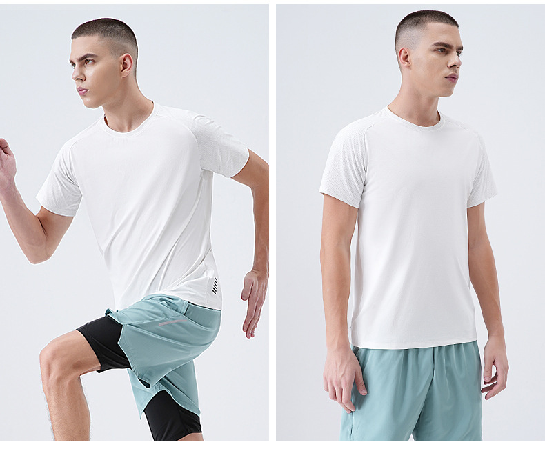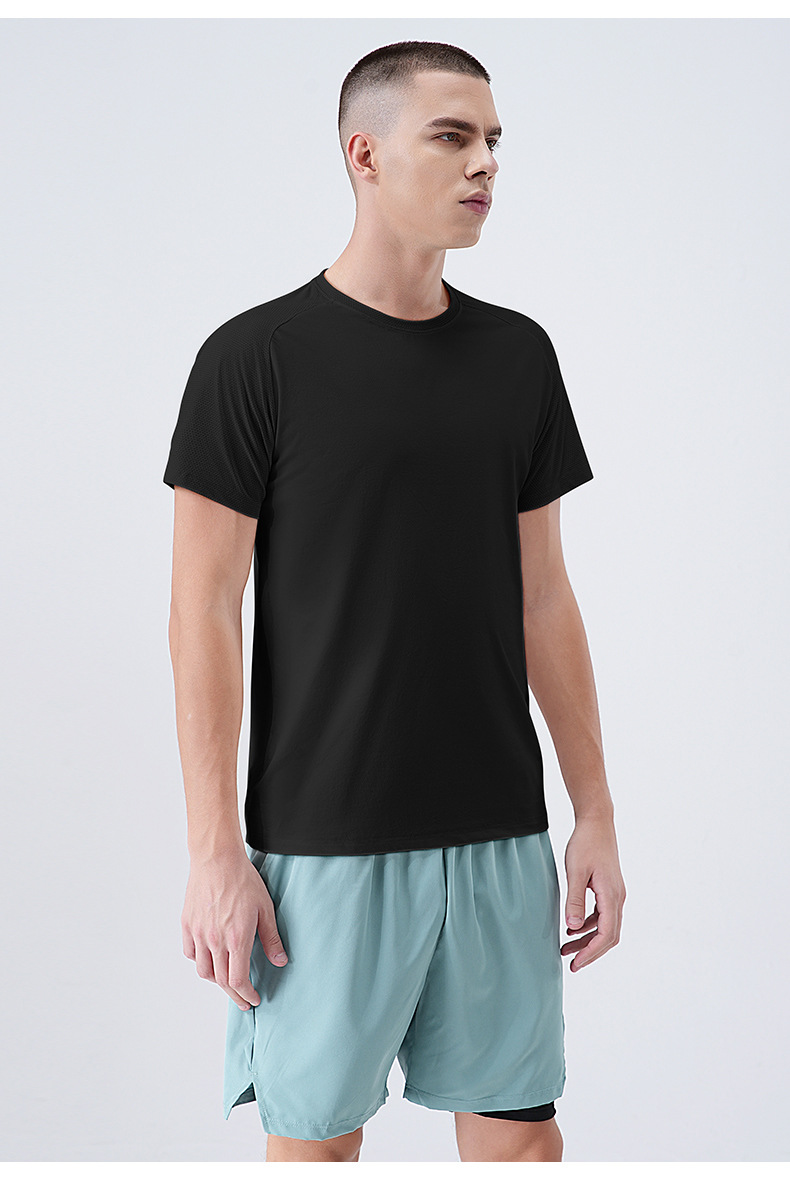 Camiseta de secado rápido para hombre, verano, cuello redondo, color sólido, deportes, ocio urbano, correr, transpirable para hombre, senderismo al aire libre, camisa de manga corta