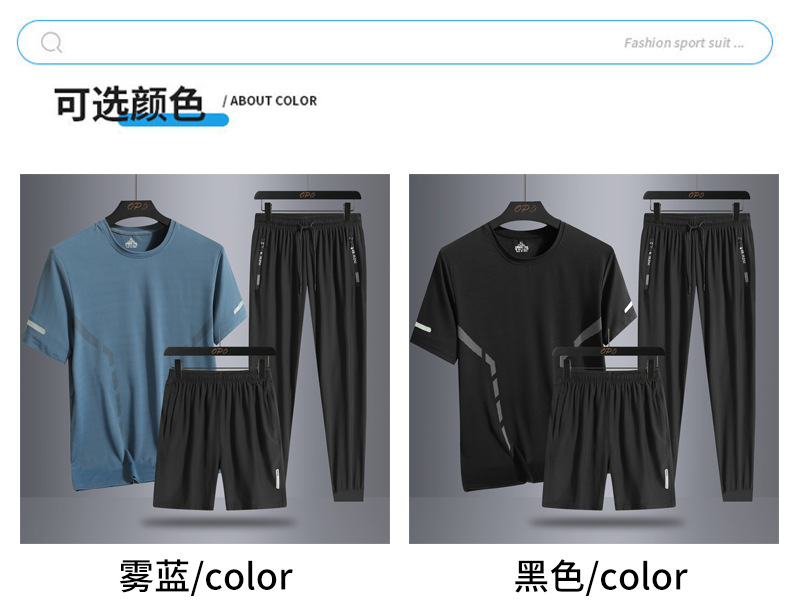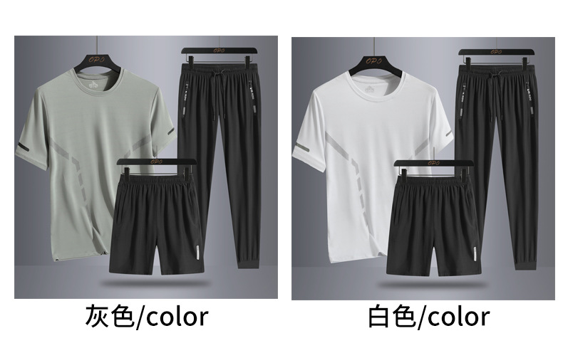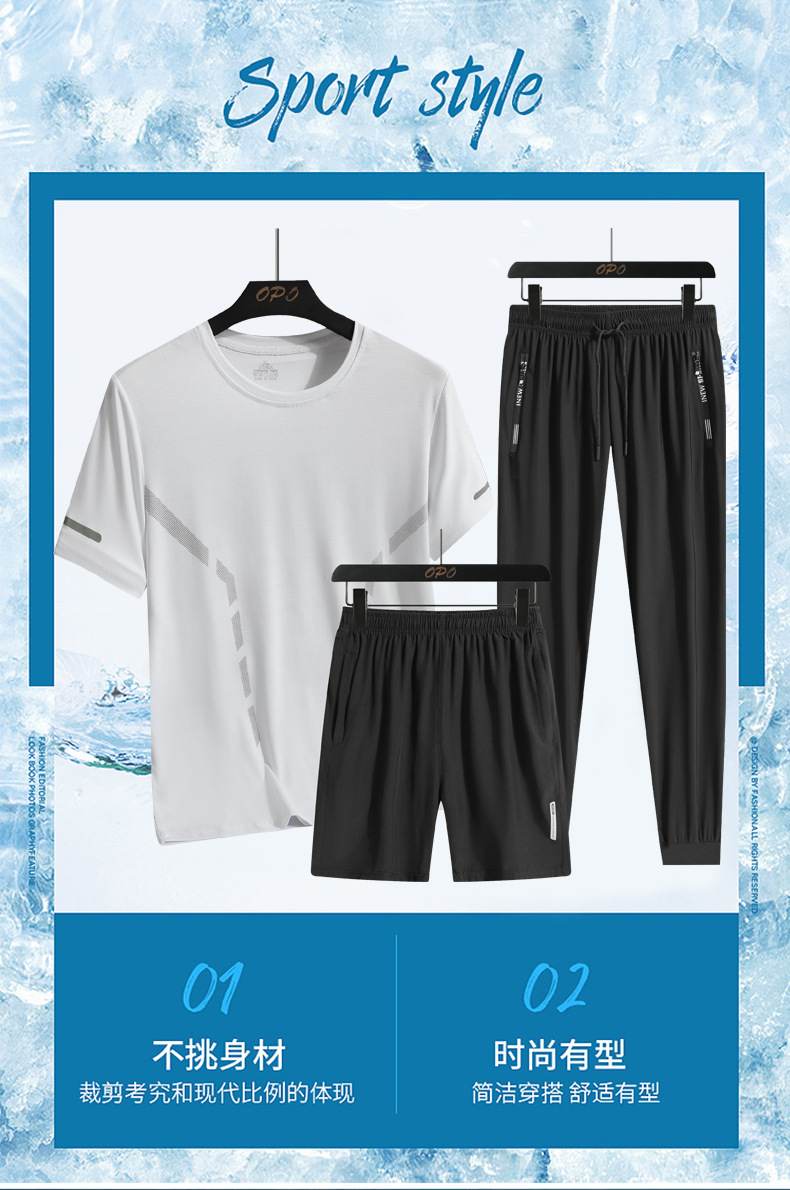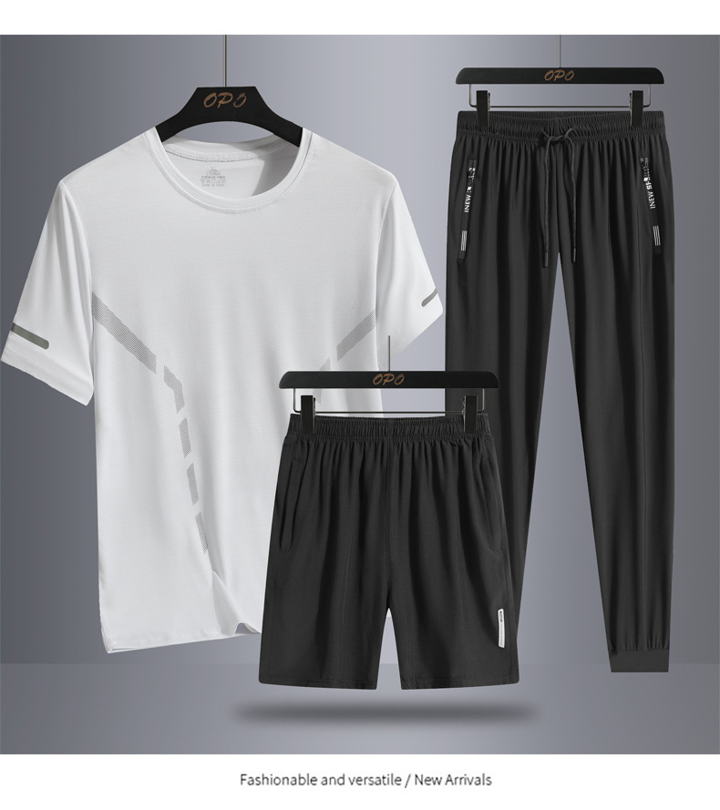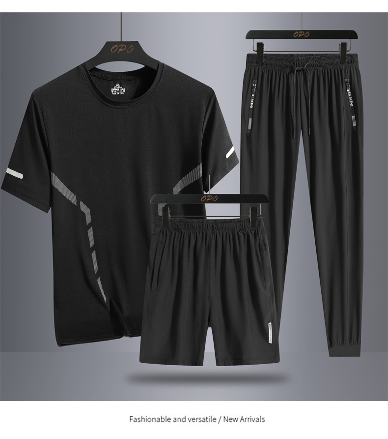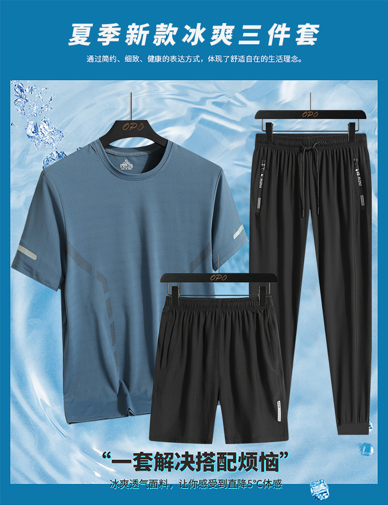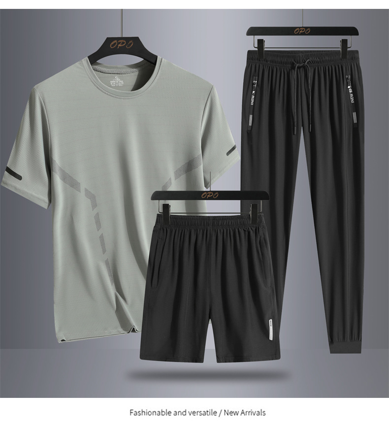 Verano hielo al aire libre hombre deportivo relajado tres piezas transpiración rápida secado cuello redondo camiseta pantalones set hombre
