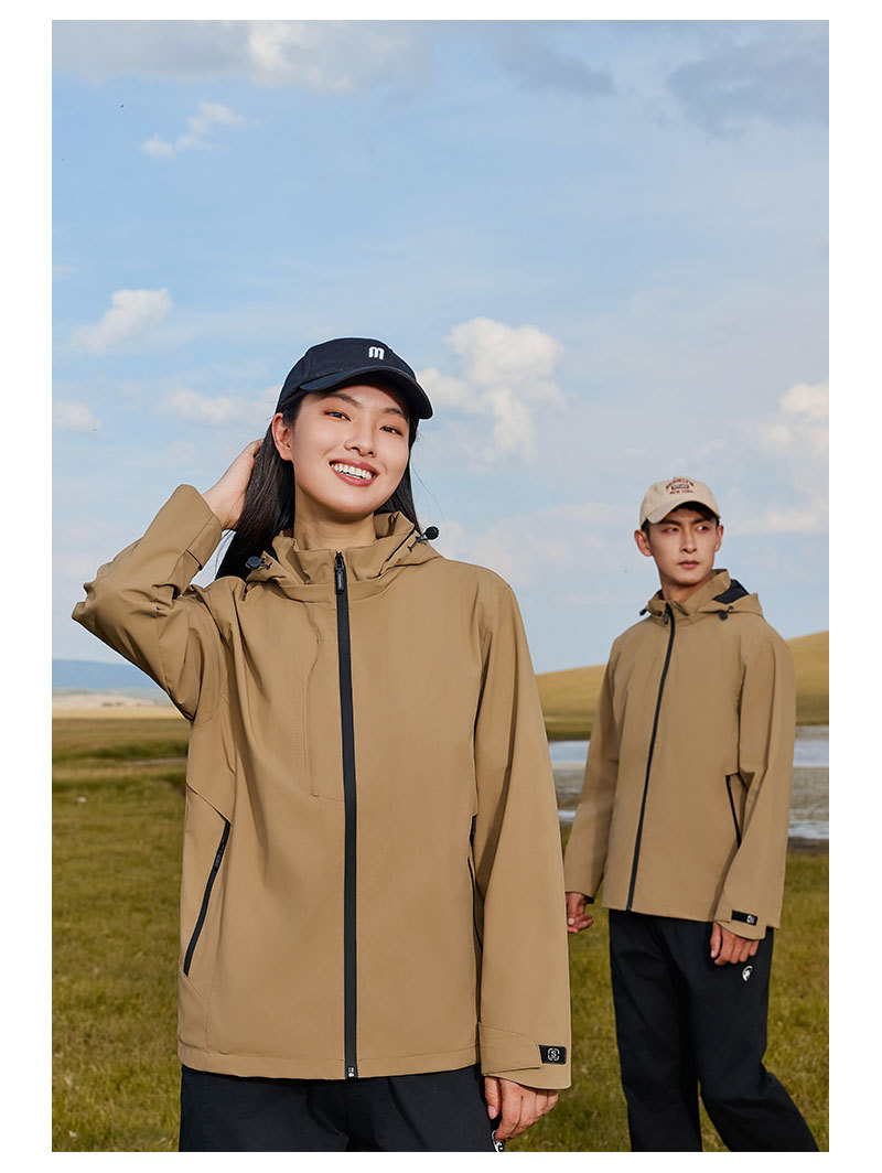 Chaqueta de alpinismo al aire libre para hombres y mujeres impermeable a prueba de viento Ropa de grupo de primavera y otoño Logotipo impreso Chaqueta de cáscara suave personalizada para todo el partido