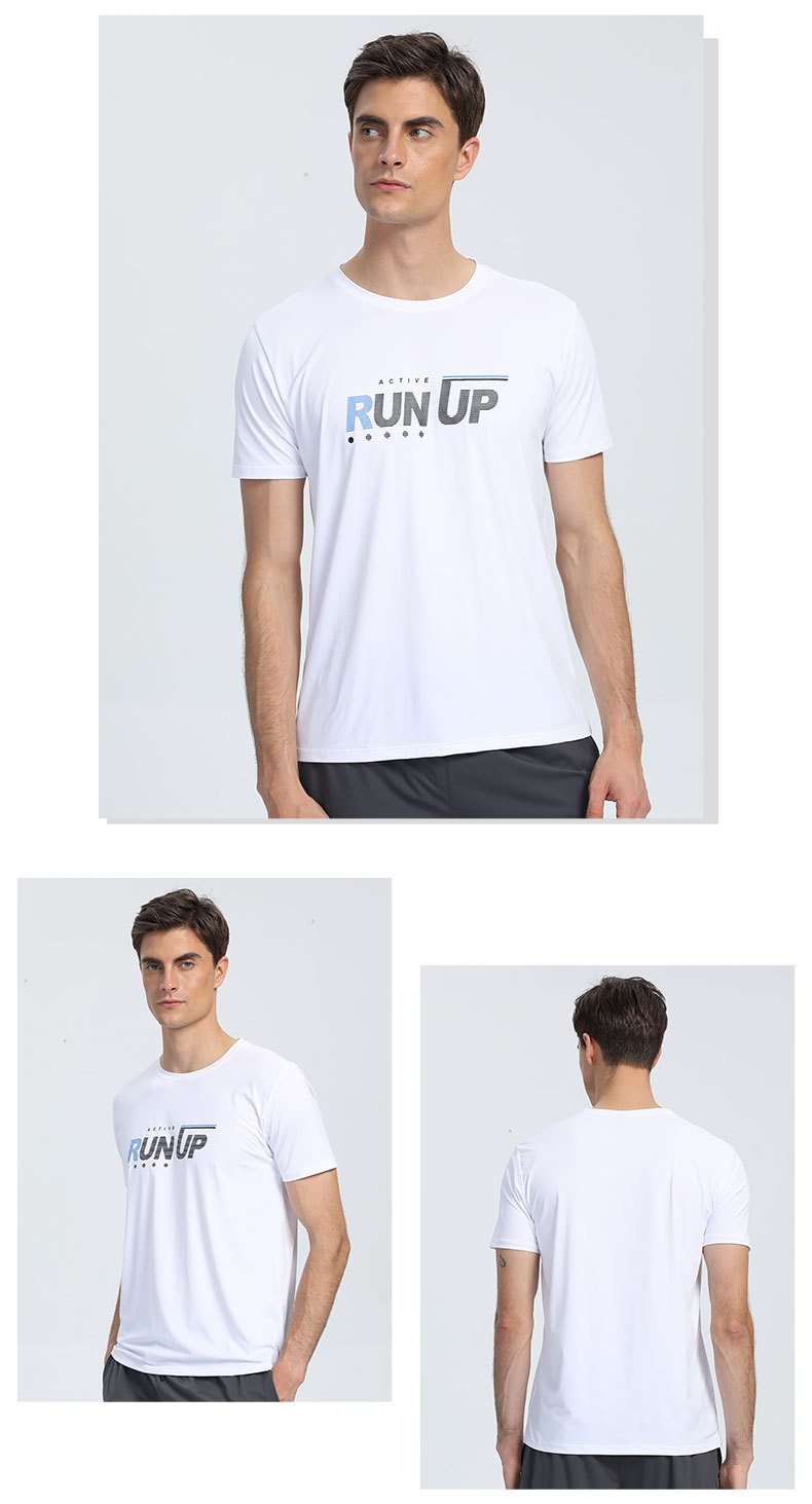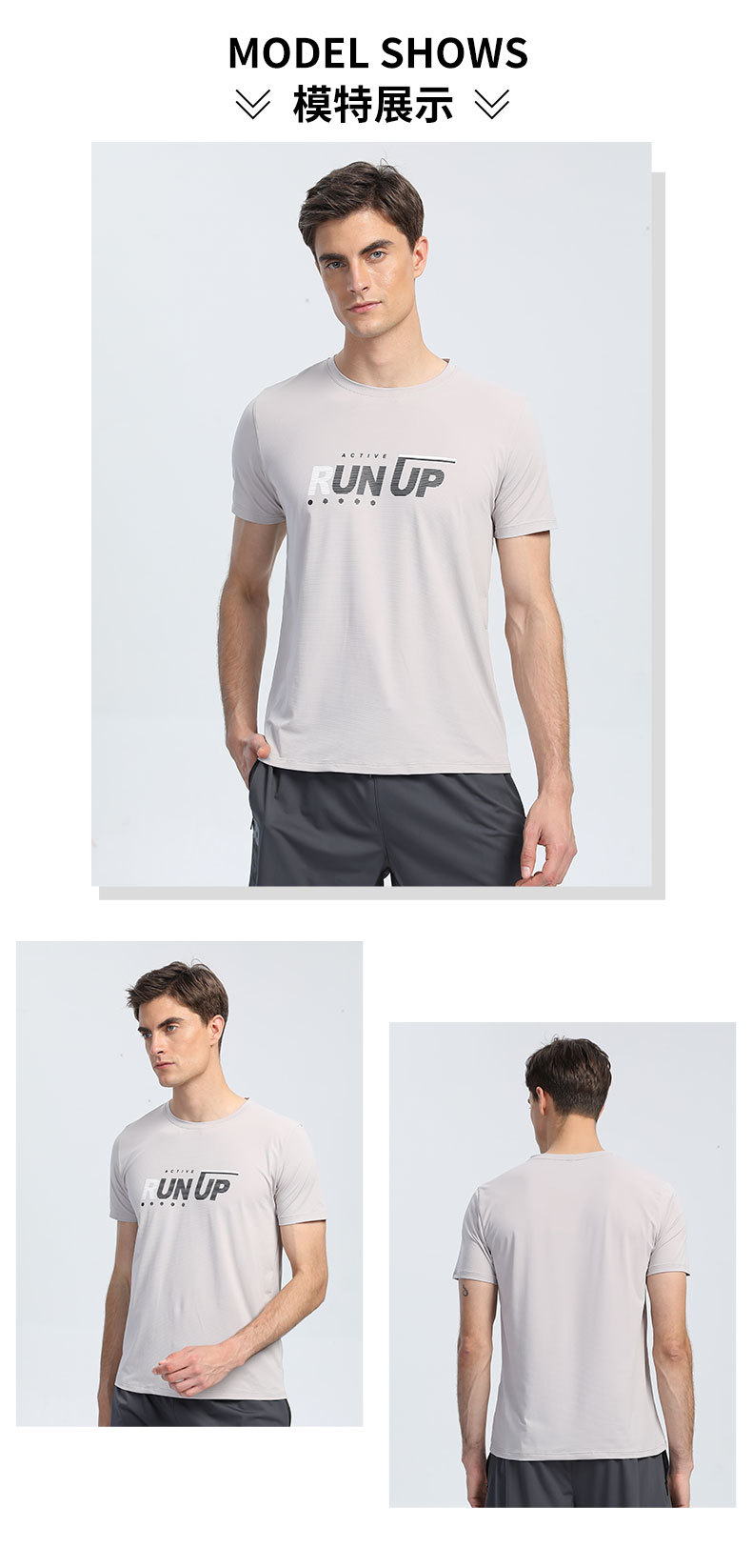 Moda casual impreso de manga corta Camiseta de los hombres de verano Delgado cuello redondo estiramiento ropa de secado rápido correr ropa de entrenamiento deportes top