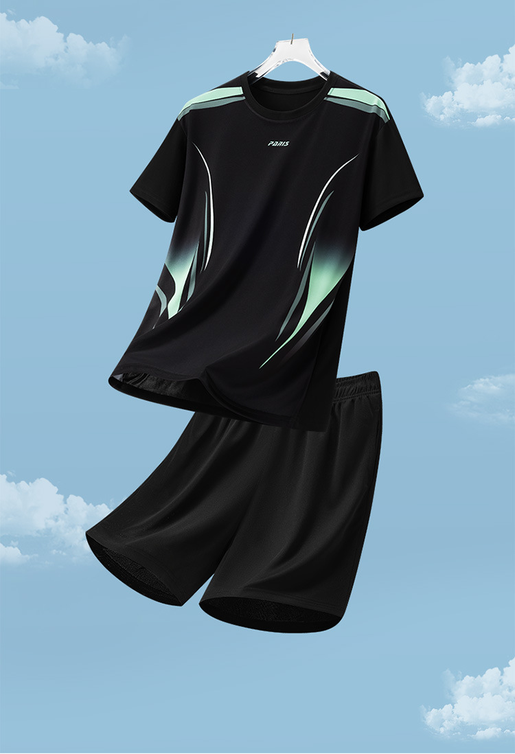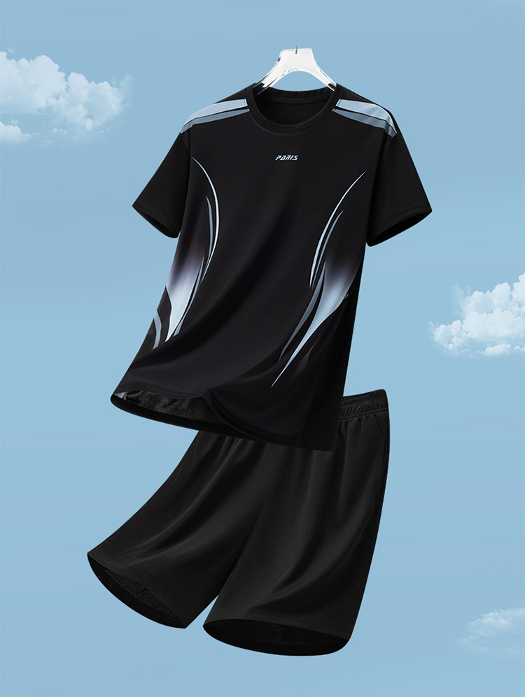 Traje deportivo para hombres, verano, traje casual para hombres, degradado impreso, suelto, de dos piezas, transpirable, de secado rápido, camiseta, pantalones cortos, hombres