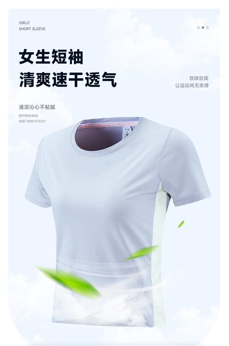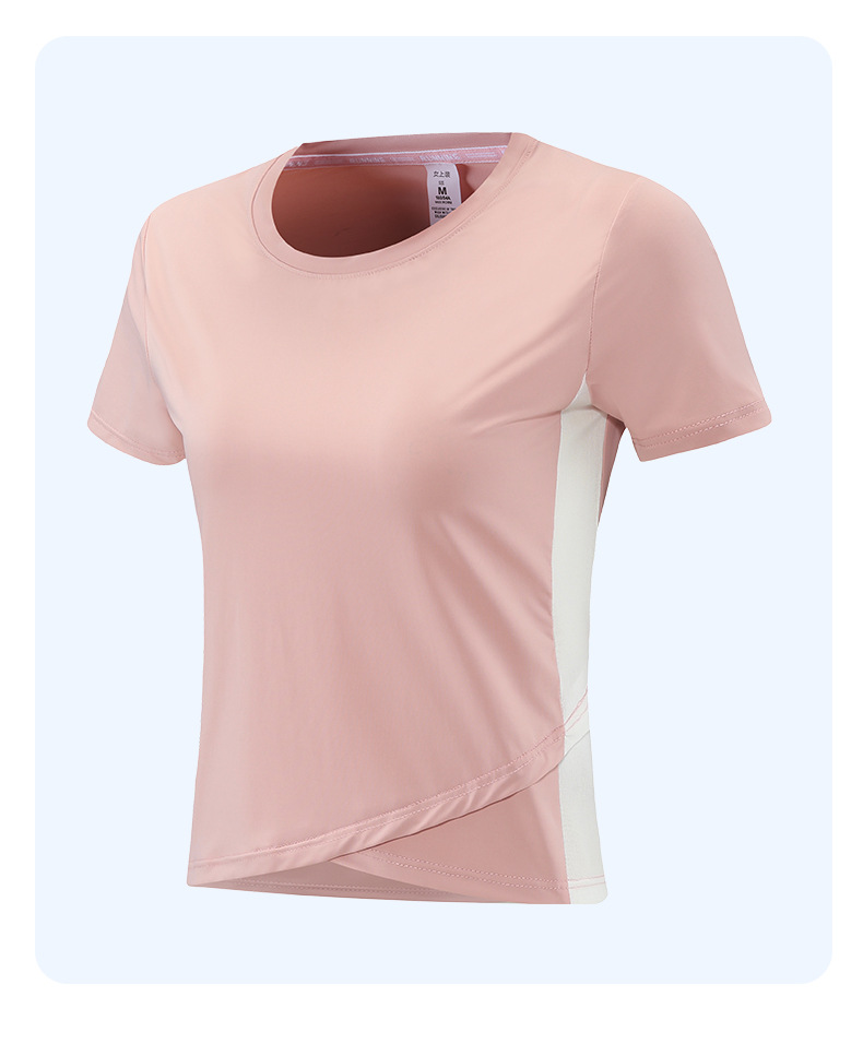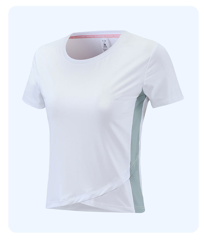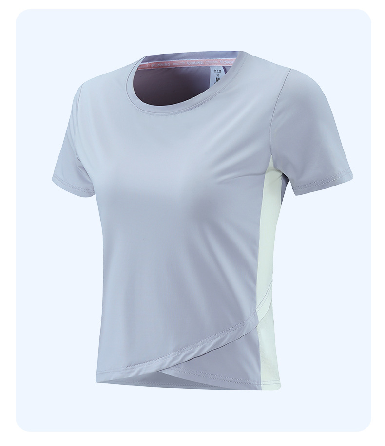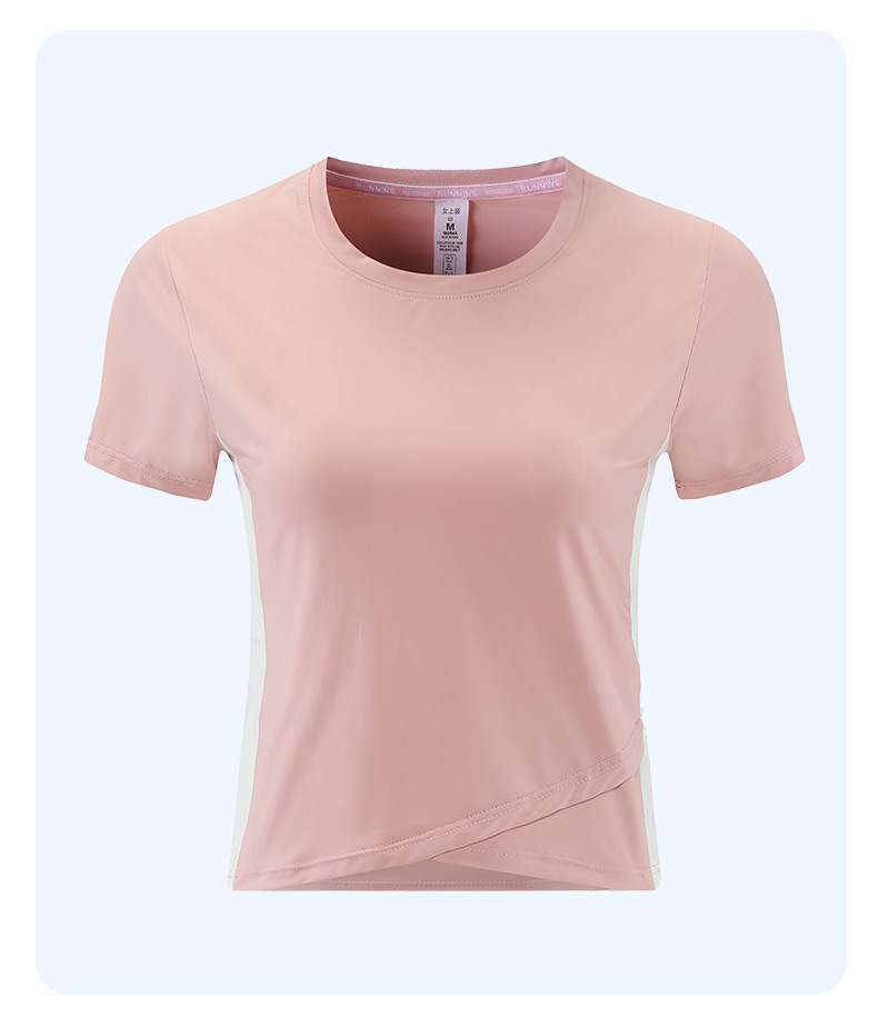 Wicking de humedad Deportes de manga corta casual para mujer camiseta de manga corta para mujer color sólido que adelgaza deportes elásticos mujeres de manga corta