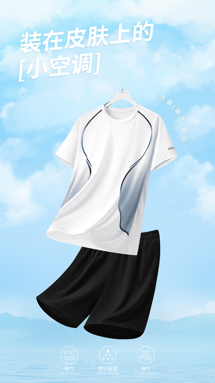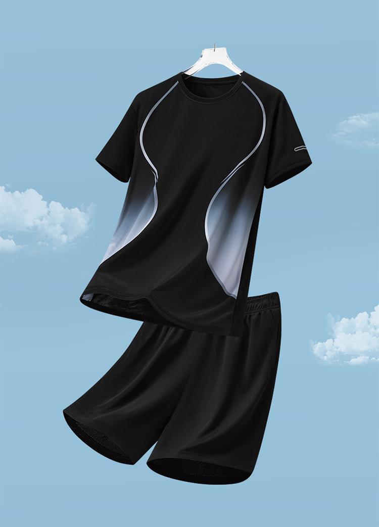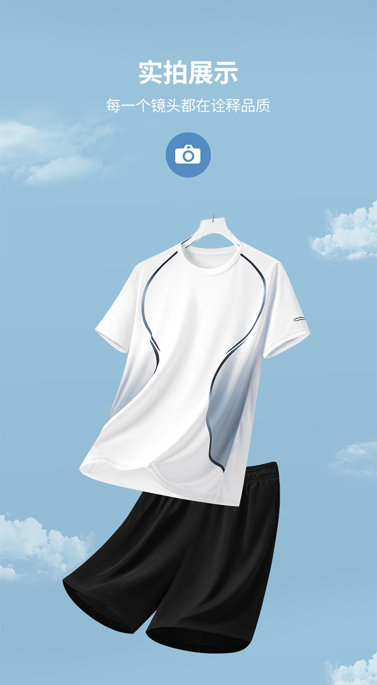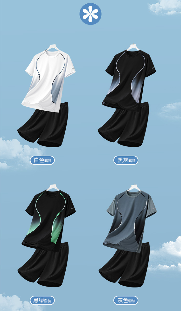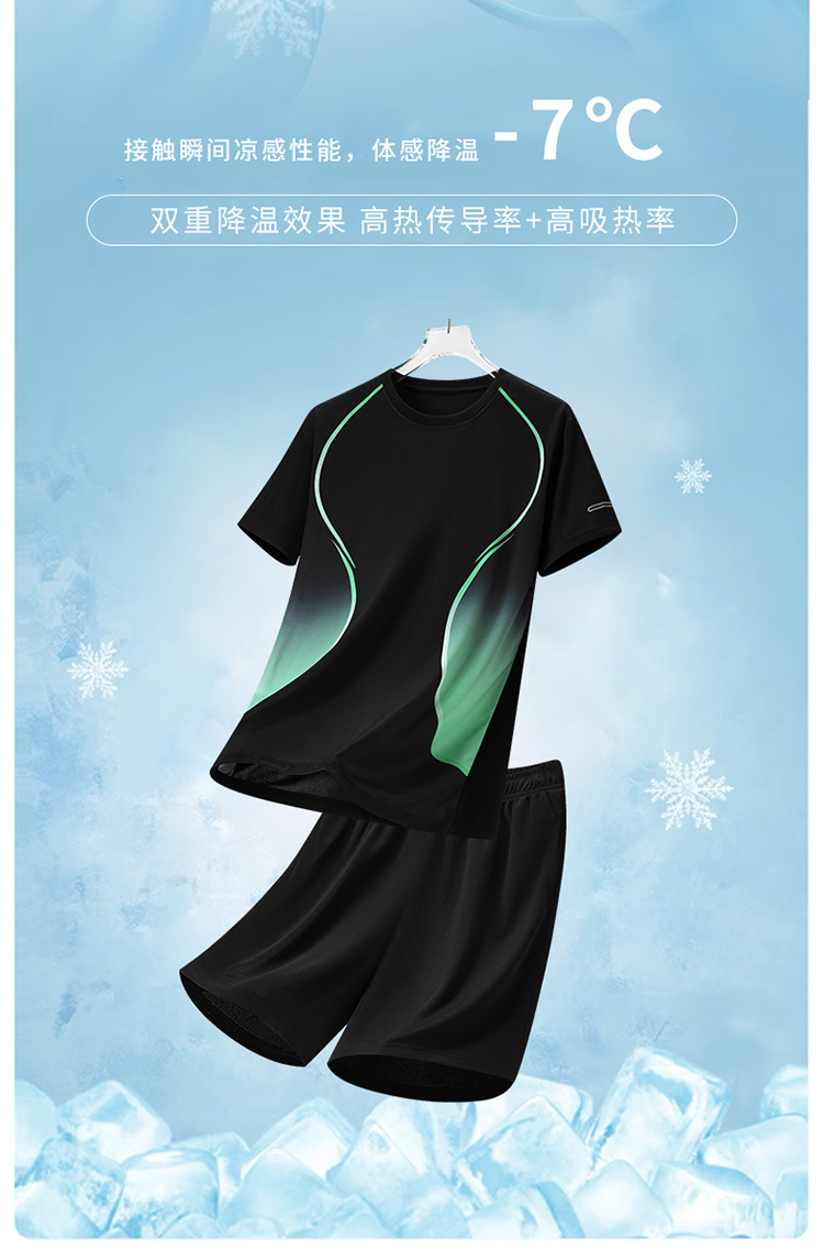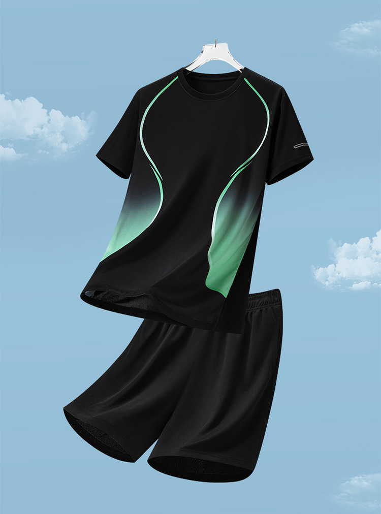 Traje deportivo de ocio para hombre de verano, pantalones cortos de camiseta de secado rápido transpirable de dos piezas sueltos de impresión para hombre