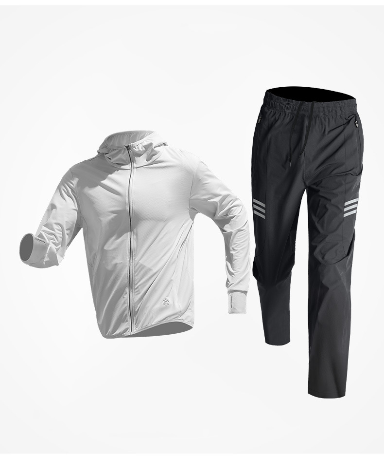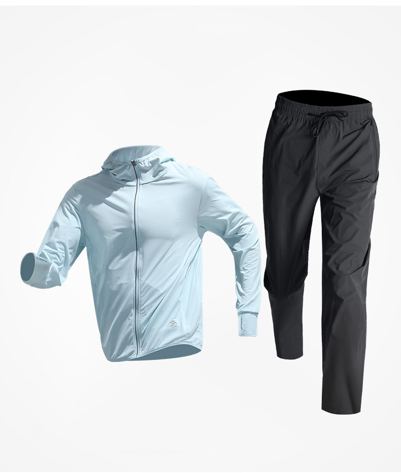 Trajes de protección solar para hombres, hielo de verano delgado rápido secado acondicionamiento físico suelto, ropa de entrenamiento al aire libre transpirable