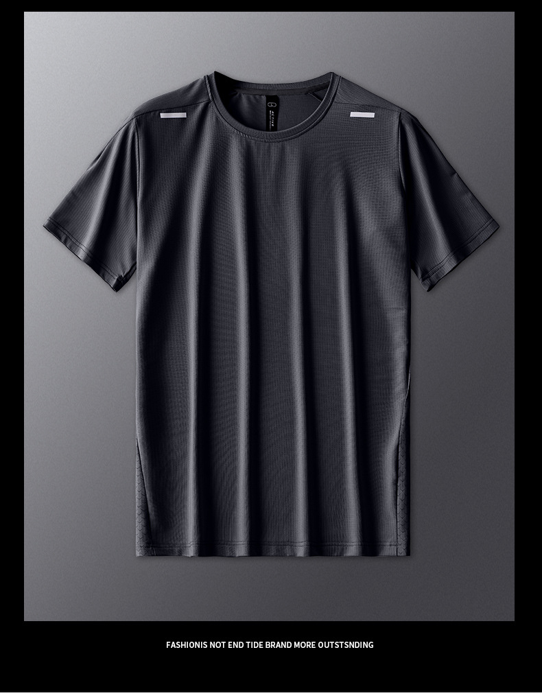 Camiseta deportiva para hombres de manga corta ropa seca rápida de verano delgada transpirable sudor hielo hielo sensación de baloncesto suelta chaqueta de carrera