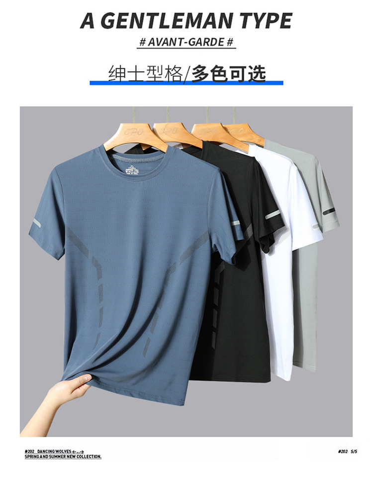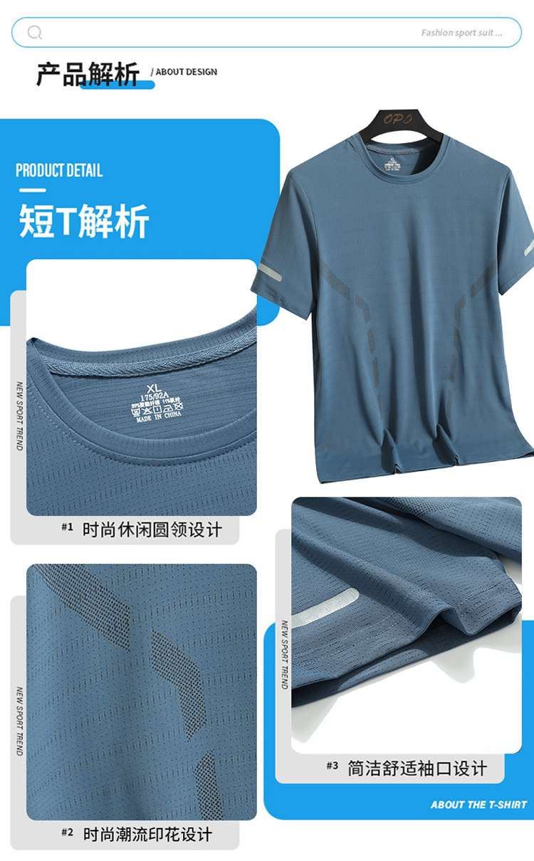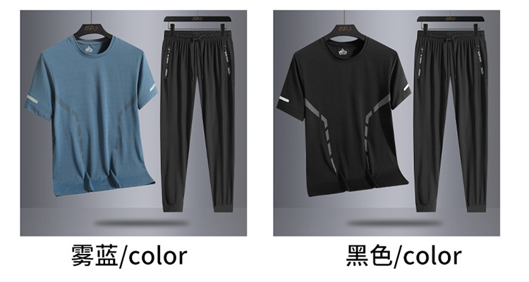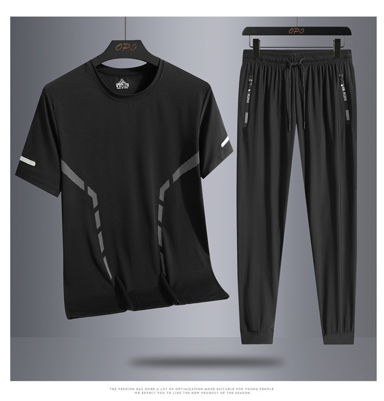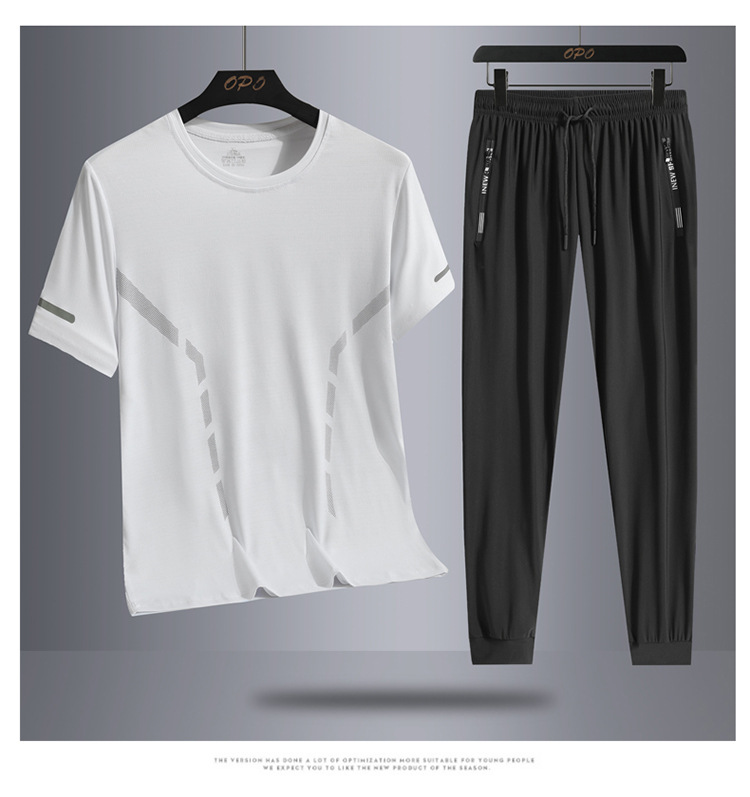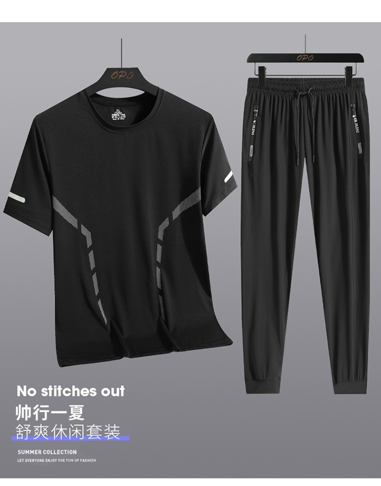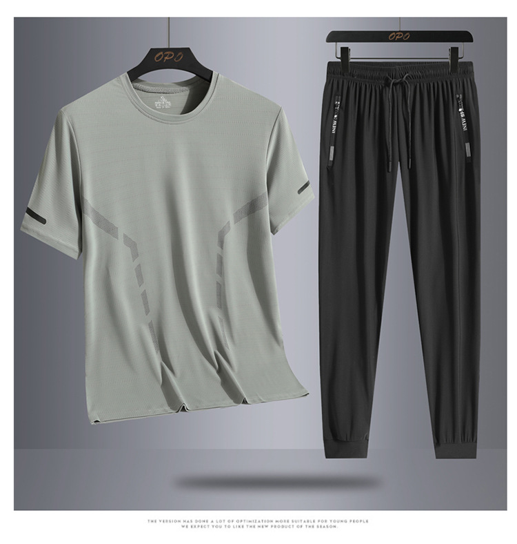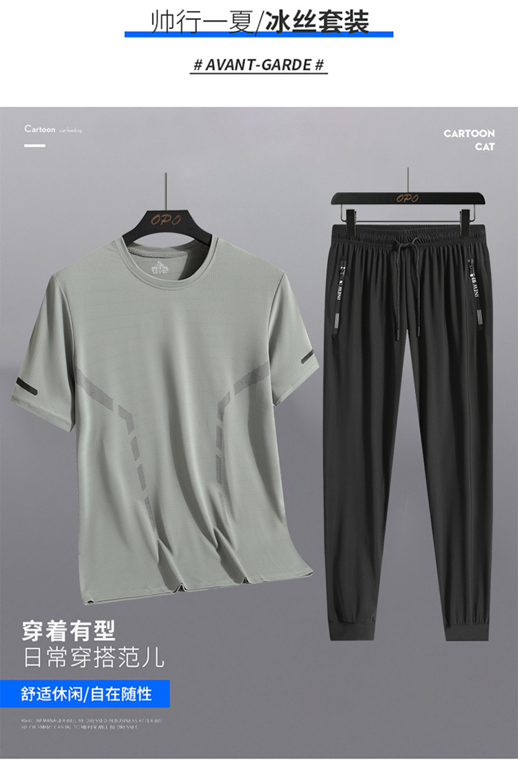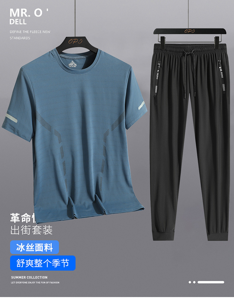 Set hombre de verano hombre hielo deportivo casual al aire libre suelto dos piezas set transpirable secado rápido cuello redondo camiseta pantalón largo