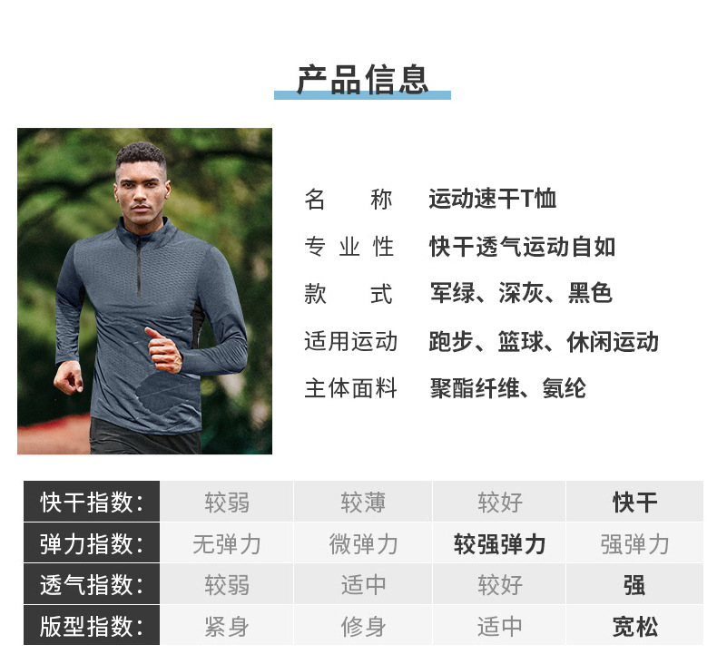 Camiseta de secado rápido para hombres, ropa de entrenamiento deportivo, ropa de atletismo, ropa de acondicionamiento físico, camisa de primavera de manga larga y media cremallera