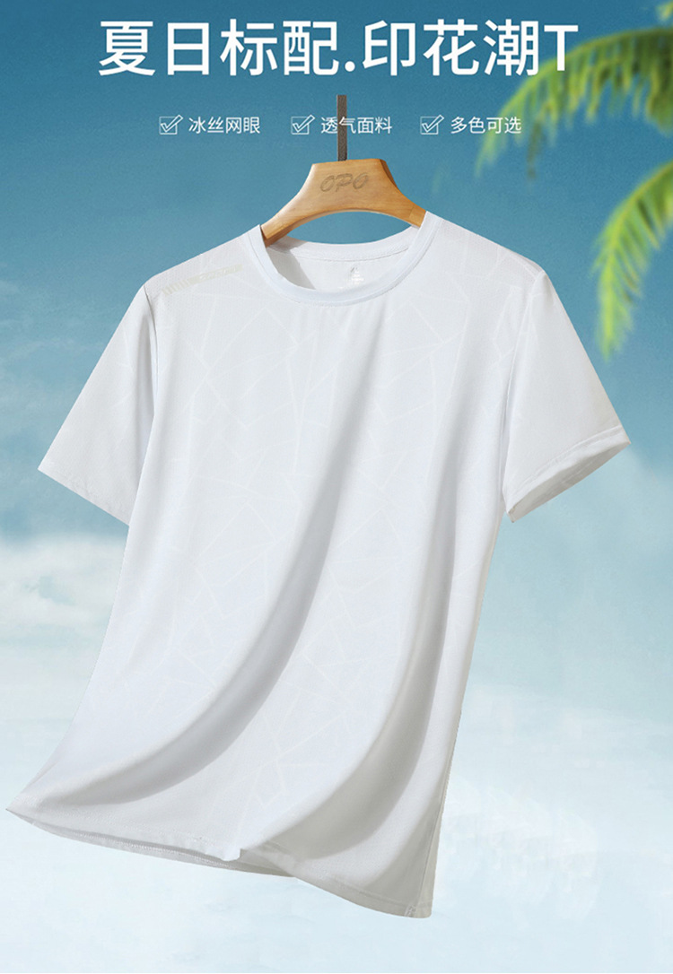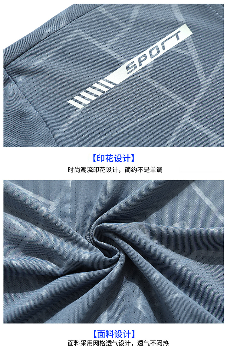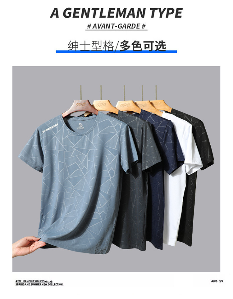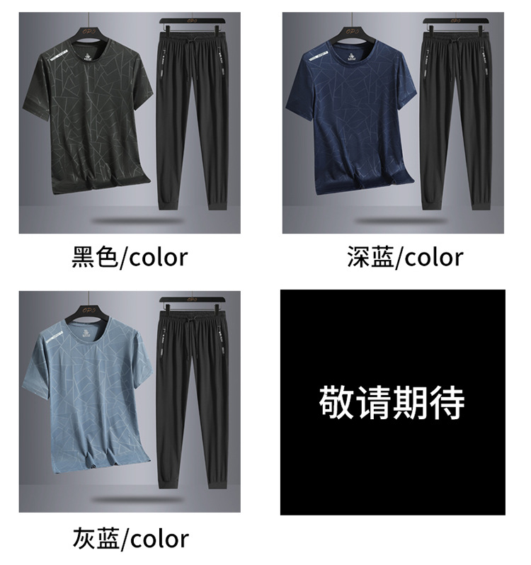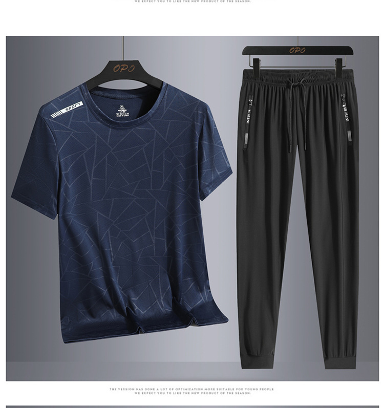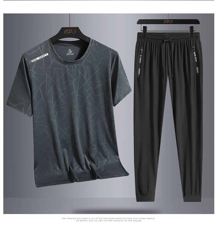 Traje de ocio de seda de hielo de verano para hombres, deportes al aire libre, hombres sueltos, pantalones de camiseta de cuello redondo de secado rápido transpirable de dos piezas