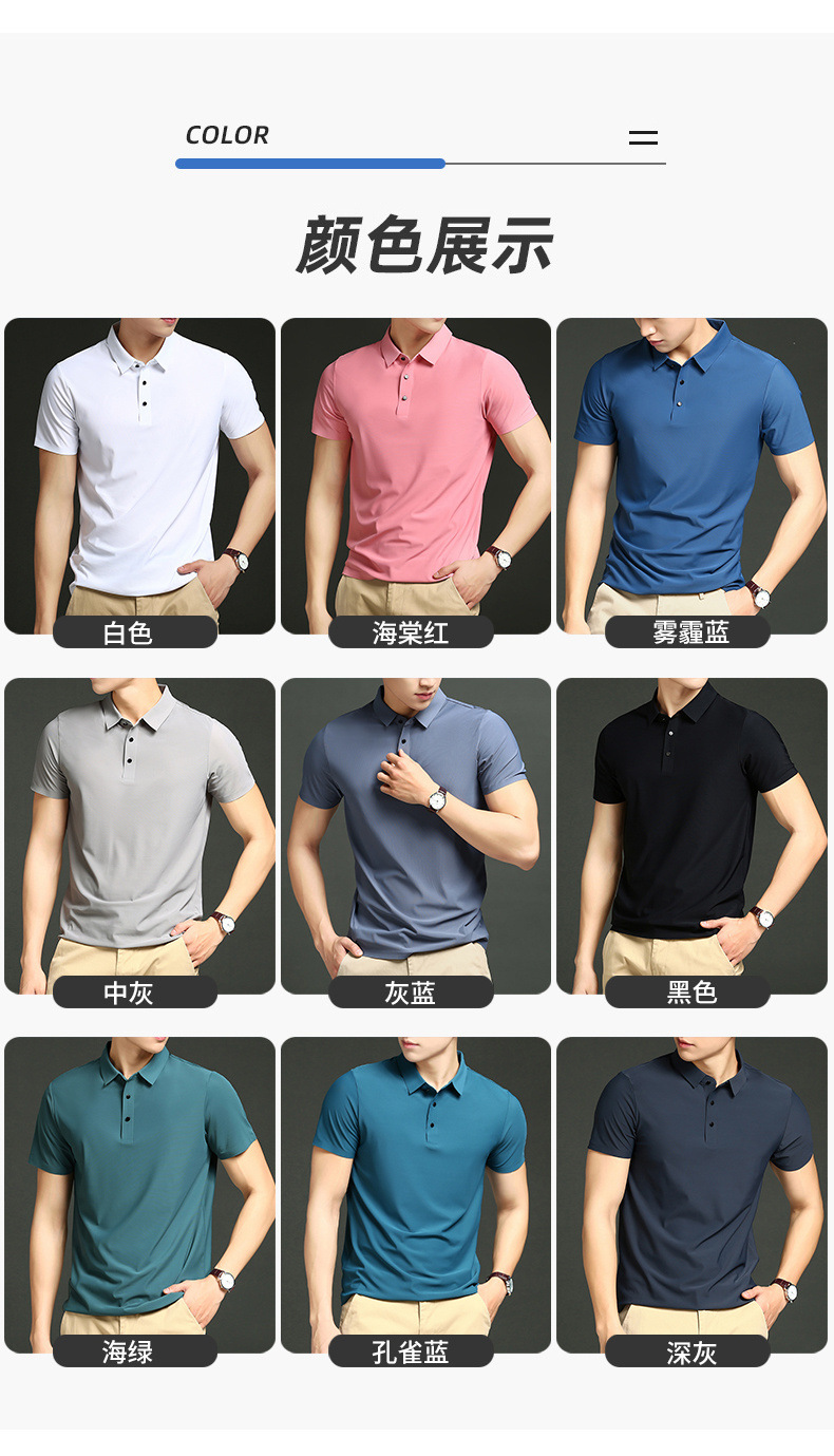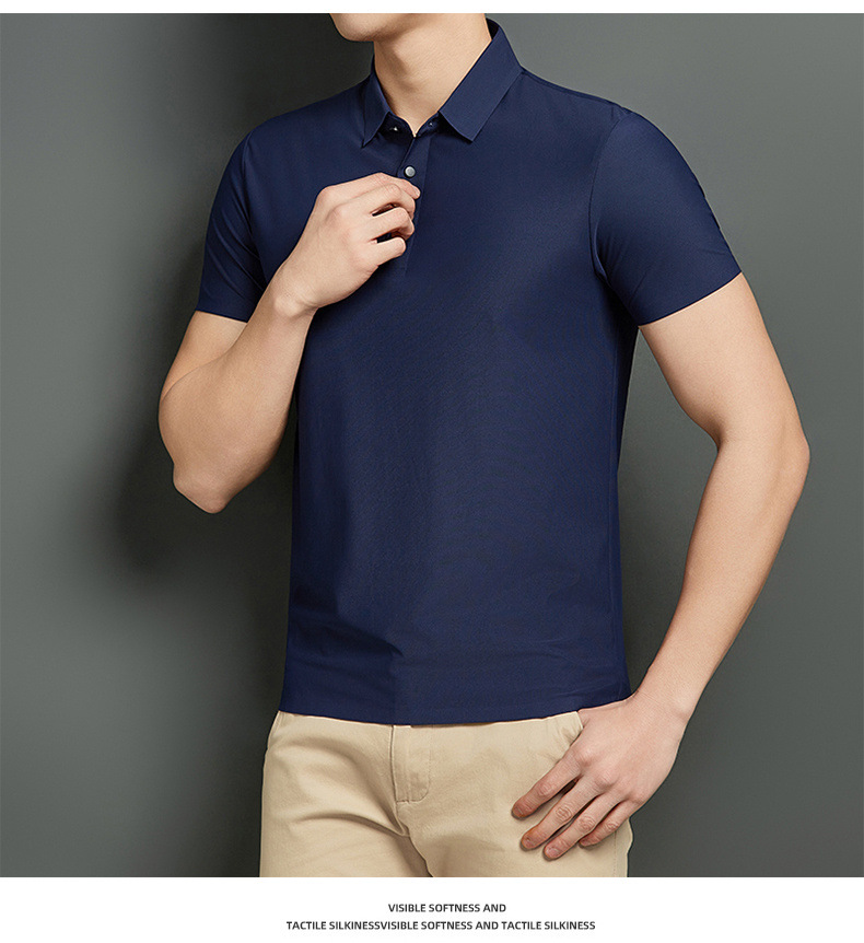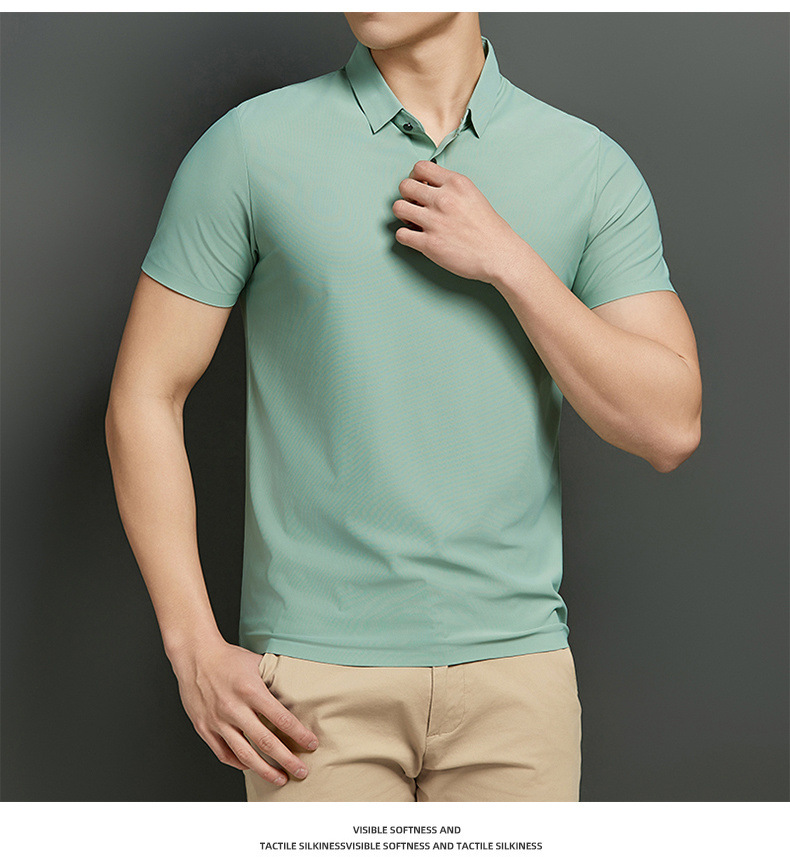 Polo de verano para hombres, nailon de seda de hielo, hombres y mujeres sin costuras, camiseta de manga corta casual de negocios, grupo de camisetas de hombres de alta elasticidad
