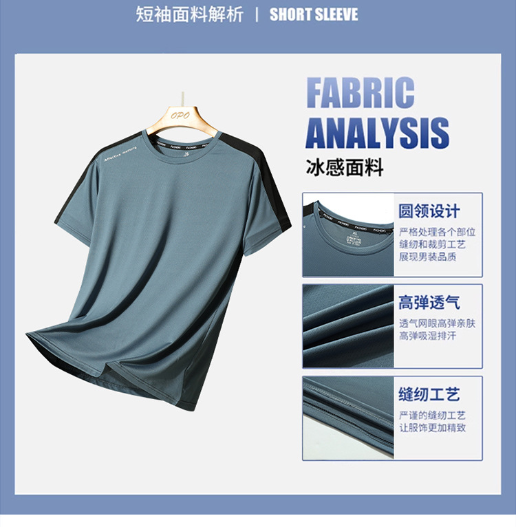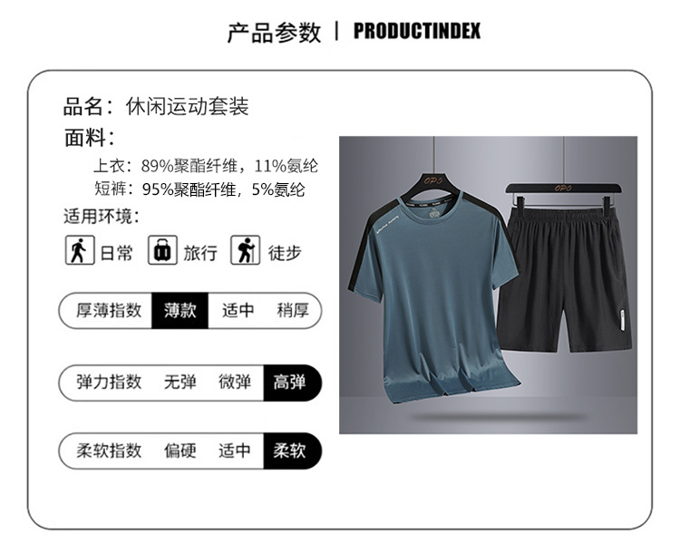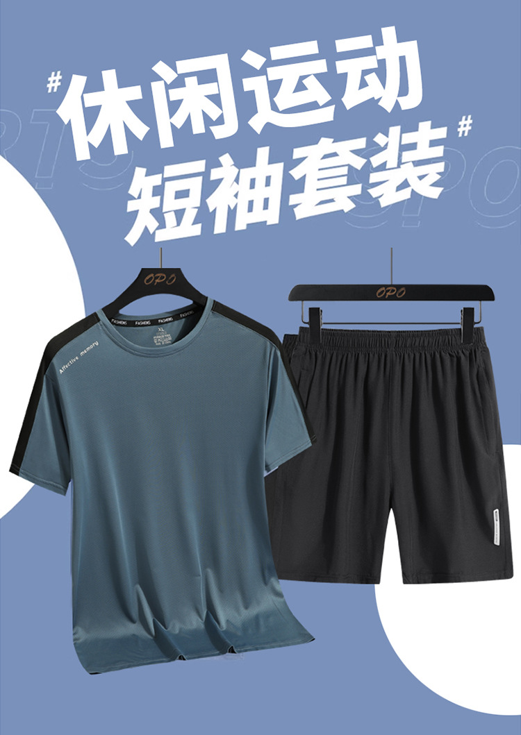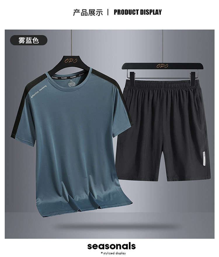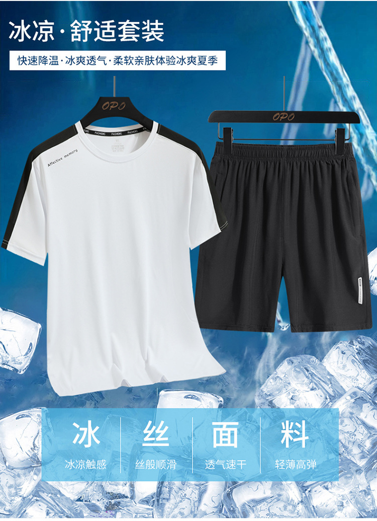 Traje deportivo de verano para hombre de seda de hielo casual suelto de dos piezas nuevo transpirable de secado rápido al aire libre cuello redondo Camiseta pantalones cortos