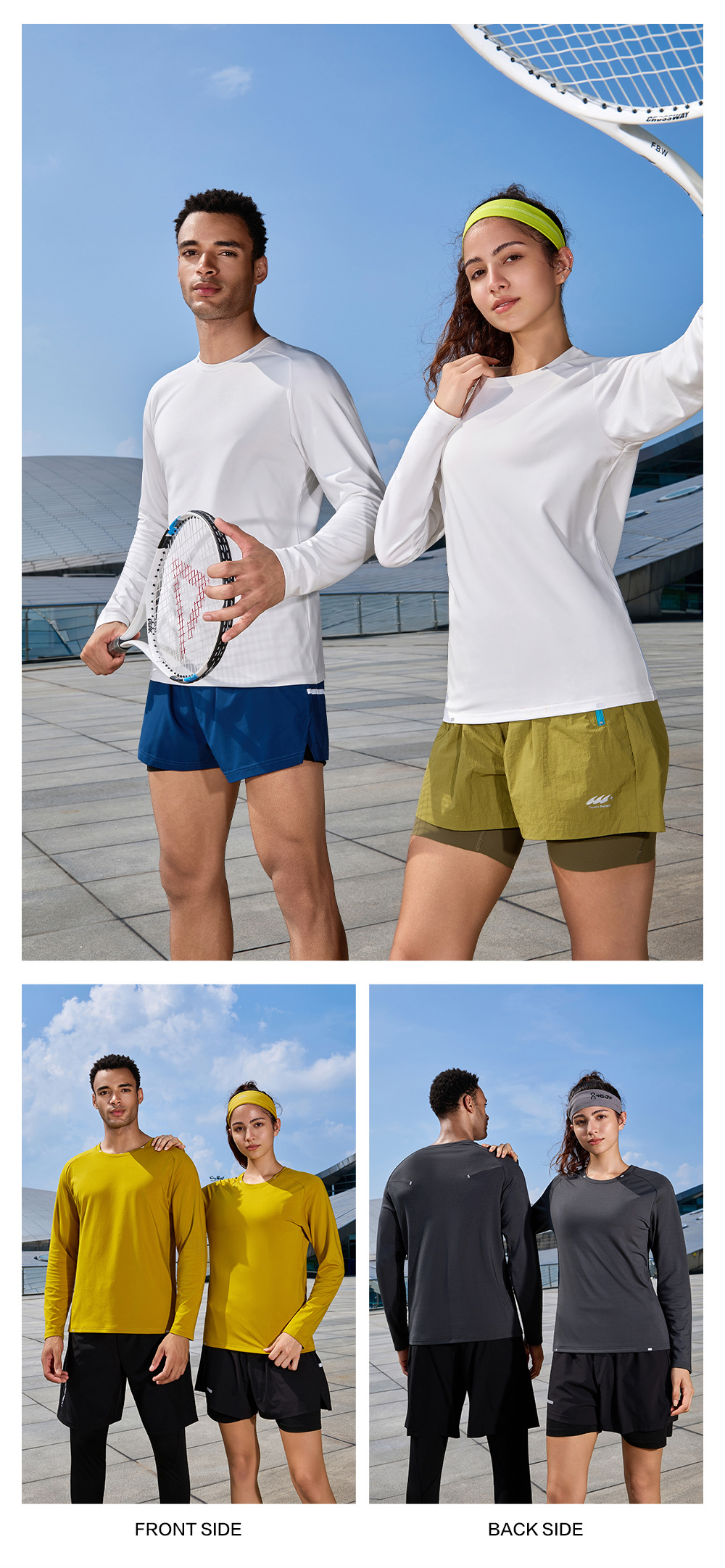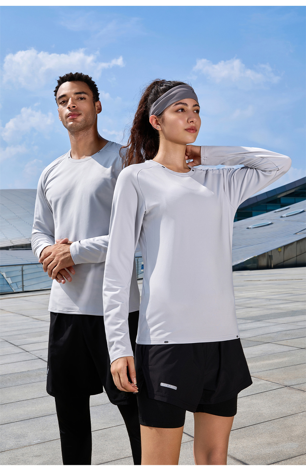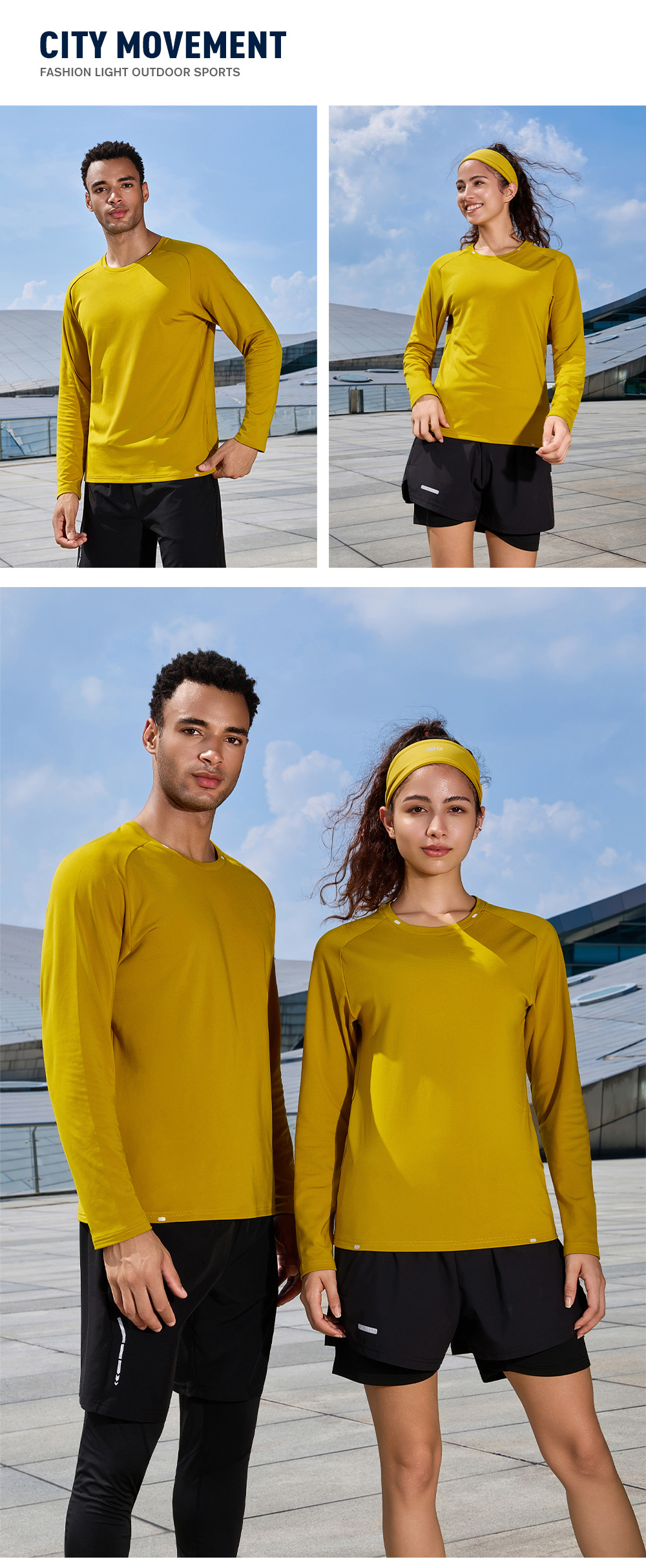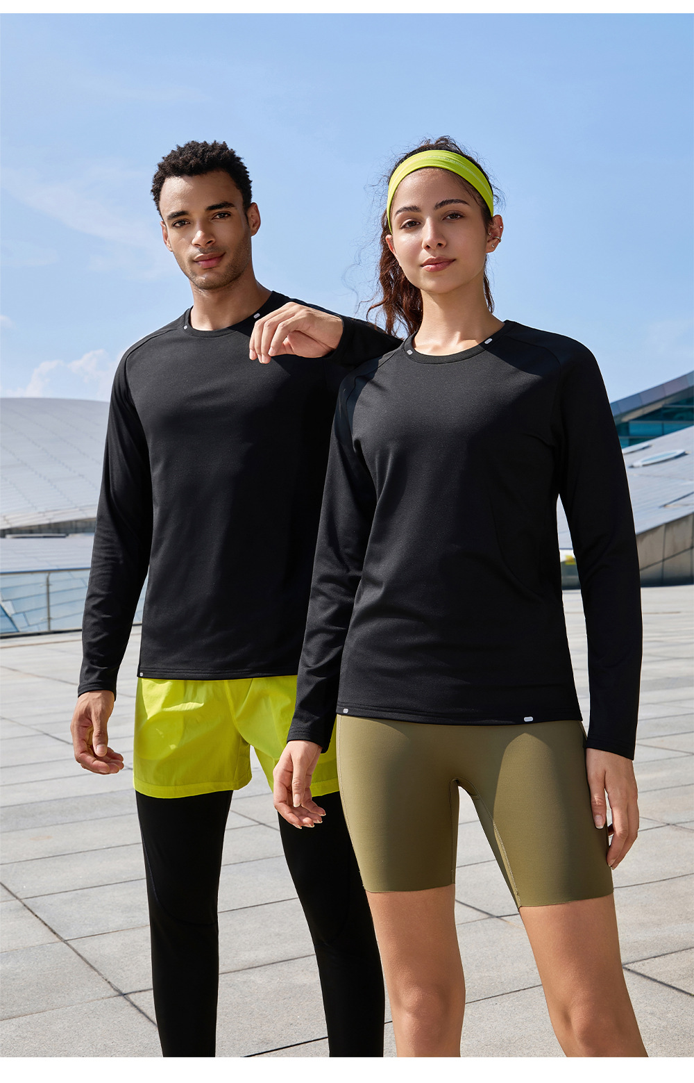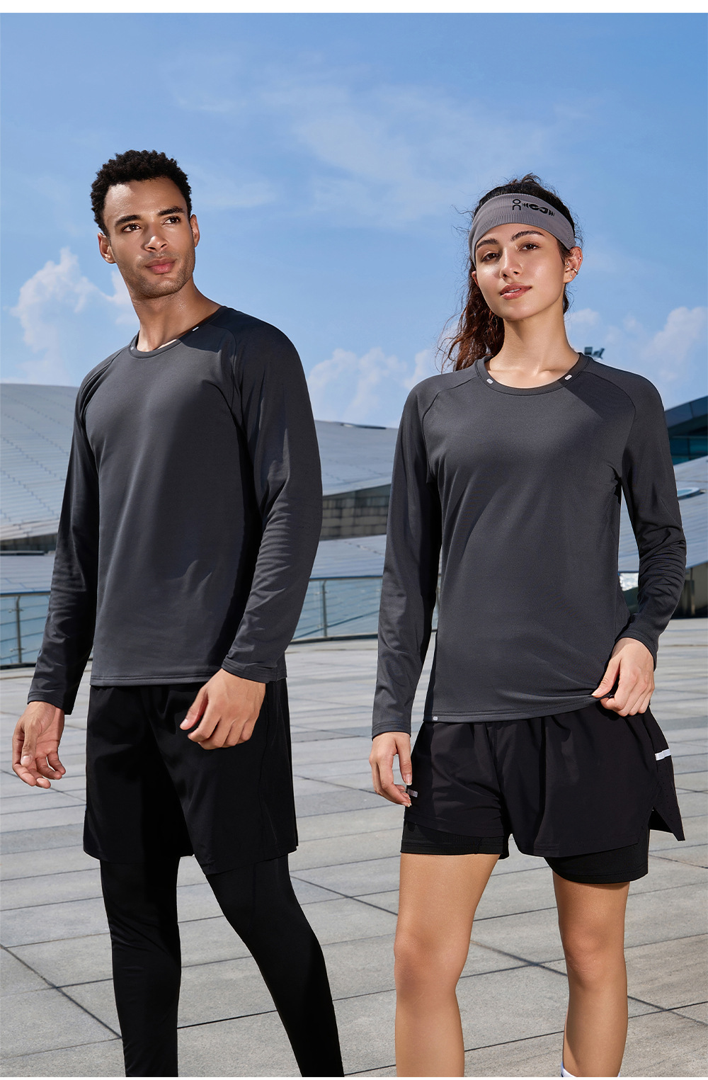 Otoño y invierno nueva chaqueta deportiva al aire libre con camiseta de cuello redondo de manga larga de vello, ropa de entrenamiento elástico de secado rápido para hombres