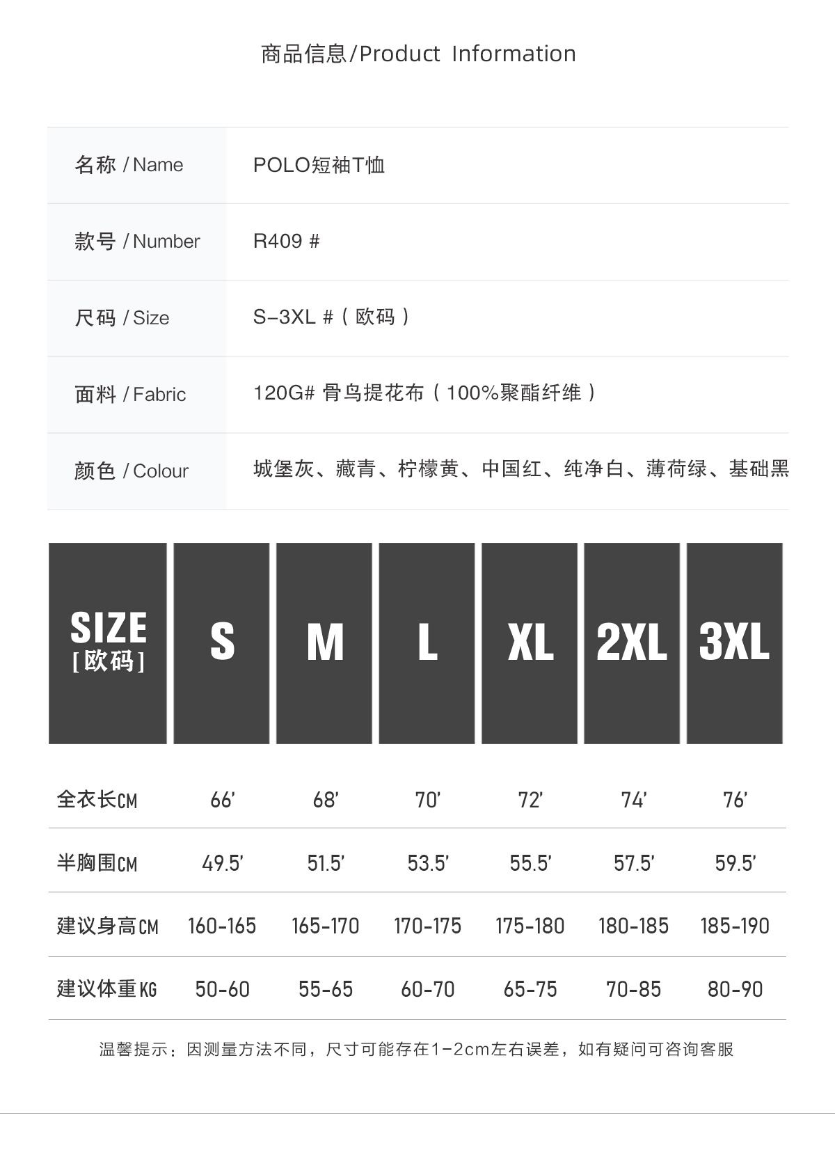 | Talla | S,M,L,XL,2XL,3XL |