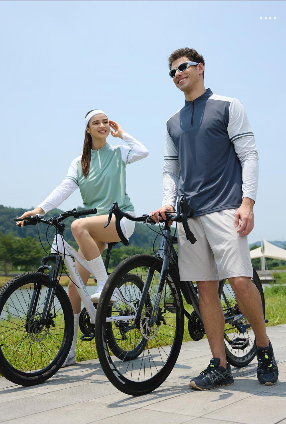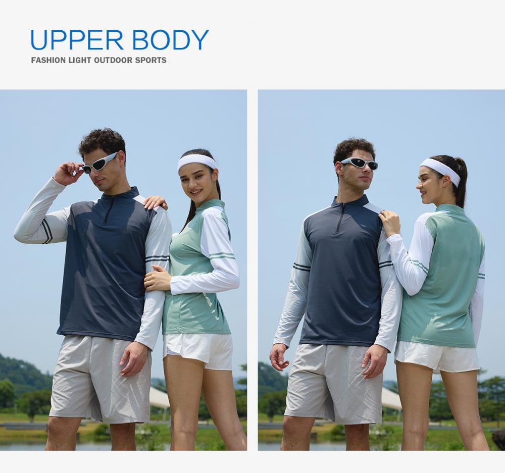 Primavera deportiva de secado de manga larga camiseta de entrenamiento de tenis de semi-cremallera ropa de ciclismo al aire libre para hombres y mujeres