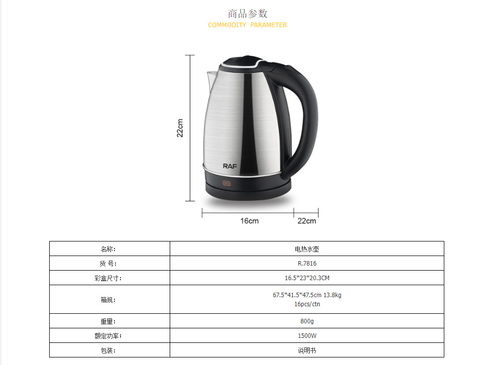 American 110V europeo 2.0L forro de acero inoxidable hervidor eléctrico olla rápida hervidor eléctrico regalo de compra grupal
