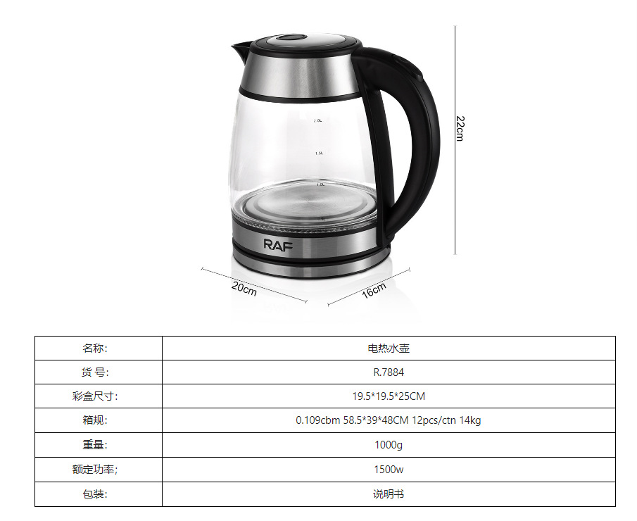 RAF estándar europeo británico estándar australiano hervidor eléctrico de vidrio hervidor eléctrico doméstico auto apagado hervidor de salud hervidor al por mayor